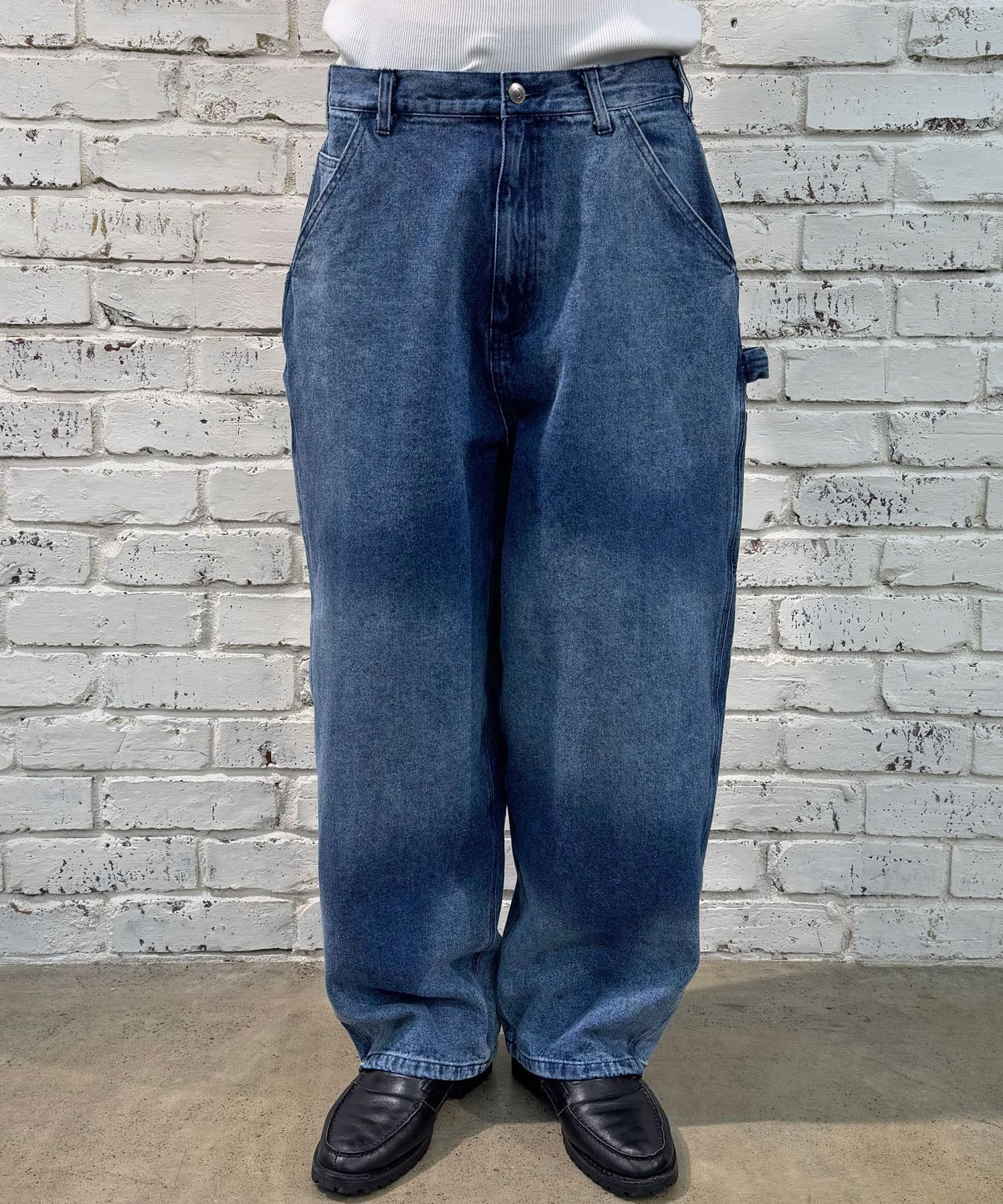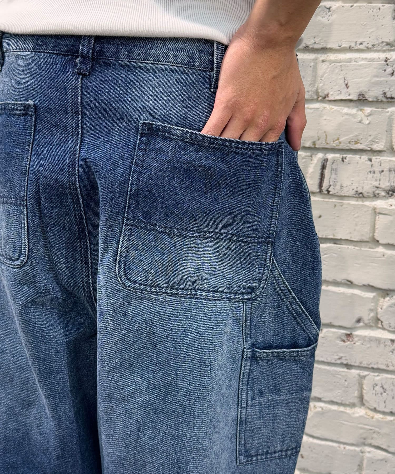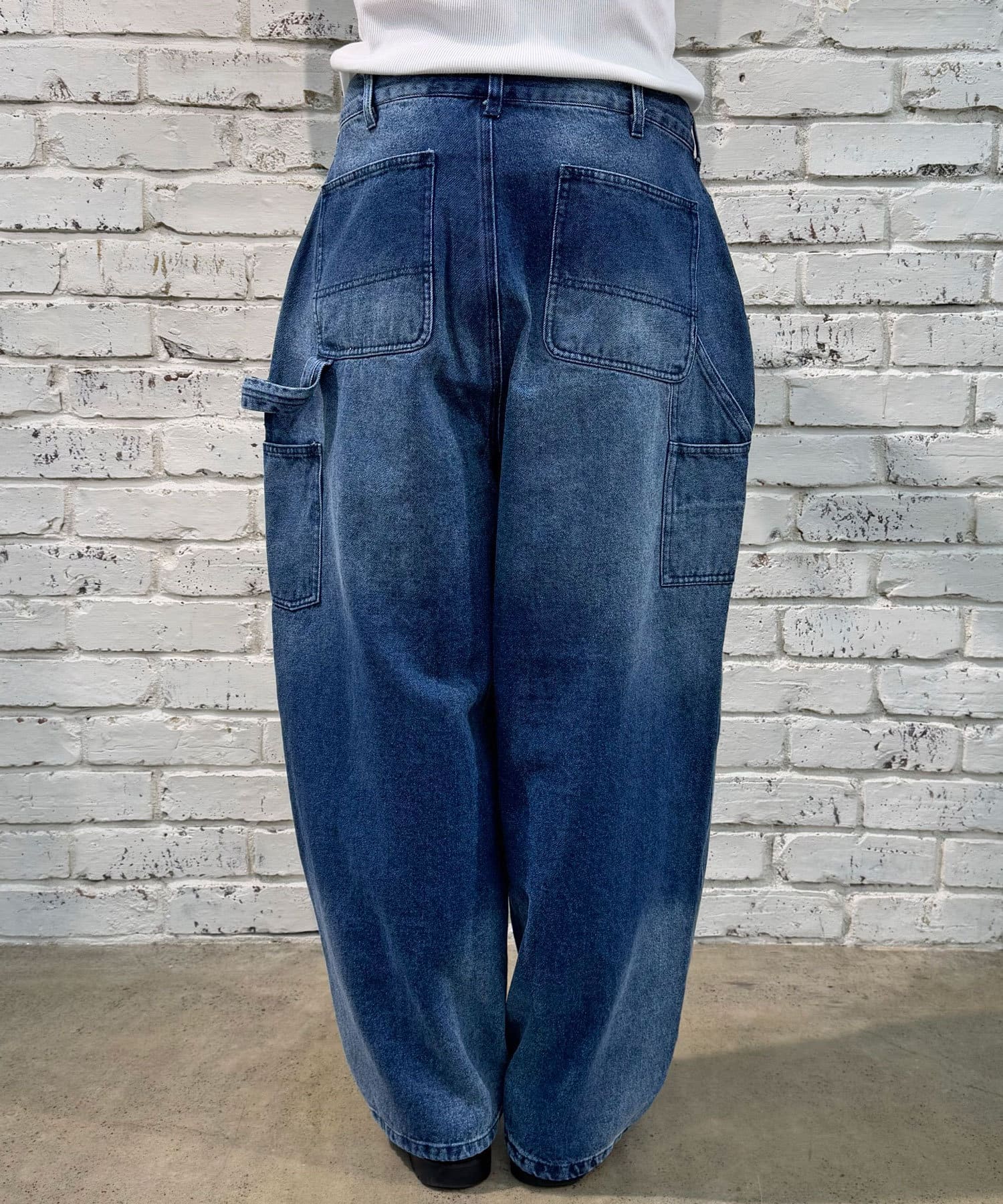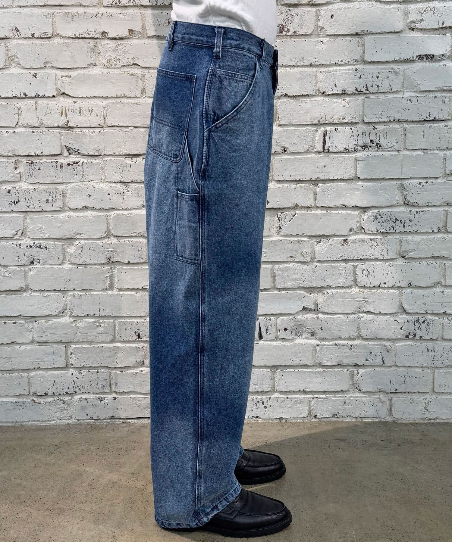 色落ち加工でヴィンテージライクな風合いを実現したペインターデニムパンツ