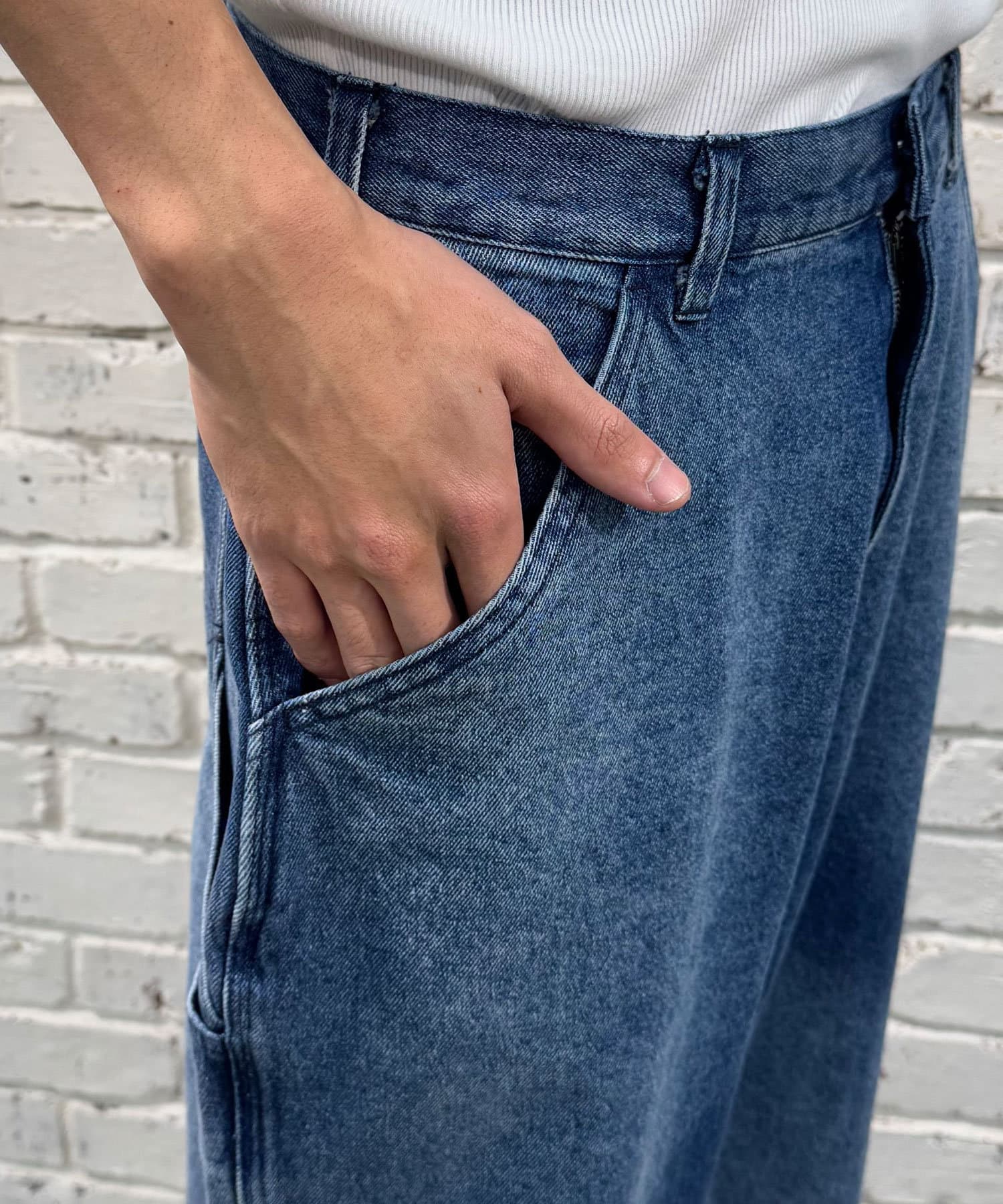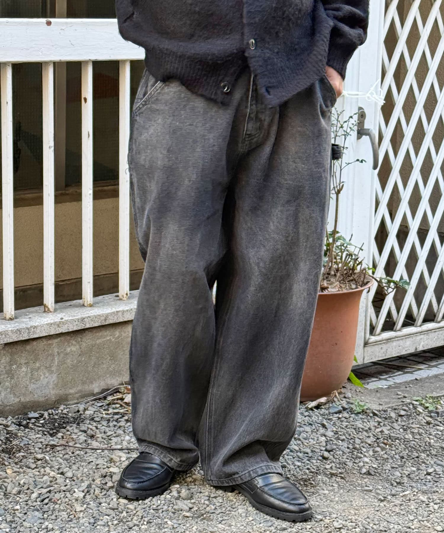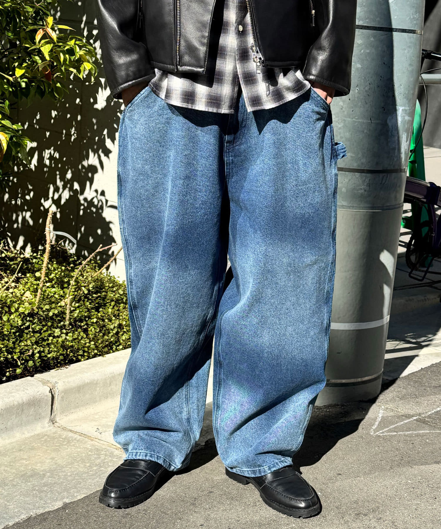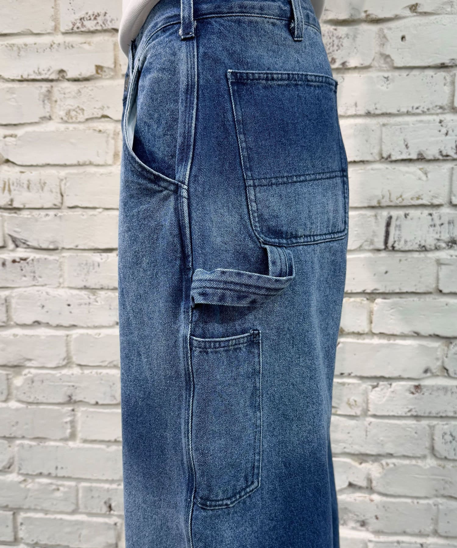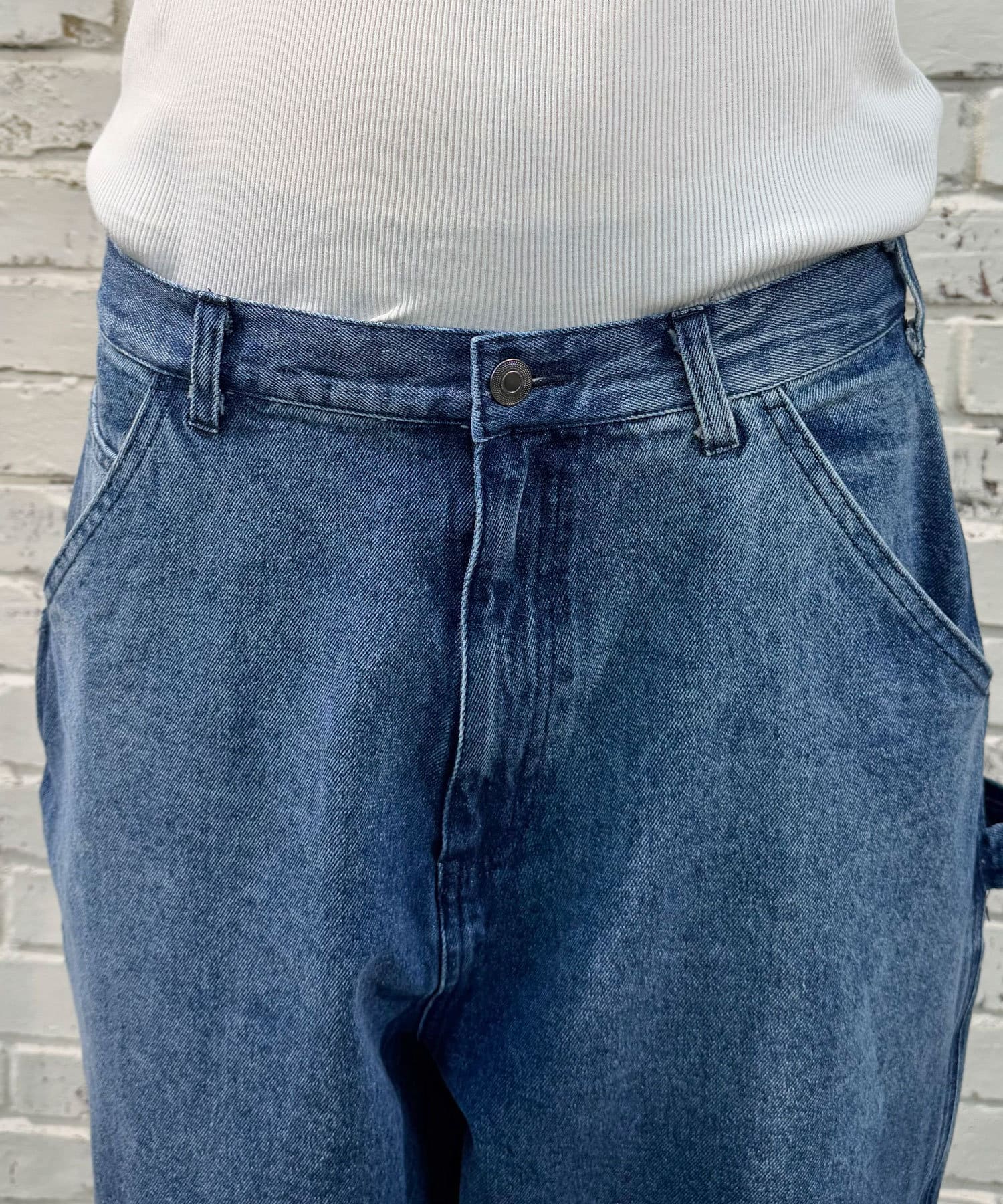 色落ち加工でヴィンテージライクな風合いを実現したペインターデニムパンツ