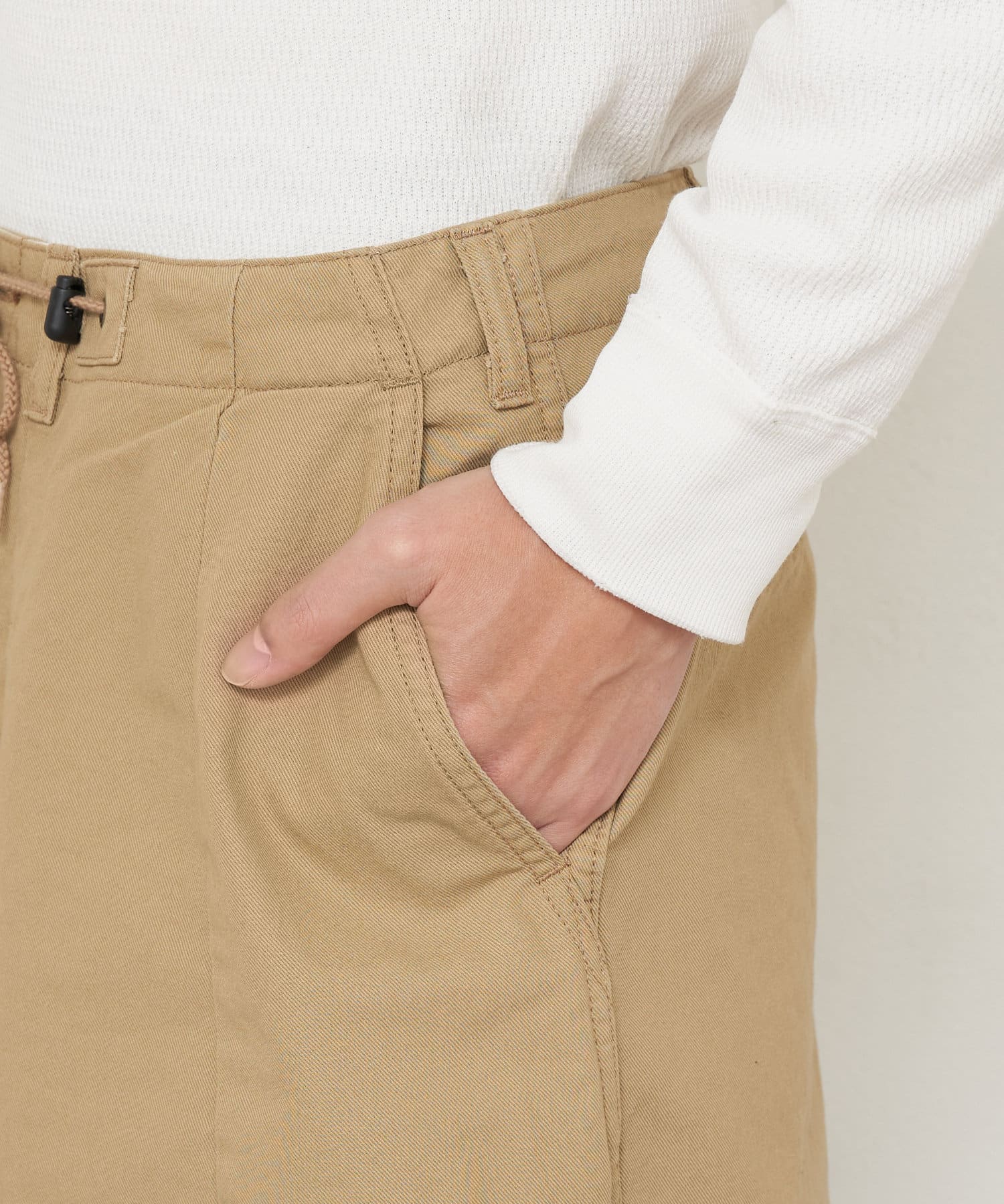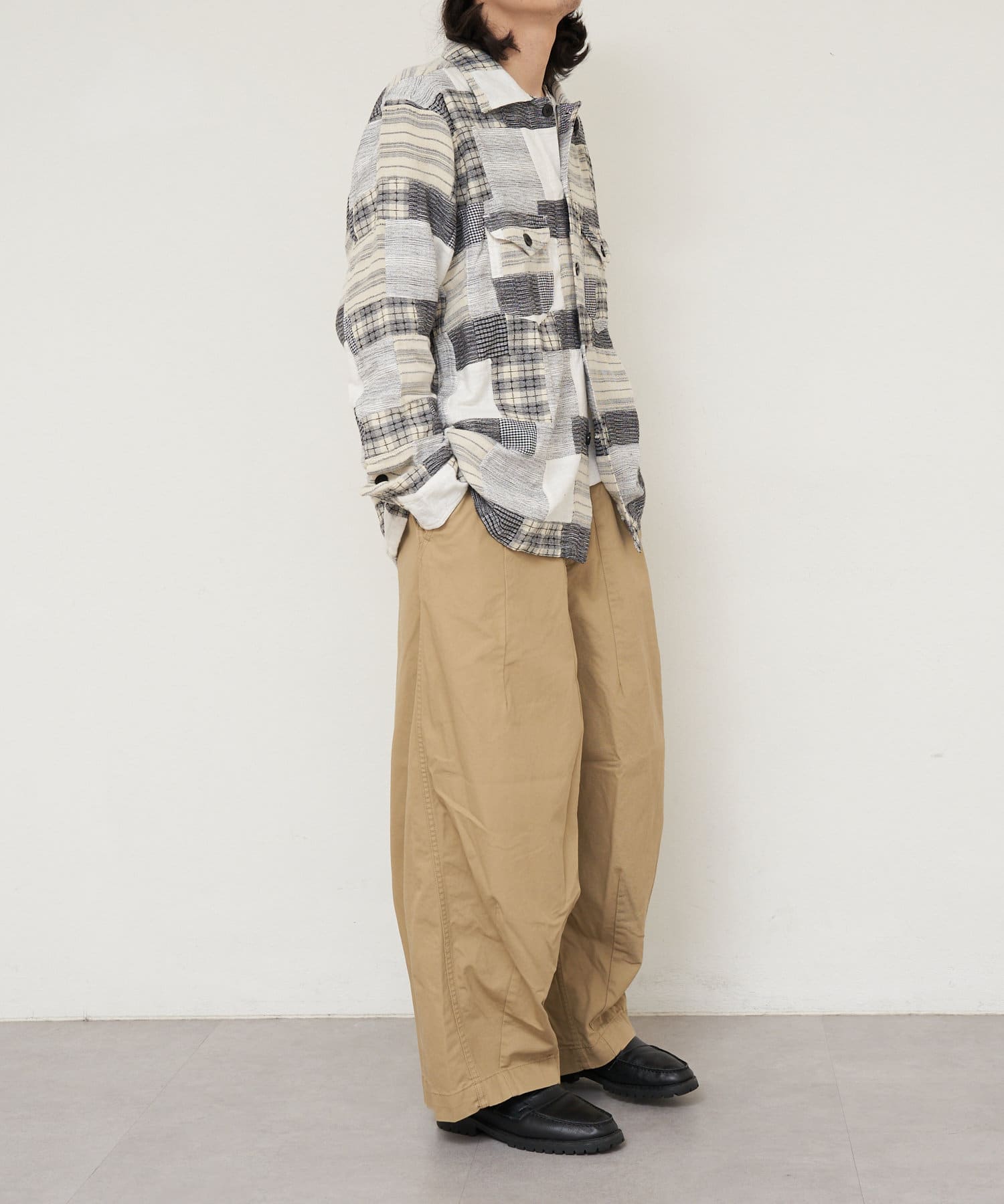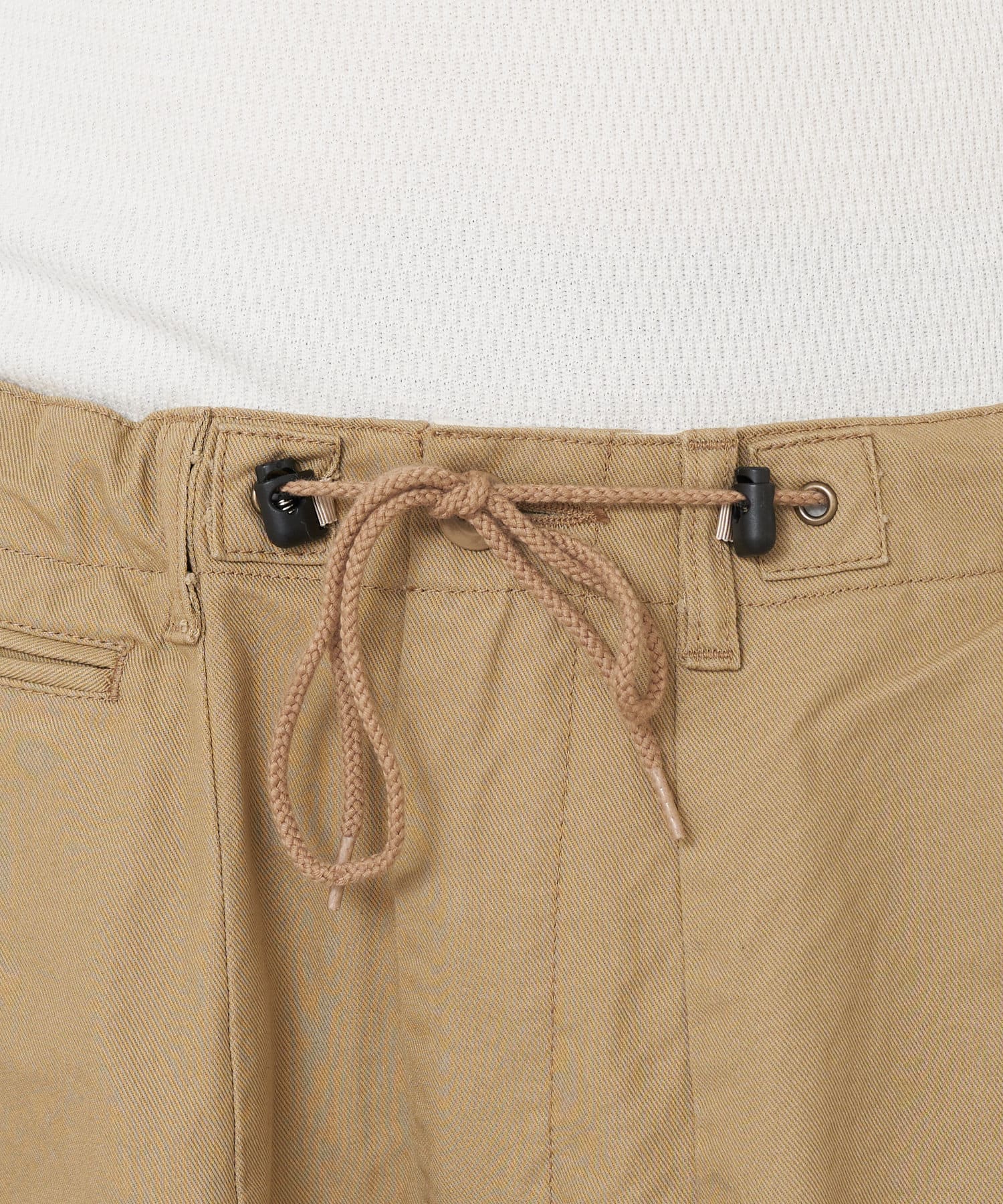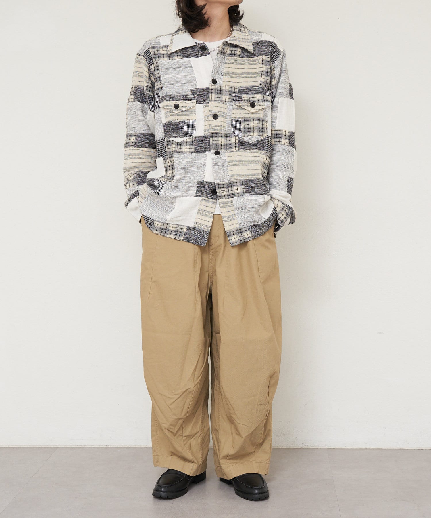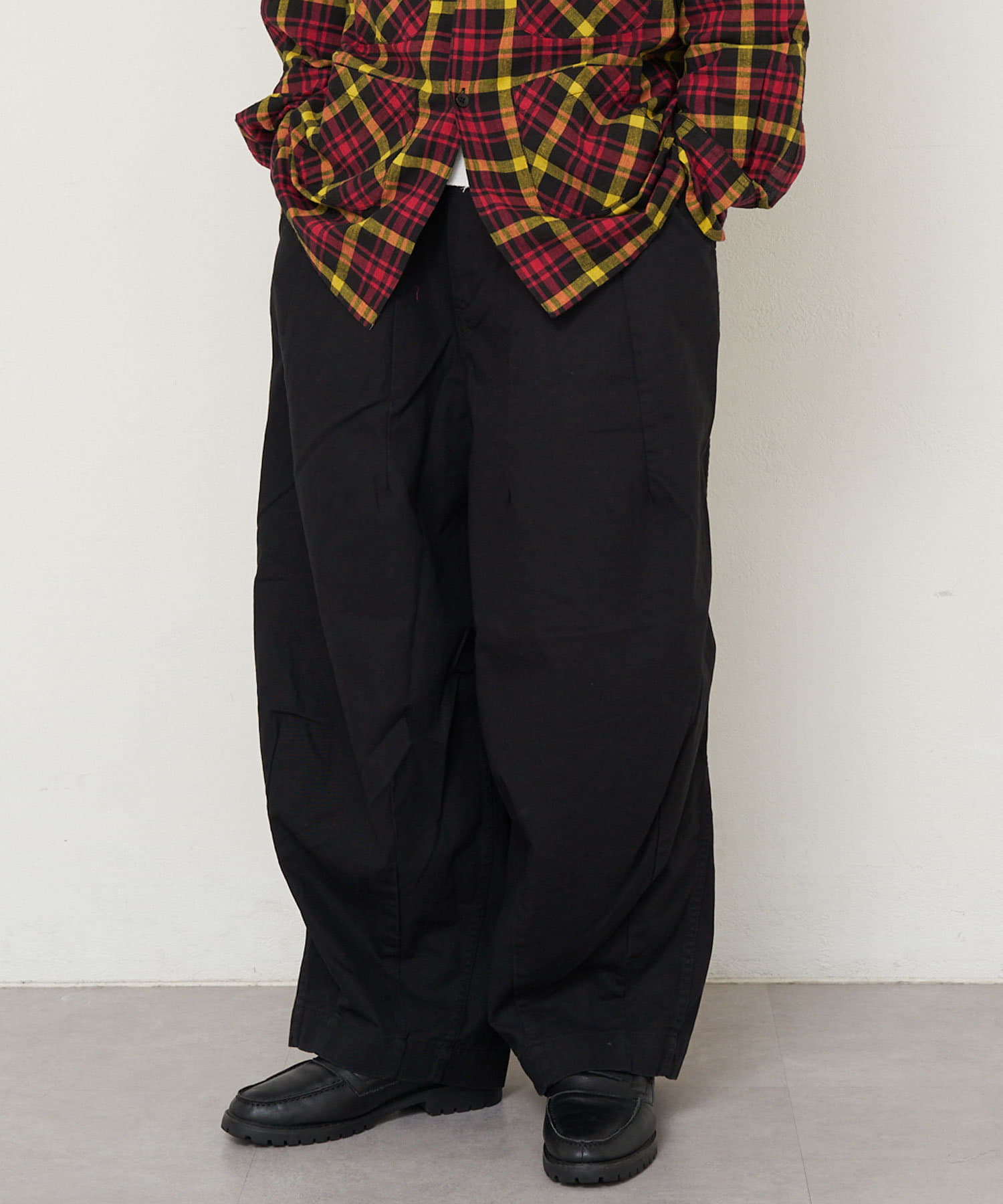 ウエストと裾のダーツ処理によりフロントが大きくふくらんだ独特のシルエットが魅力の人気アイテムH.D. パンツ。リラックス感のあるワイドなシルエットで、締め付けのない開放感のある履き心地も魅力的です。さまざまなデザイン・バリエーションで展開されていますが、シンプルなチノトラウザーズをベースにしたベーシックなデザインとなっています。