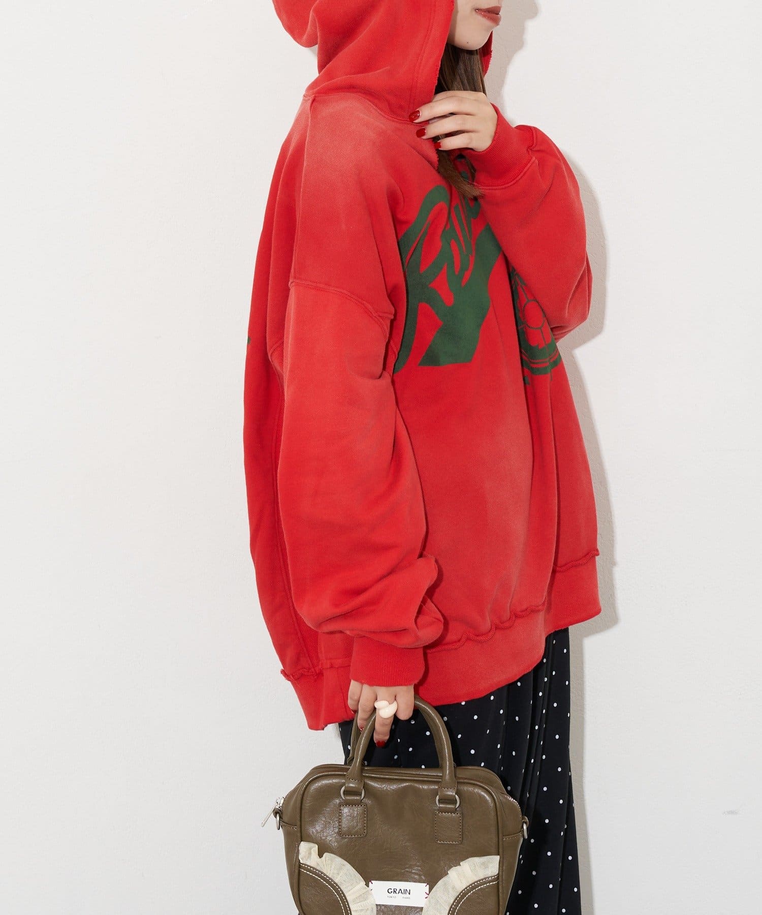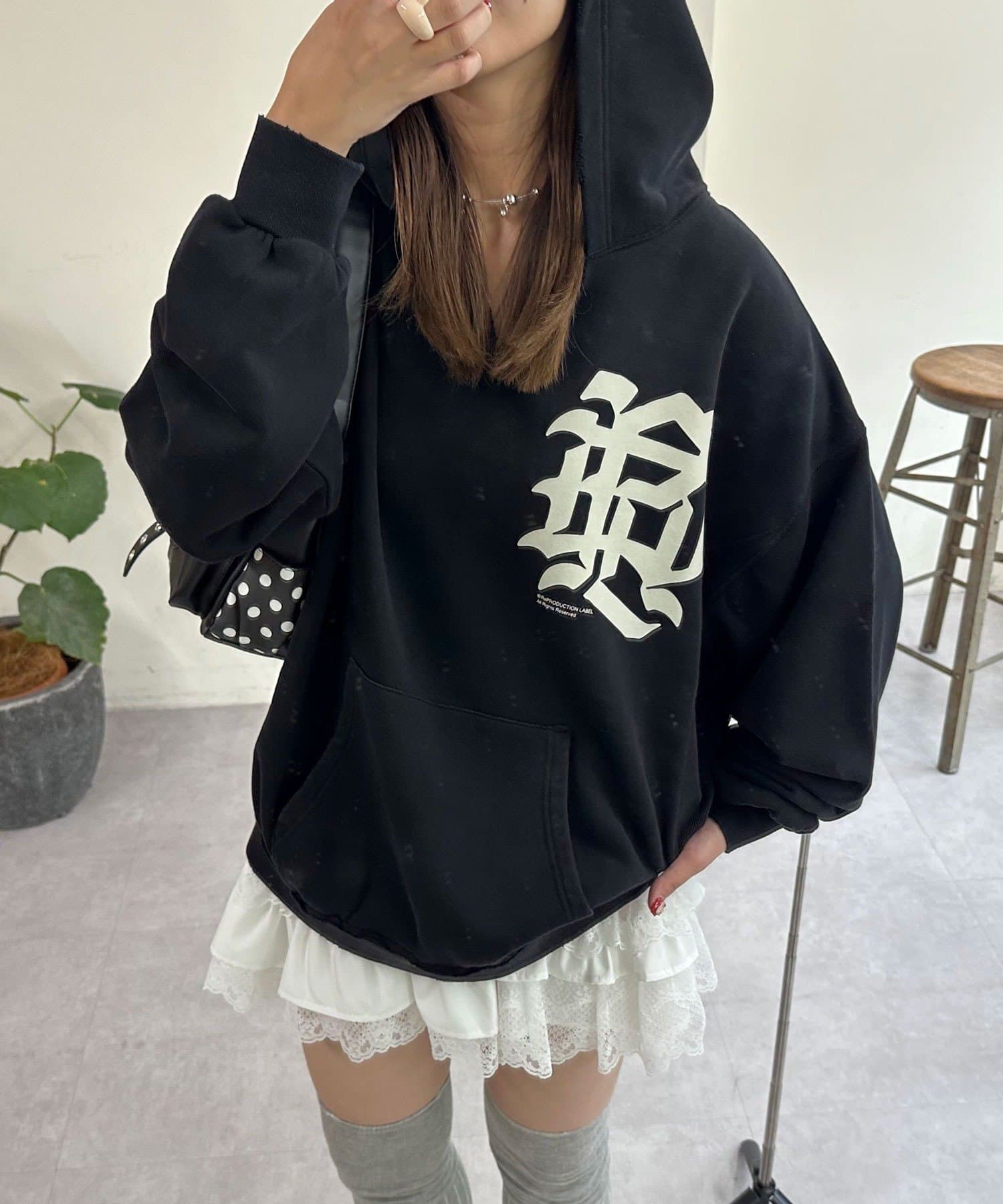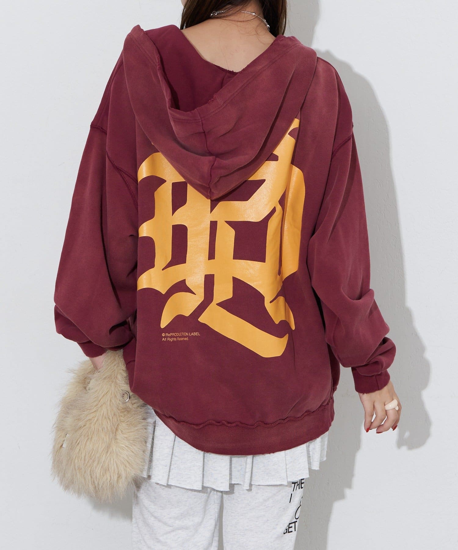 インパクト抜群のフロントプリントが目を引くプルオーバーパーカー。