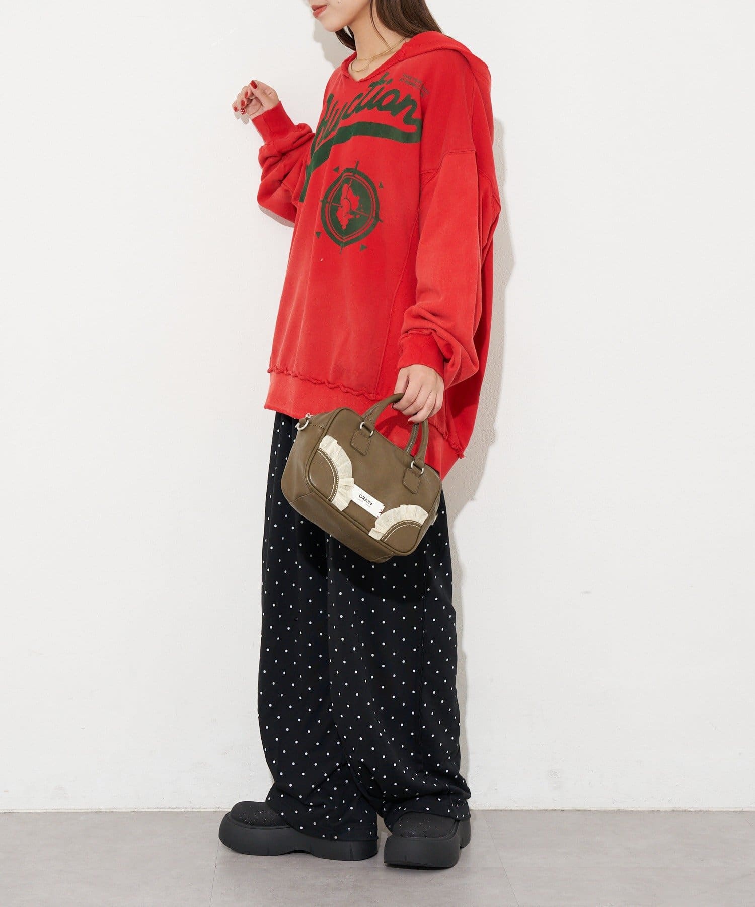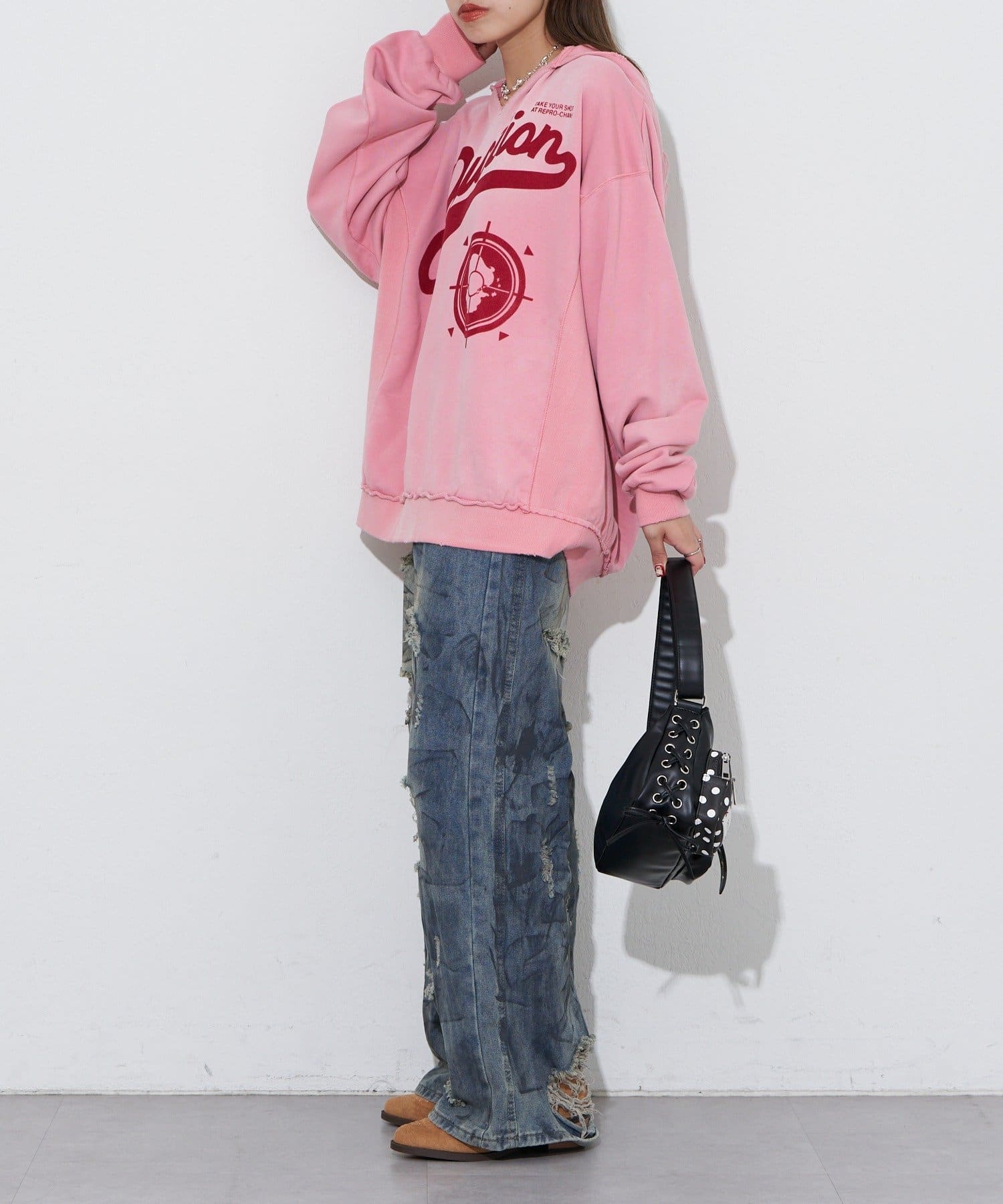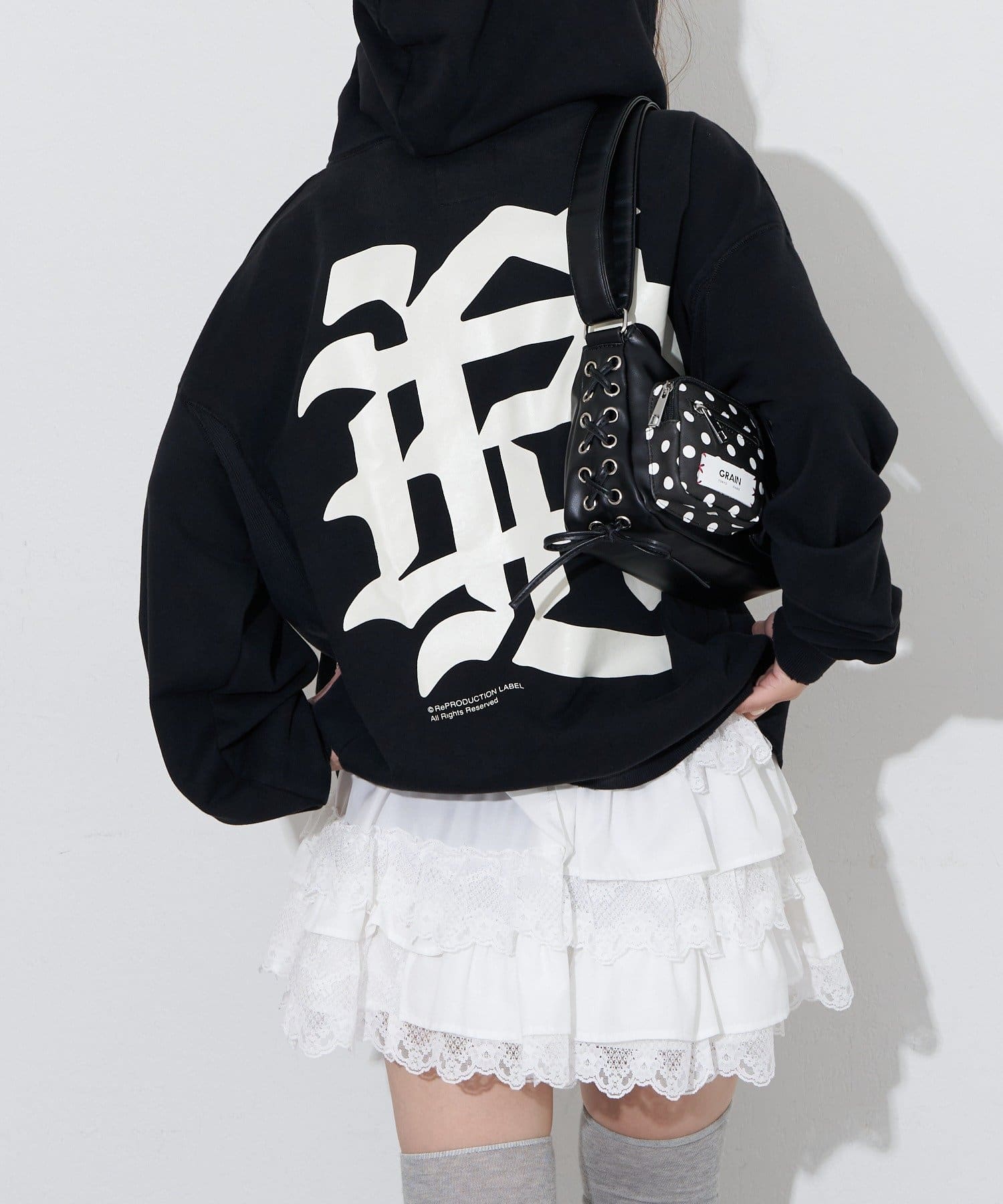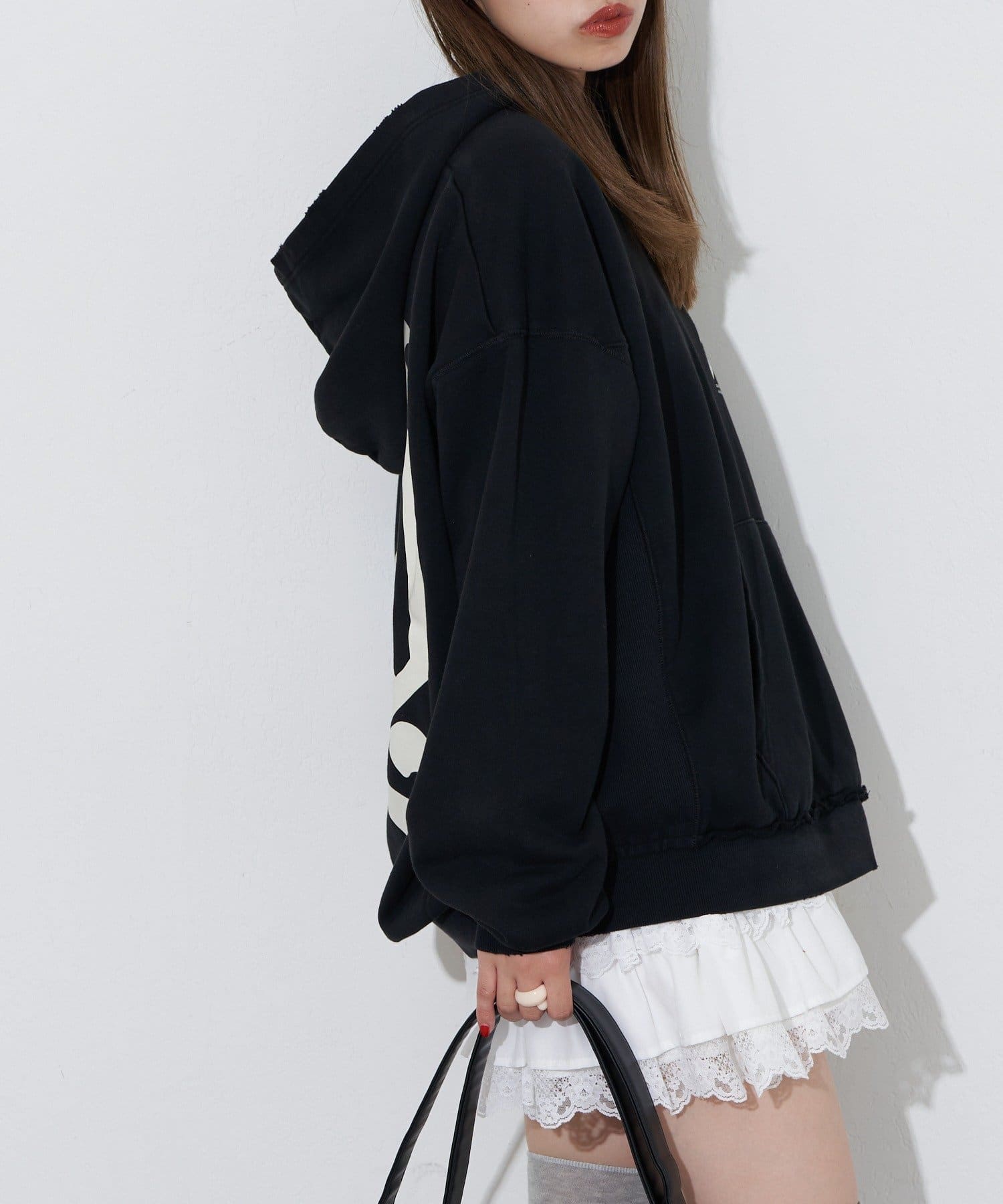 インパクト抜群のフロントプリントが目を引くプルオーバーパーカー。
