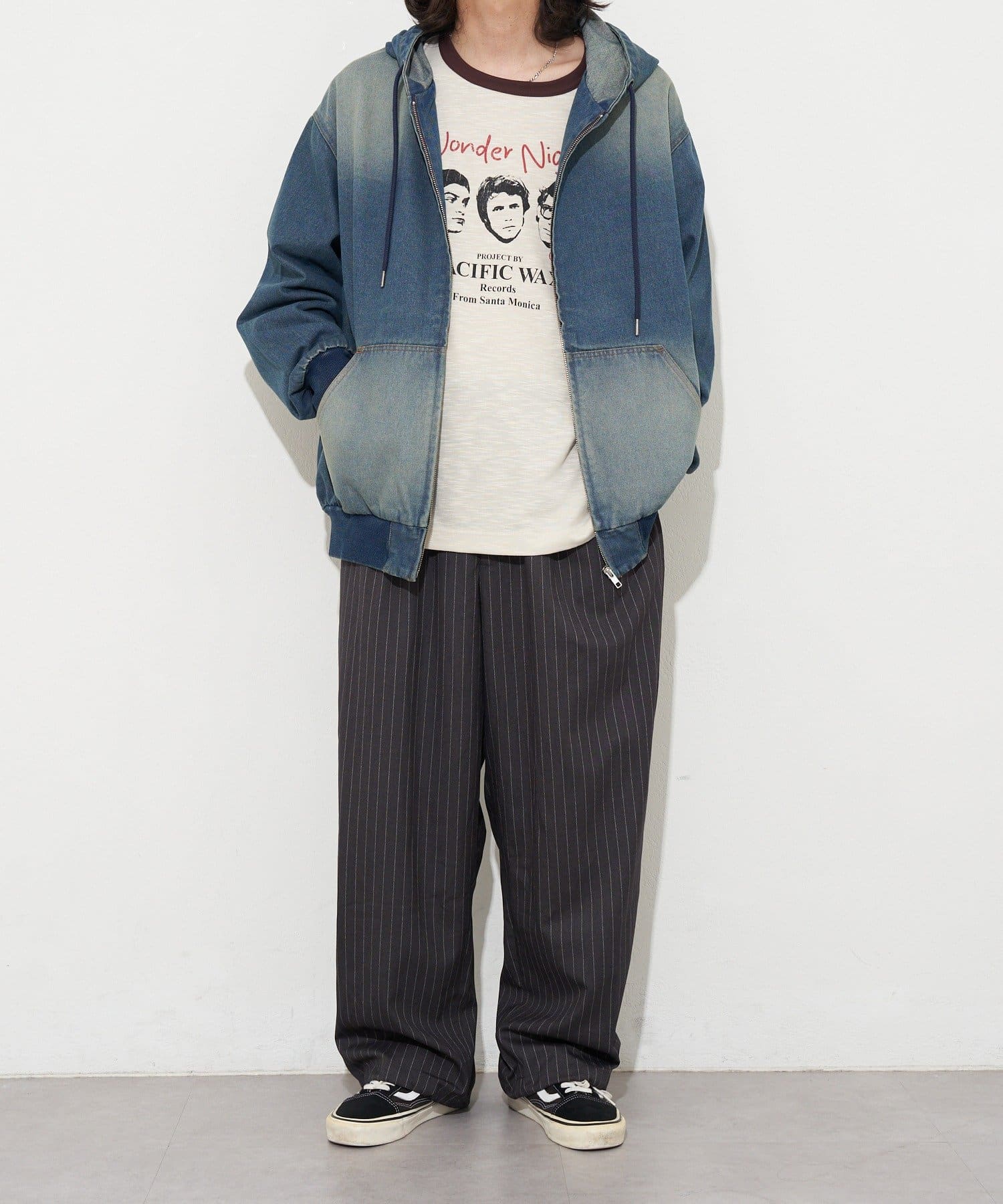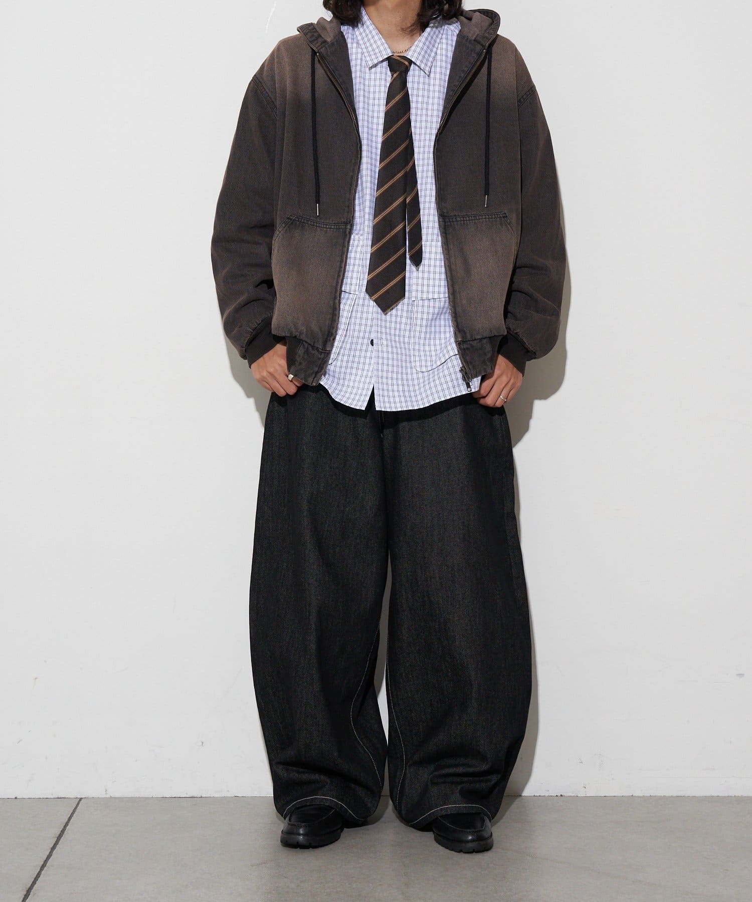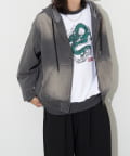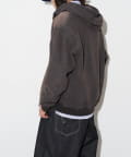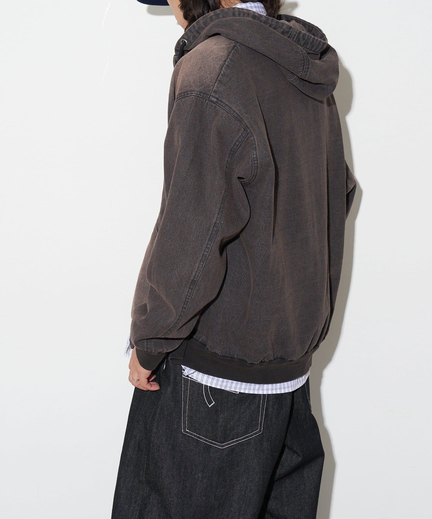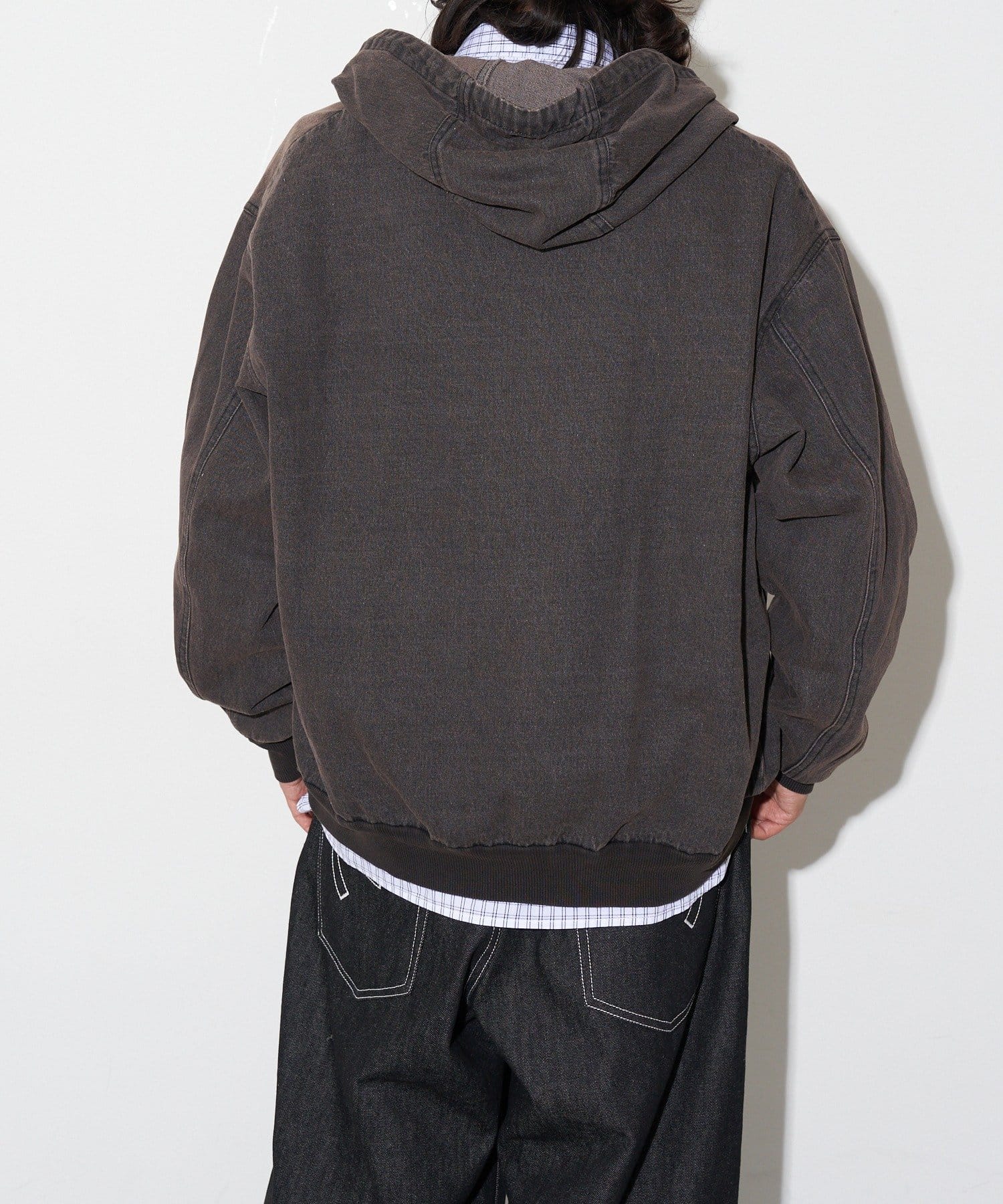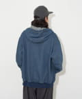 味わい深いオーバーダイ加工を施したデニムジップパーカー。