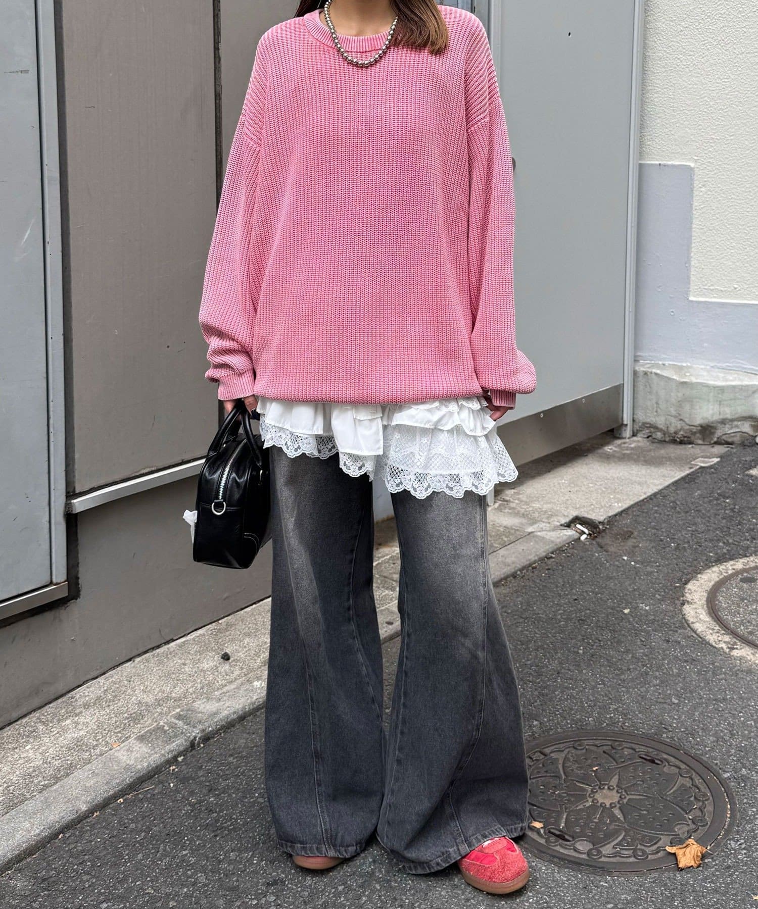 ワイドデニムとスニーカーで合わせて、ストリートライクな王道カジュアルに。