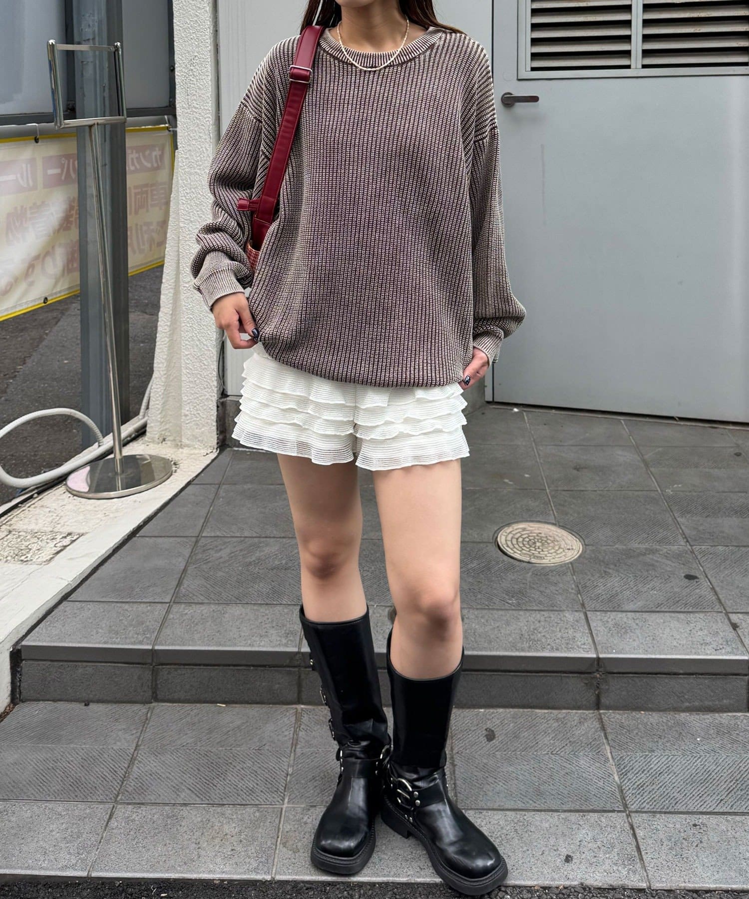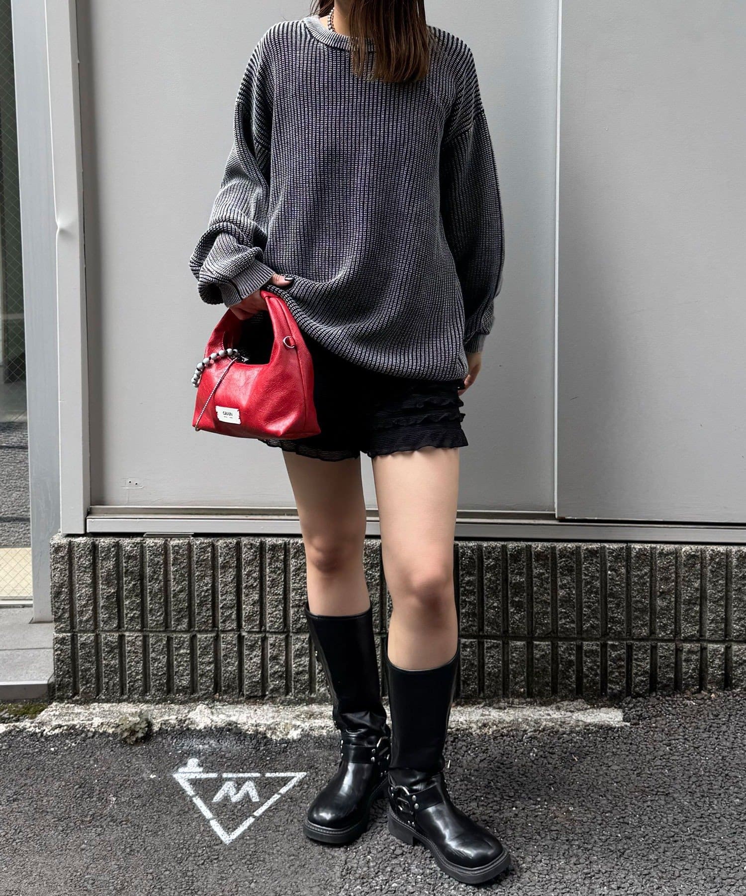 プリーツスカートやショーパンと合わせれば、ユニセックス感を残しつつガーリーな抜け感コーデに。