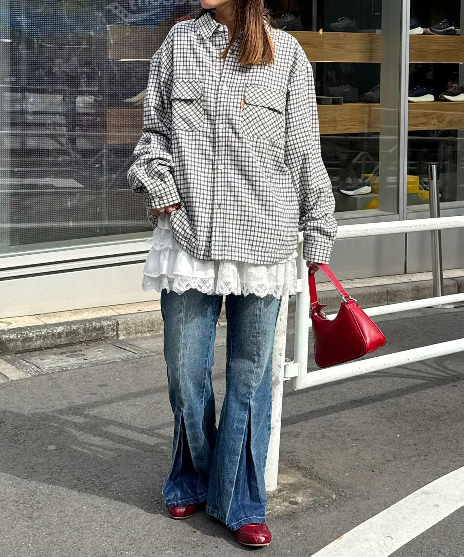 ロゴTやロンTにさらっと羽織れば、こなれ感たっぷりのカジュアルスタイルに。