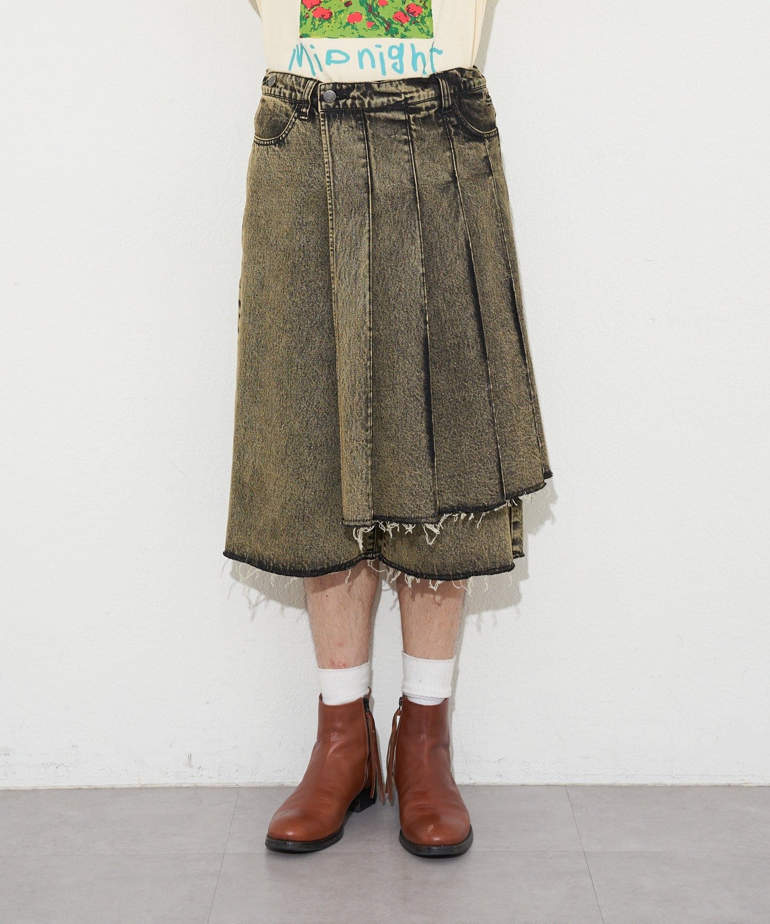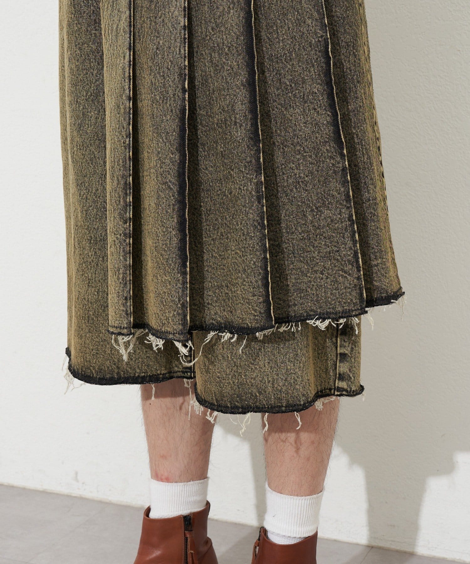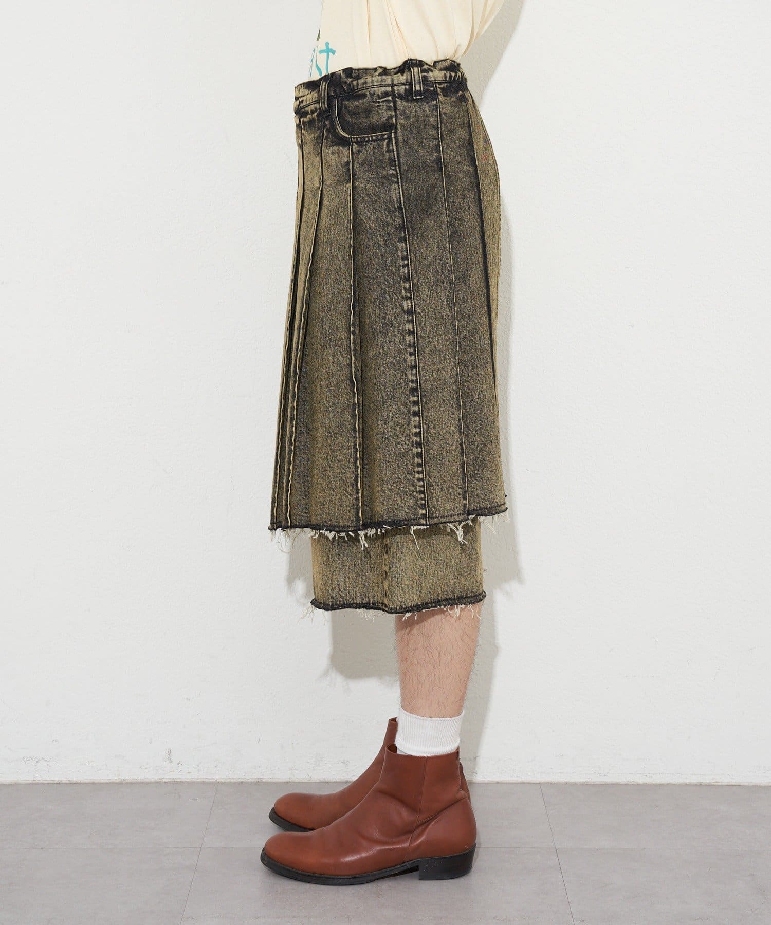 【ANTI WARP /アンチワープ】スカートレイヤードハーフデニムパンツ