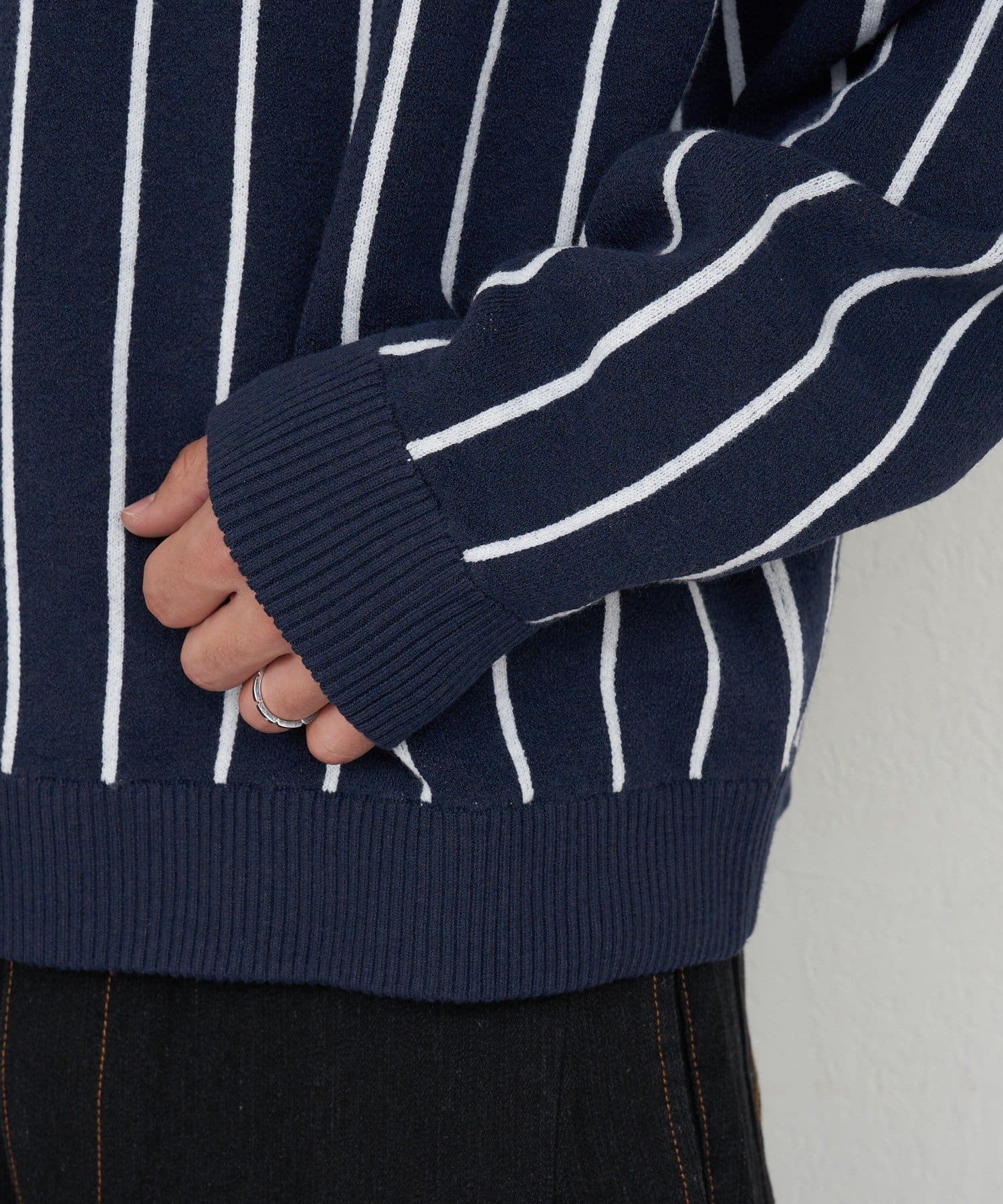 ストライプデザインが目を引くベースボールスウェットライクニット。