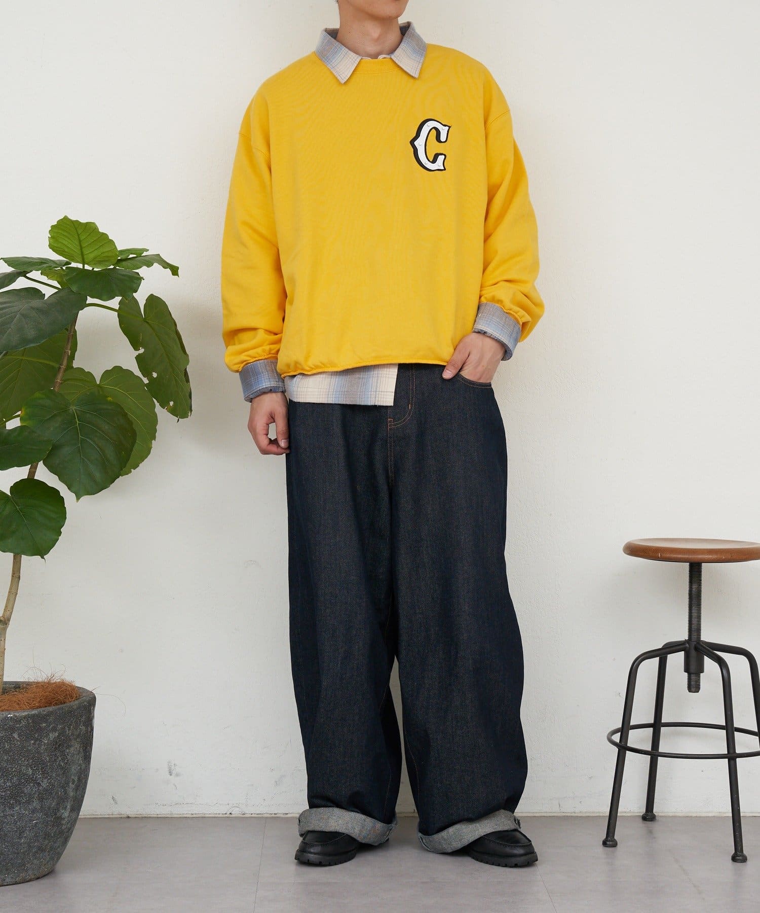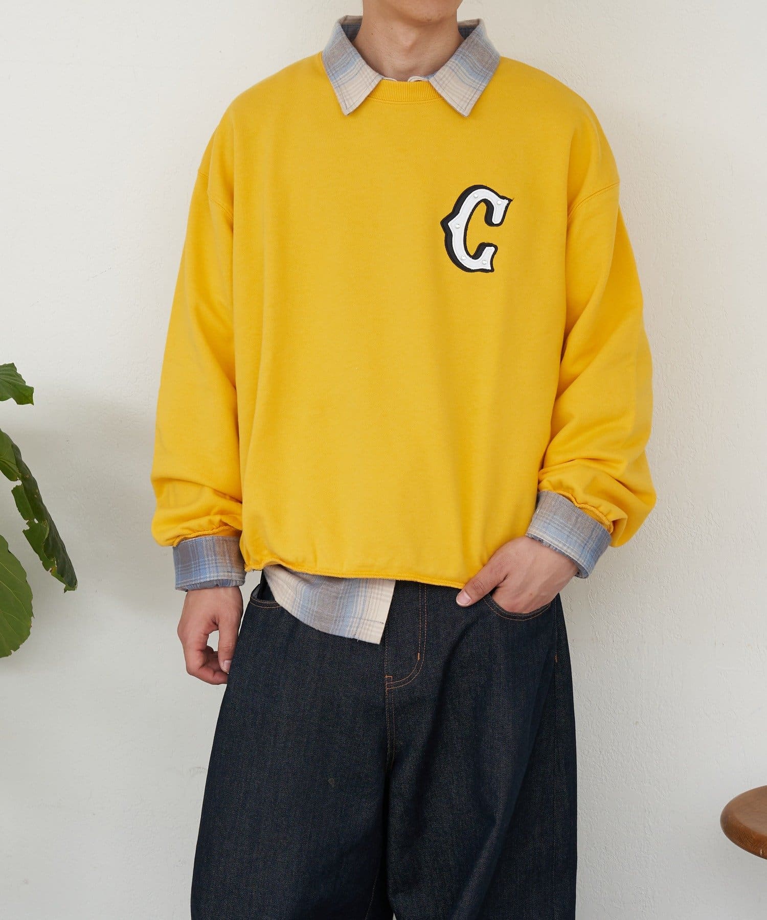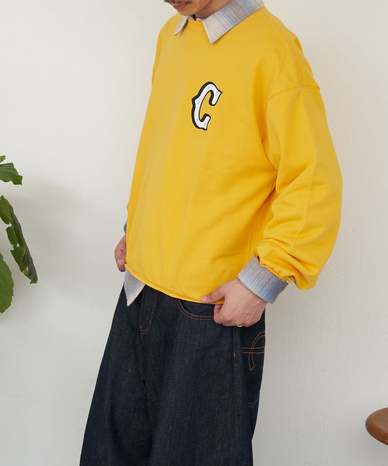 “C”ワッペンがポイントの、シンプルながら存在感のあるスウェット。
