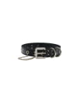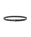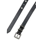 端正なブラックレザーに、等間隔に配されたアイレット(ハトメ)ディテールがエッジを効かせる一本。