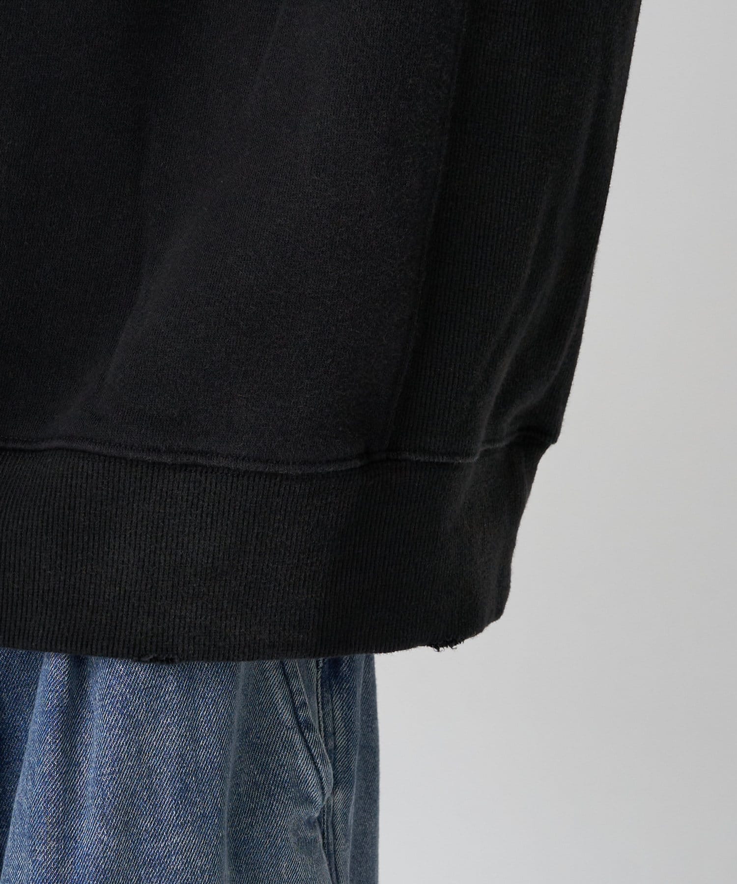 ダメージ加工を施し、ヴィンテージ感ある古着ライクな印象に。