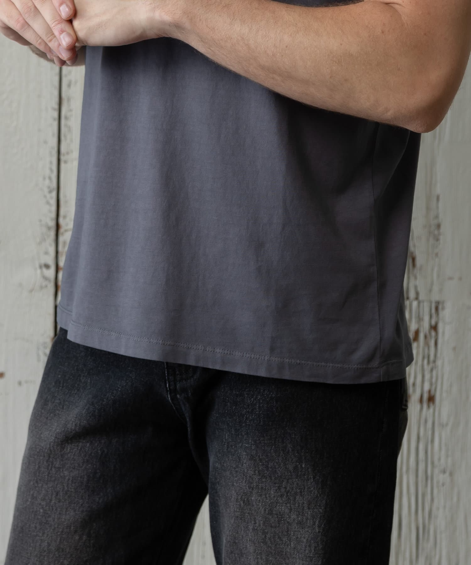 1枚着はもちろんインナーにも使いやすく、フロントからバックにかけてラウンドしたシルエットでレイヤードにもオススメです。