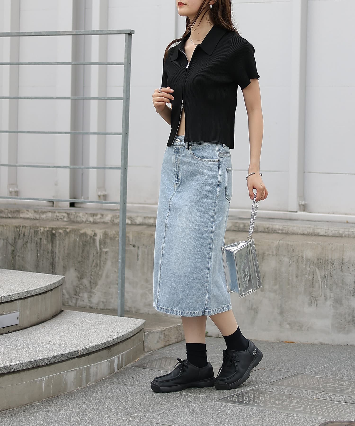 ブラウスやシャツと合わせた定番コーデはもちろんのこと、スウェットやロゴTとも相性抜群なのでカジュアルコーディネートもおすすめ。