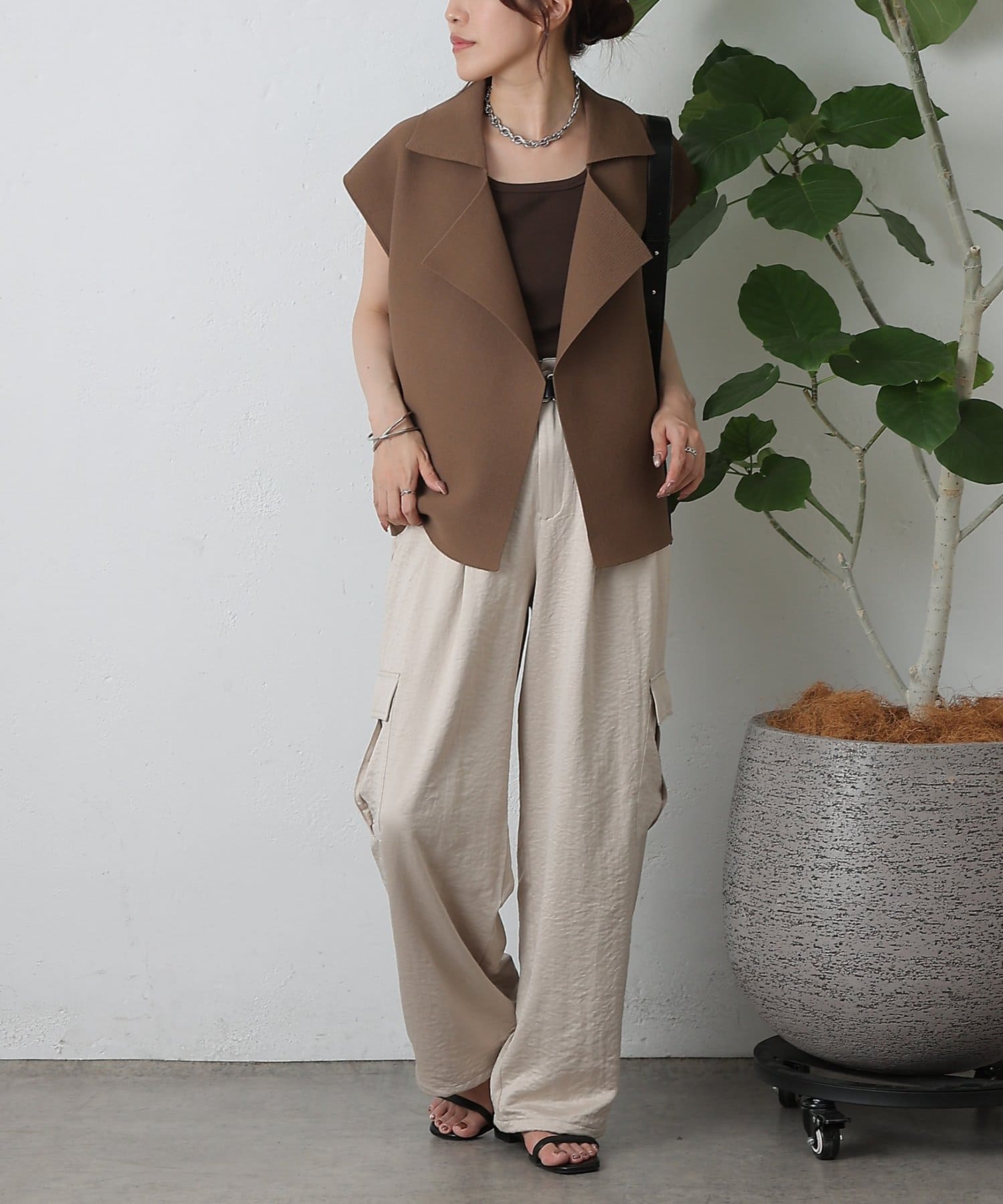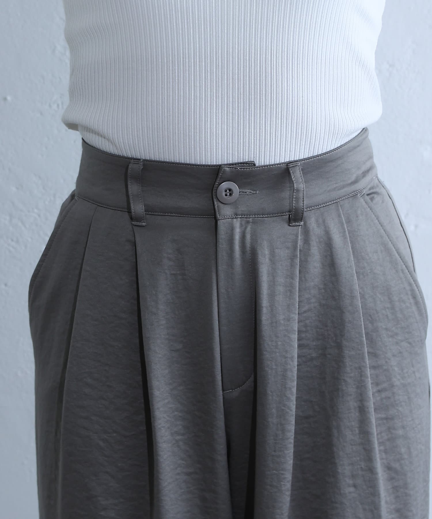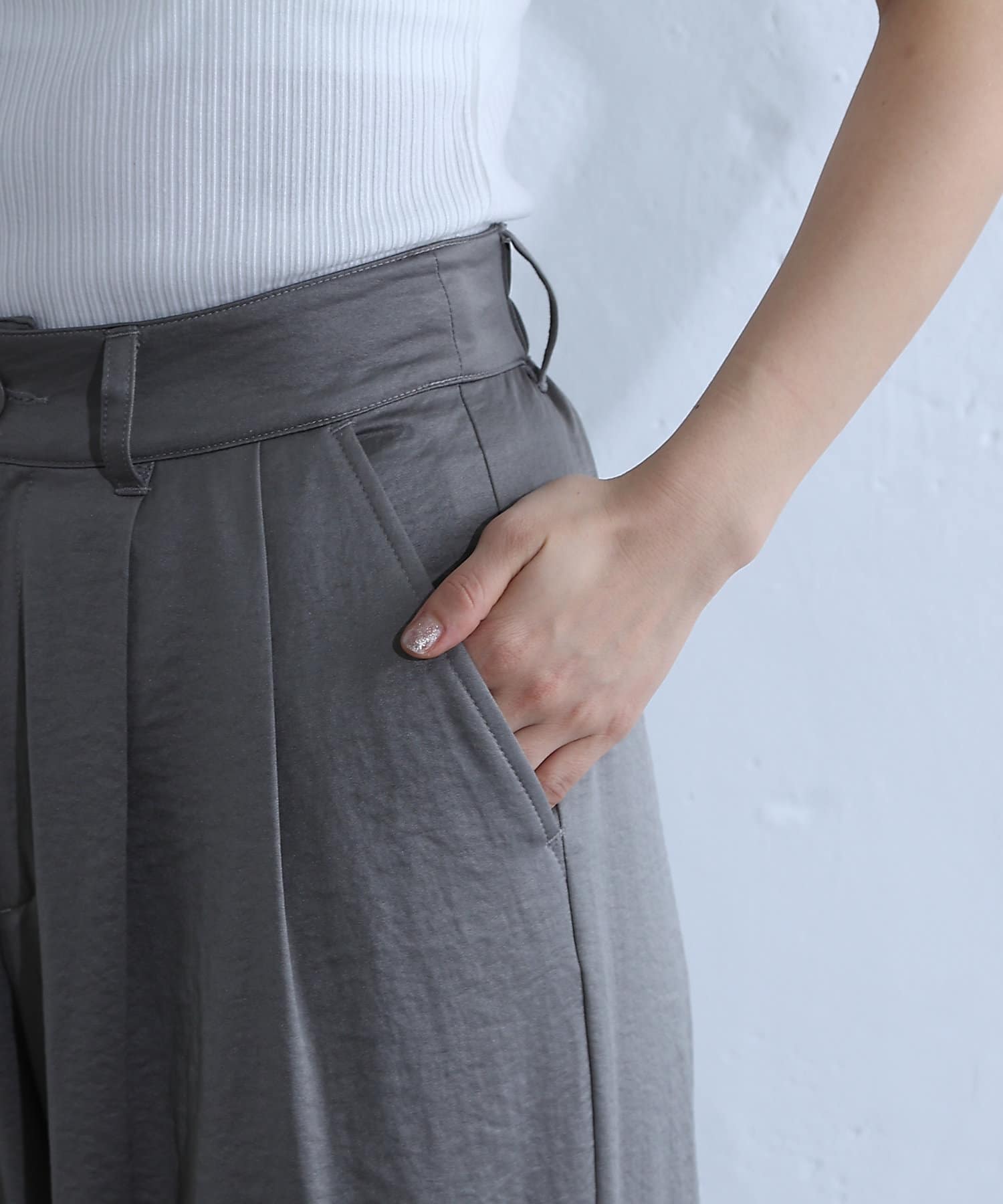 サテン生地でワーク感が強すぎず、品良く着れるデザインです。