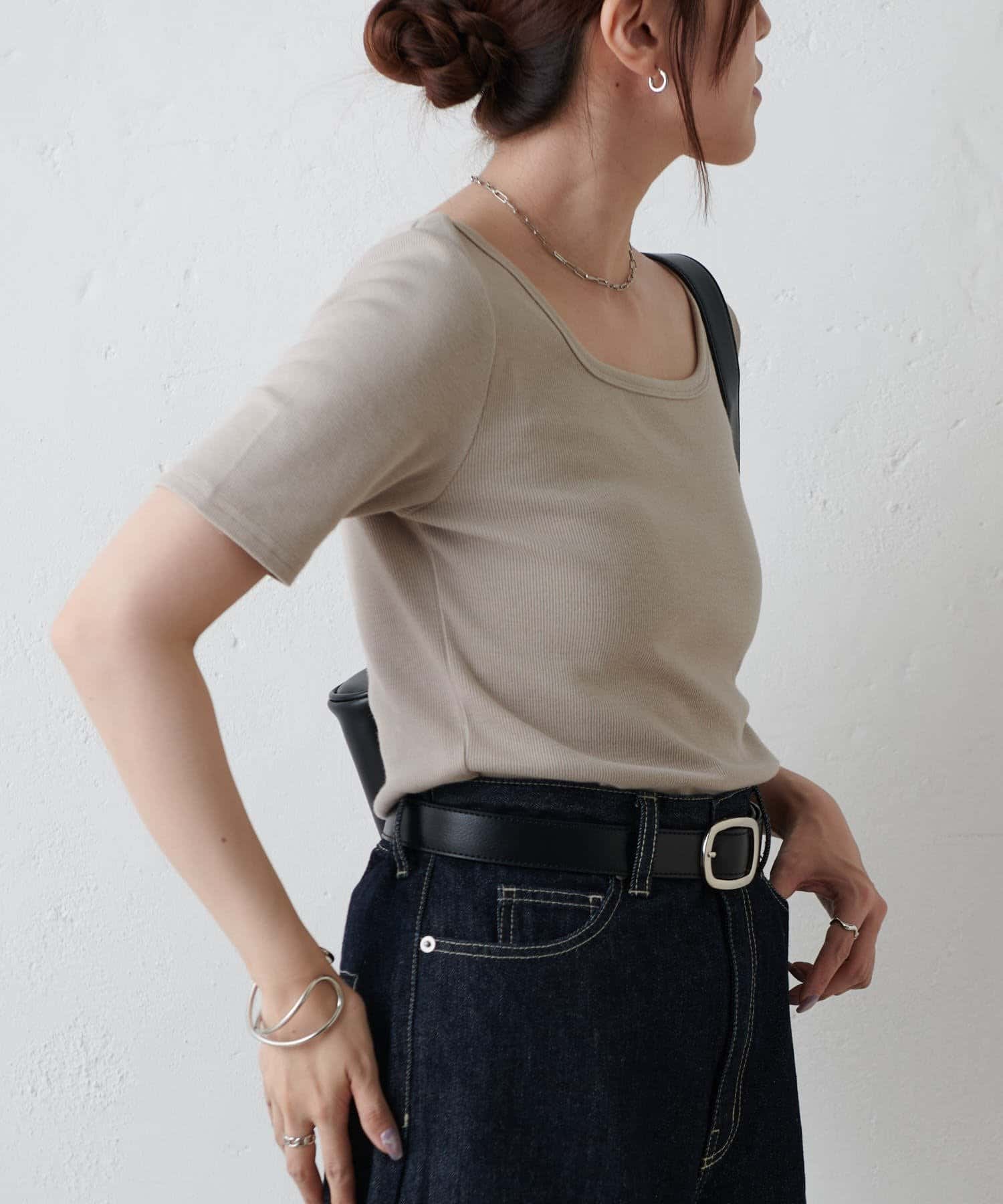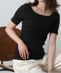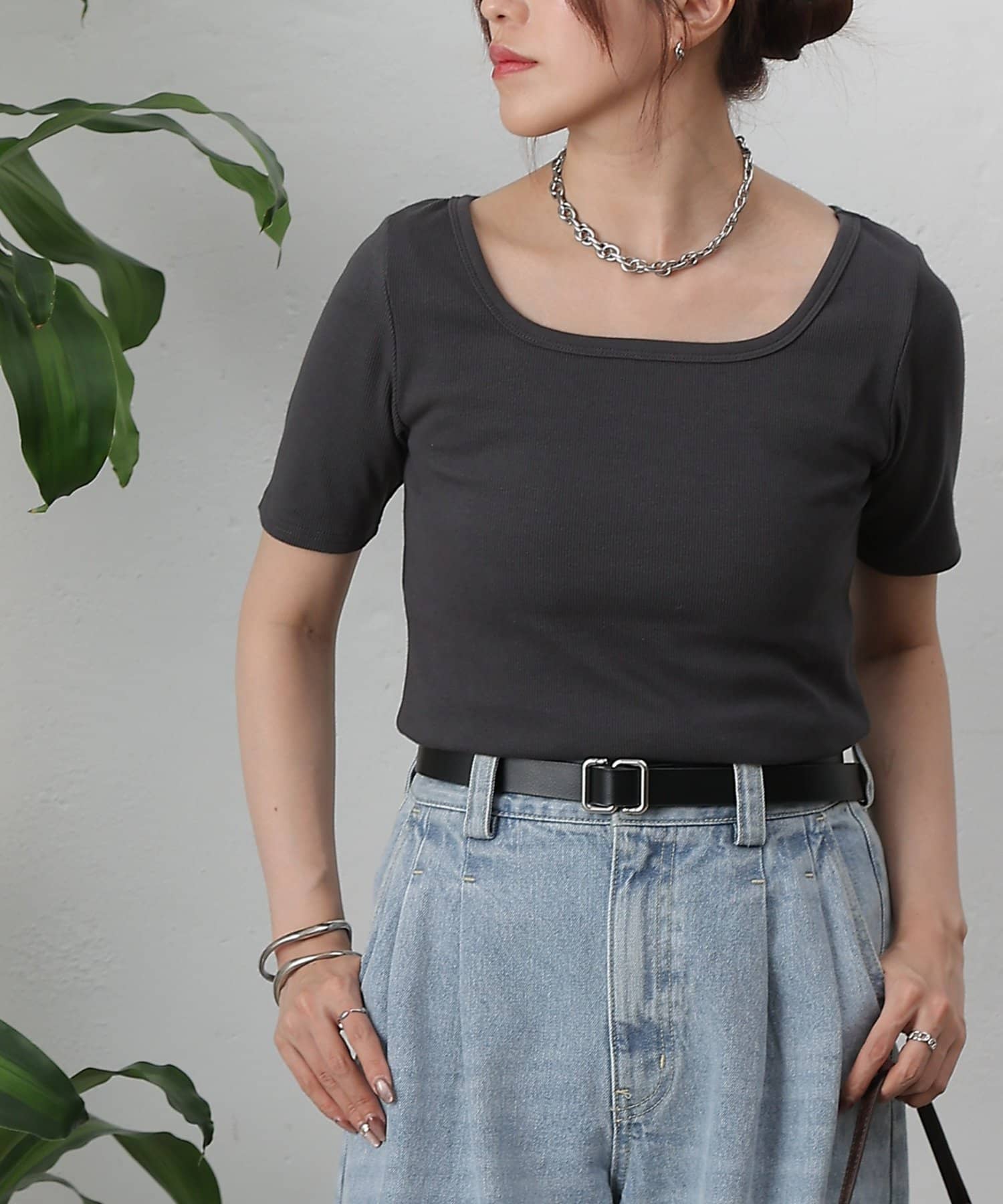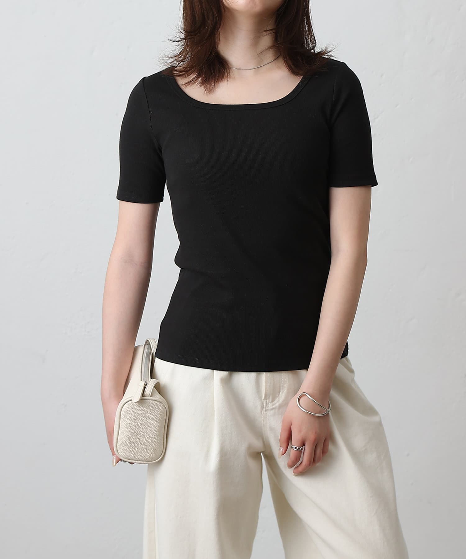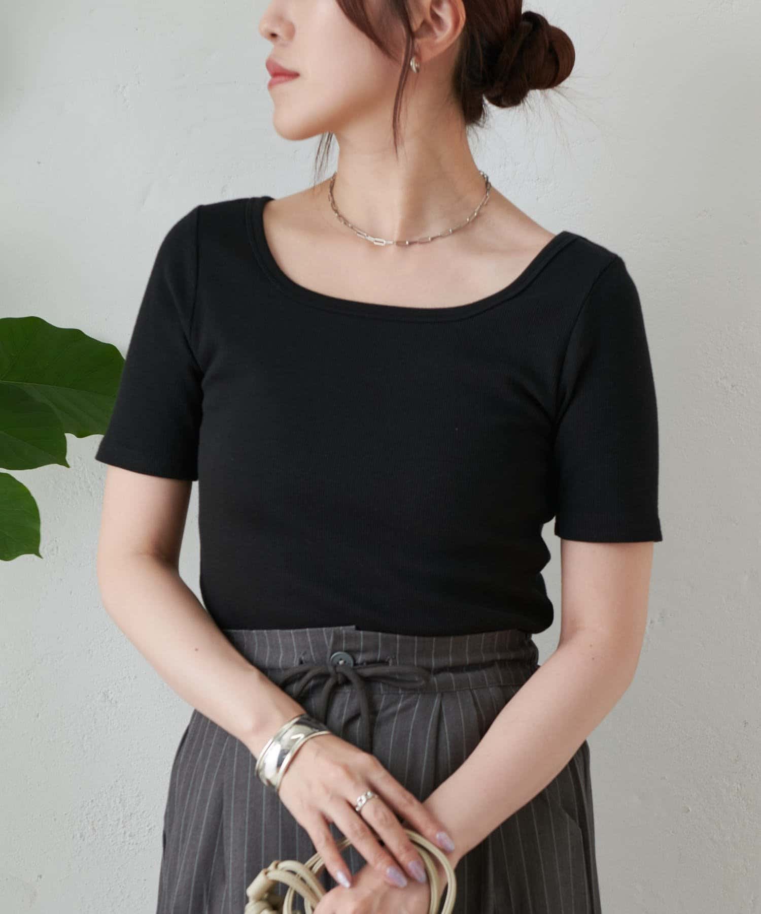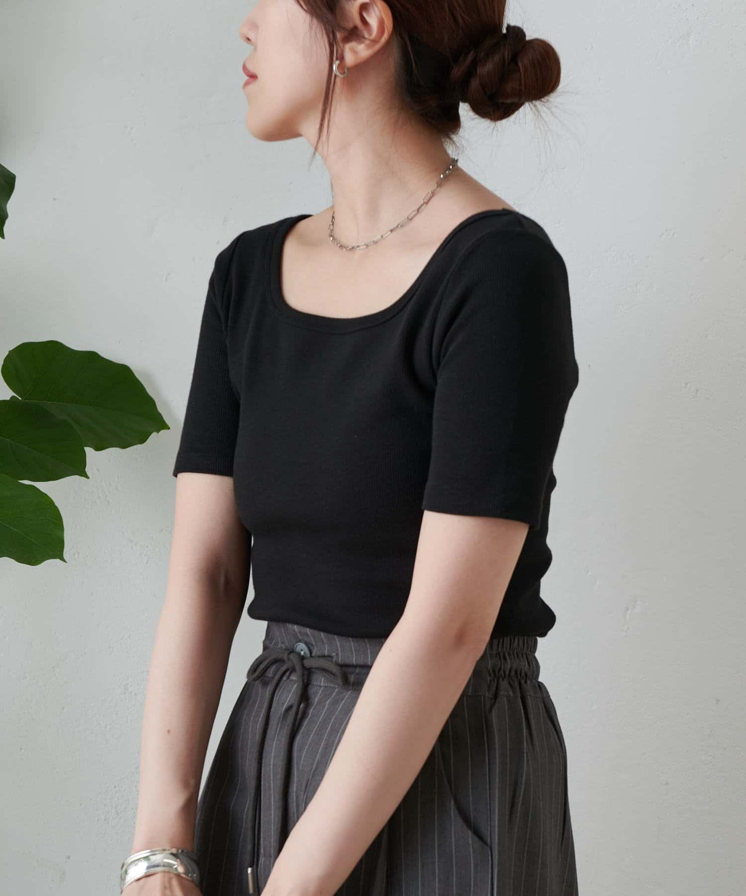 【BASIC LINE】スクエアネックリブ半袖プルオーバー