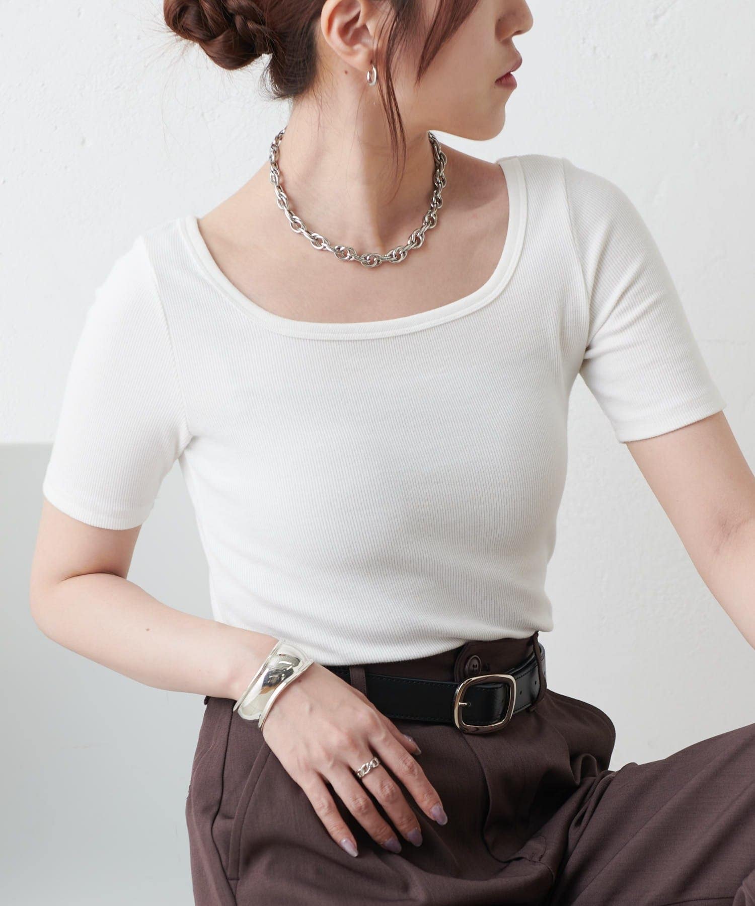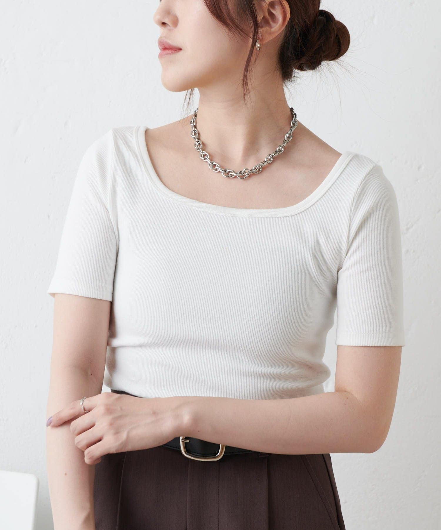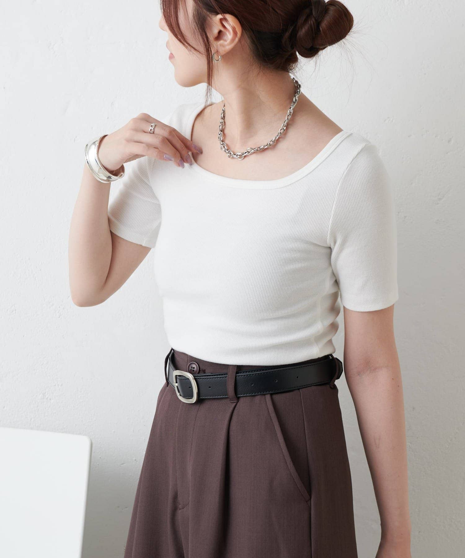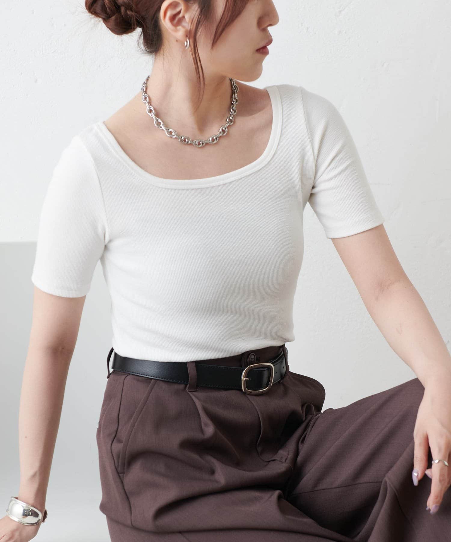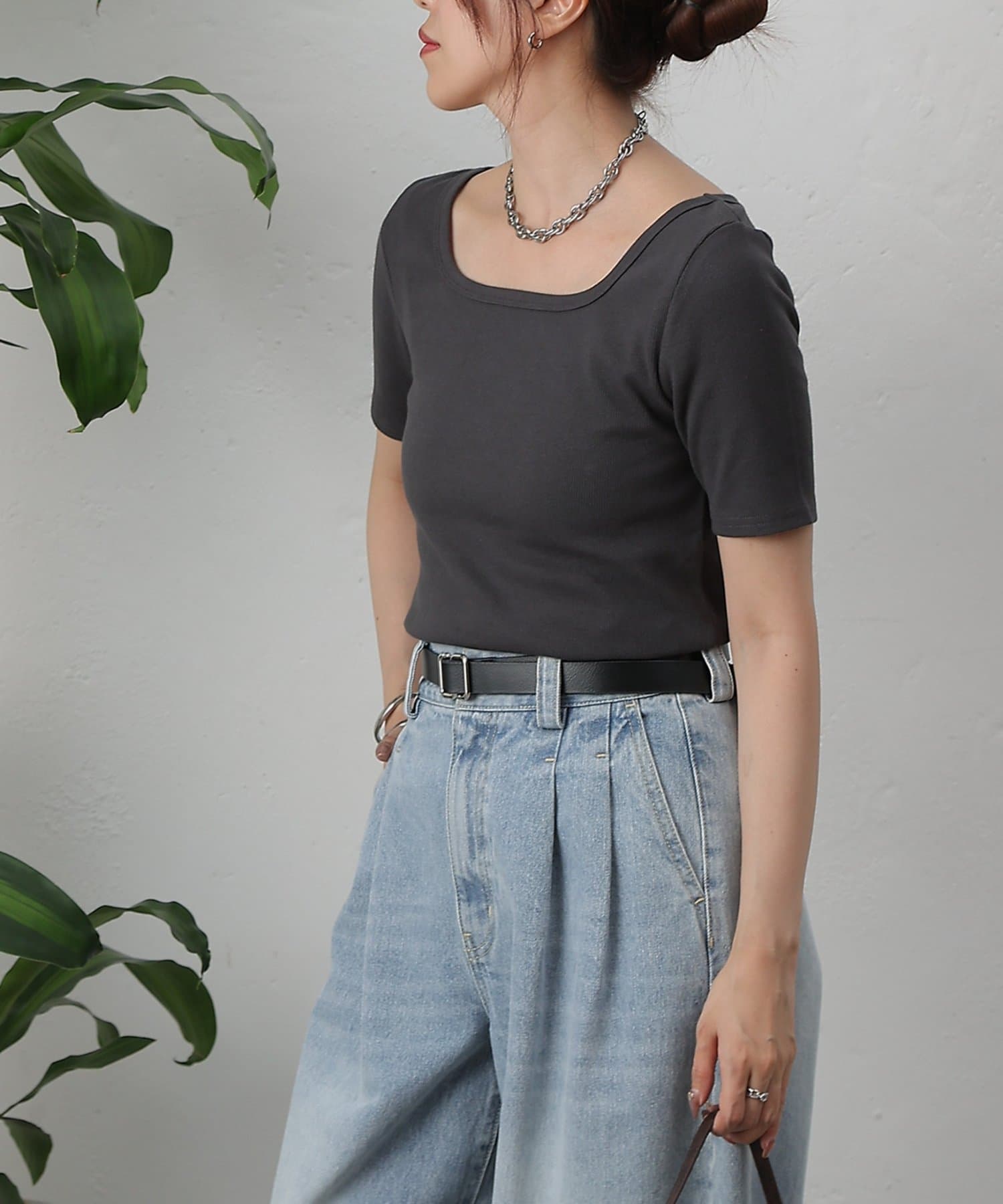 【BASIC LINE】スクエアネックリブ半袖プルオーバー