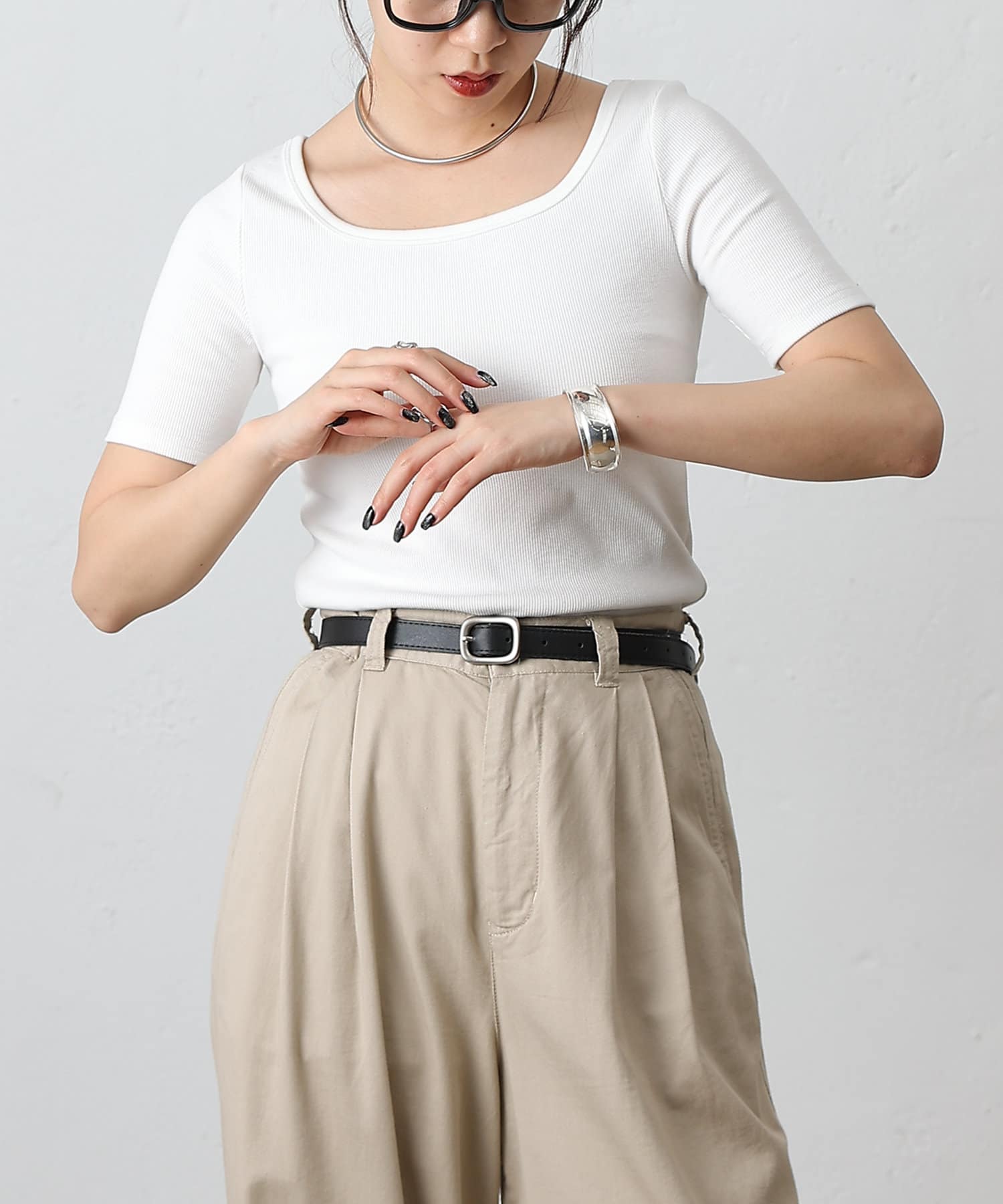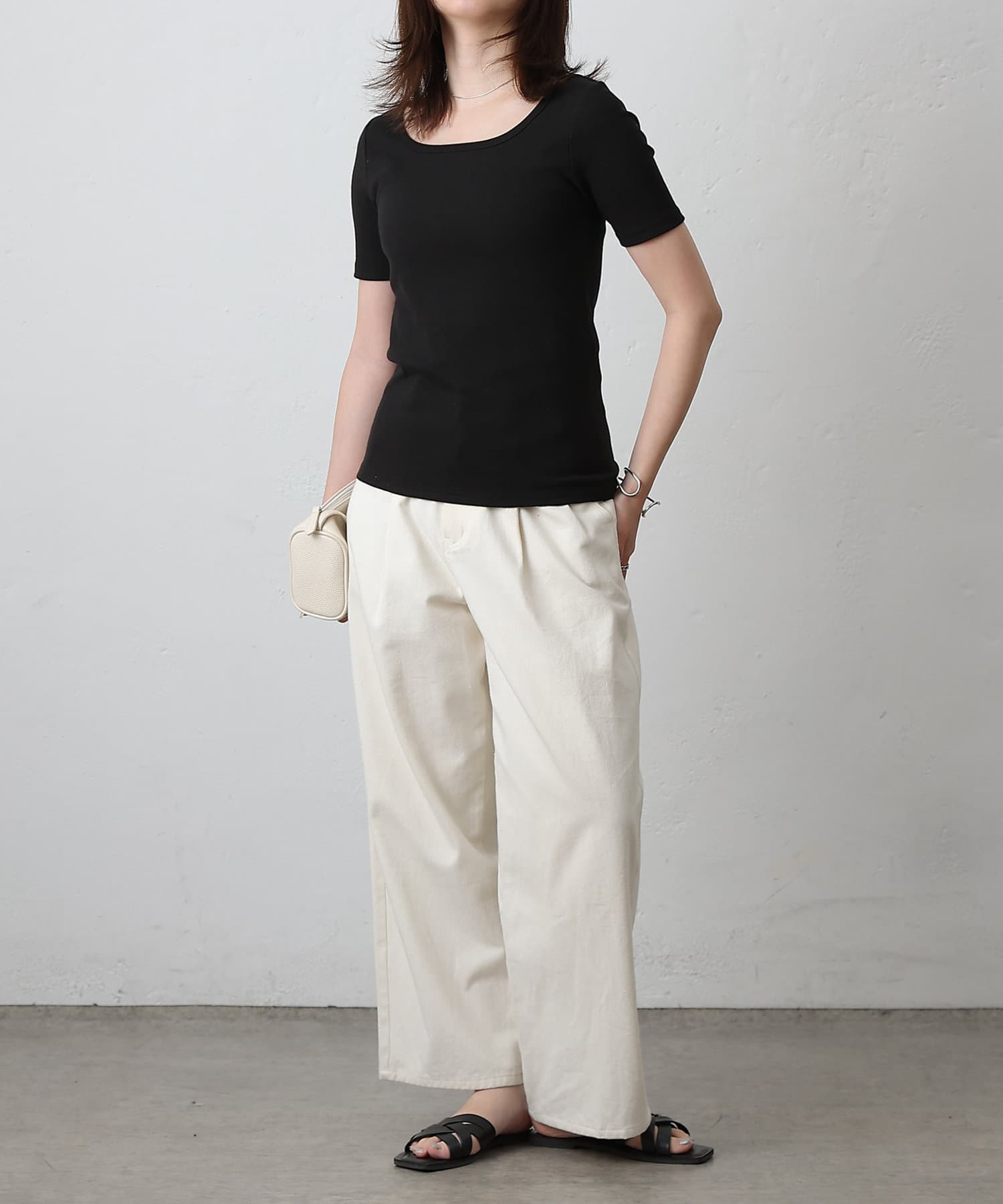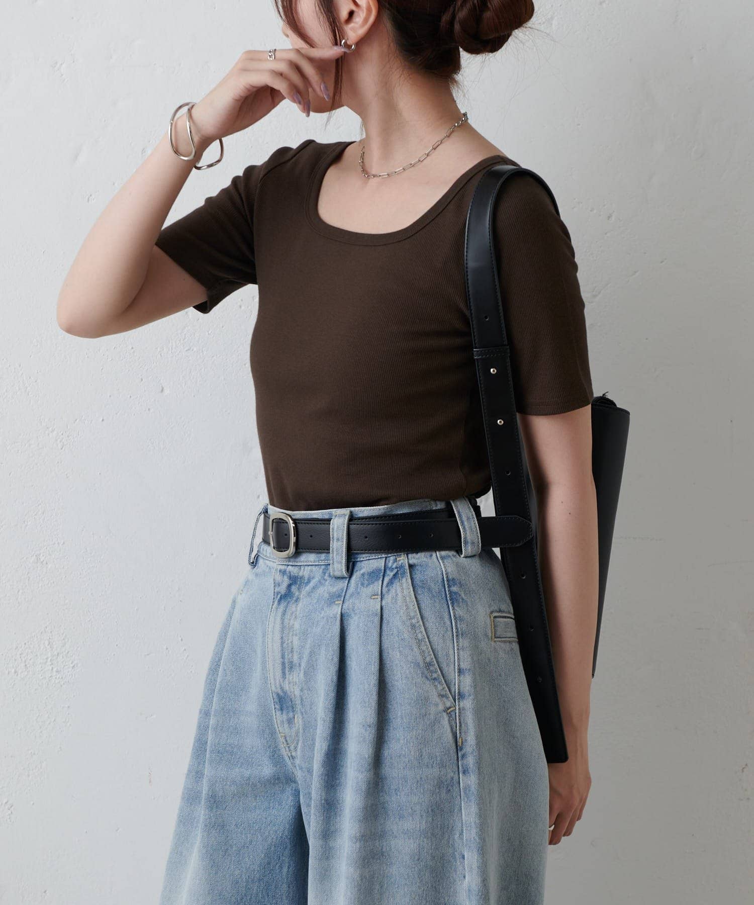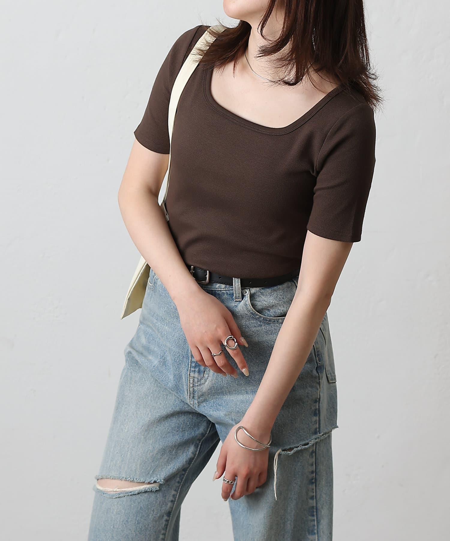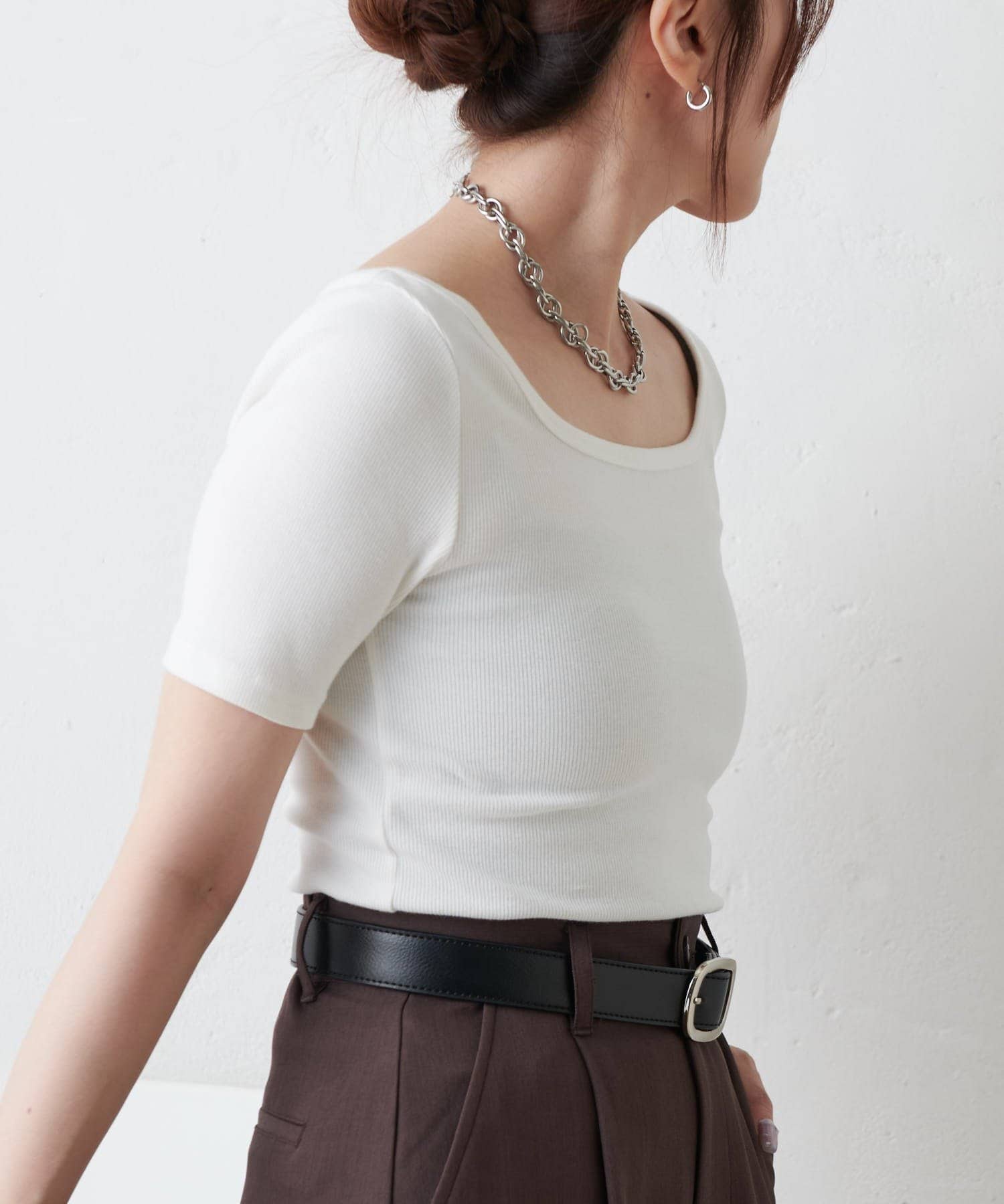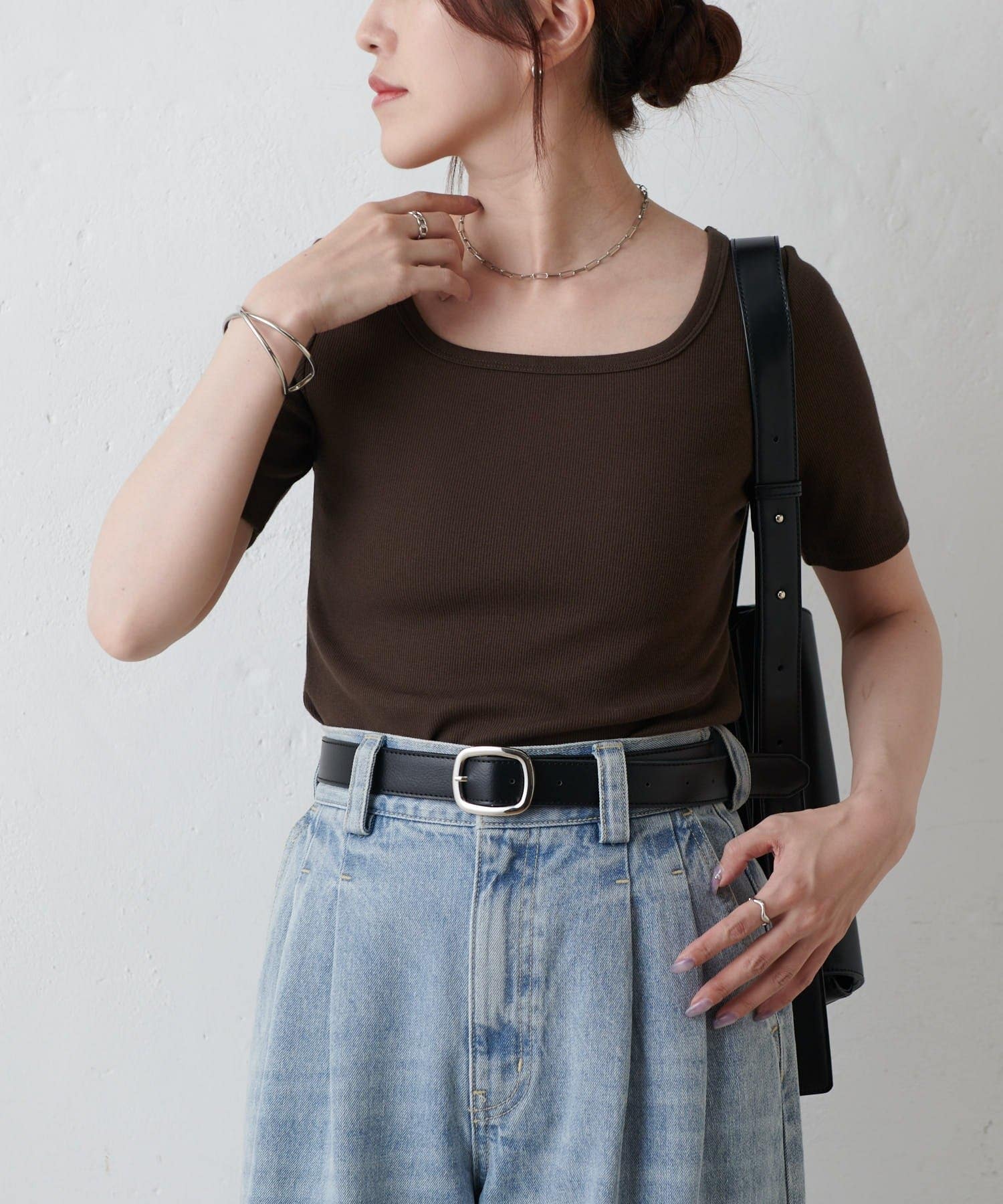 【BASIC LINE】スクエアネックリブ半袖プルオーバー