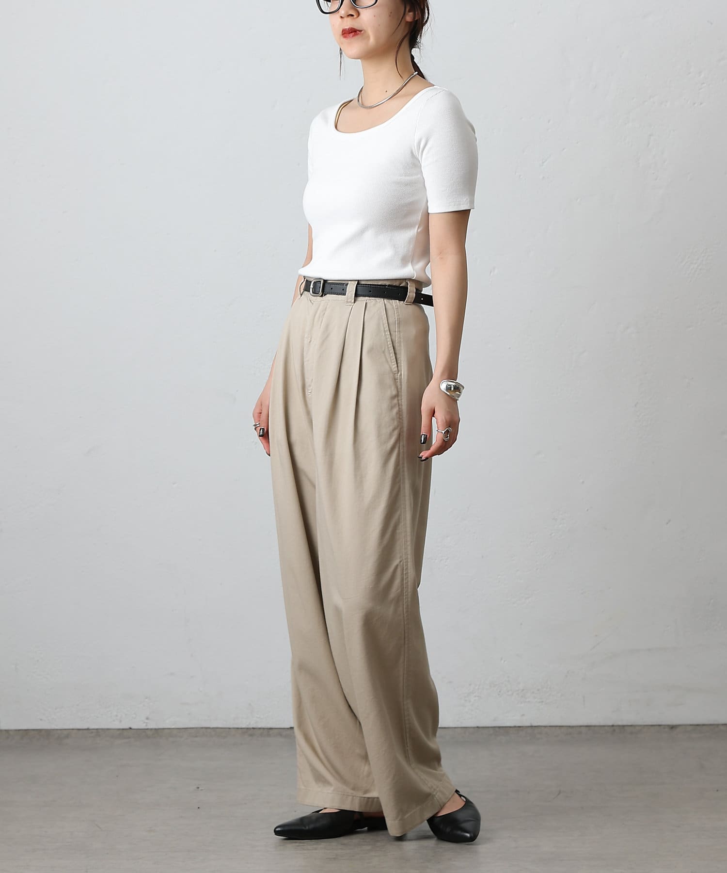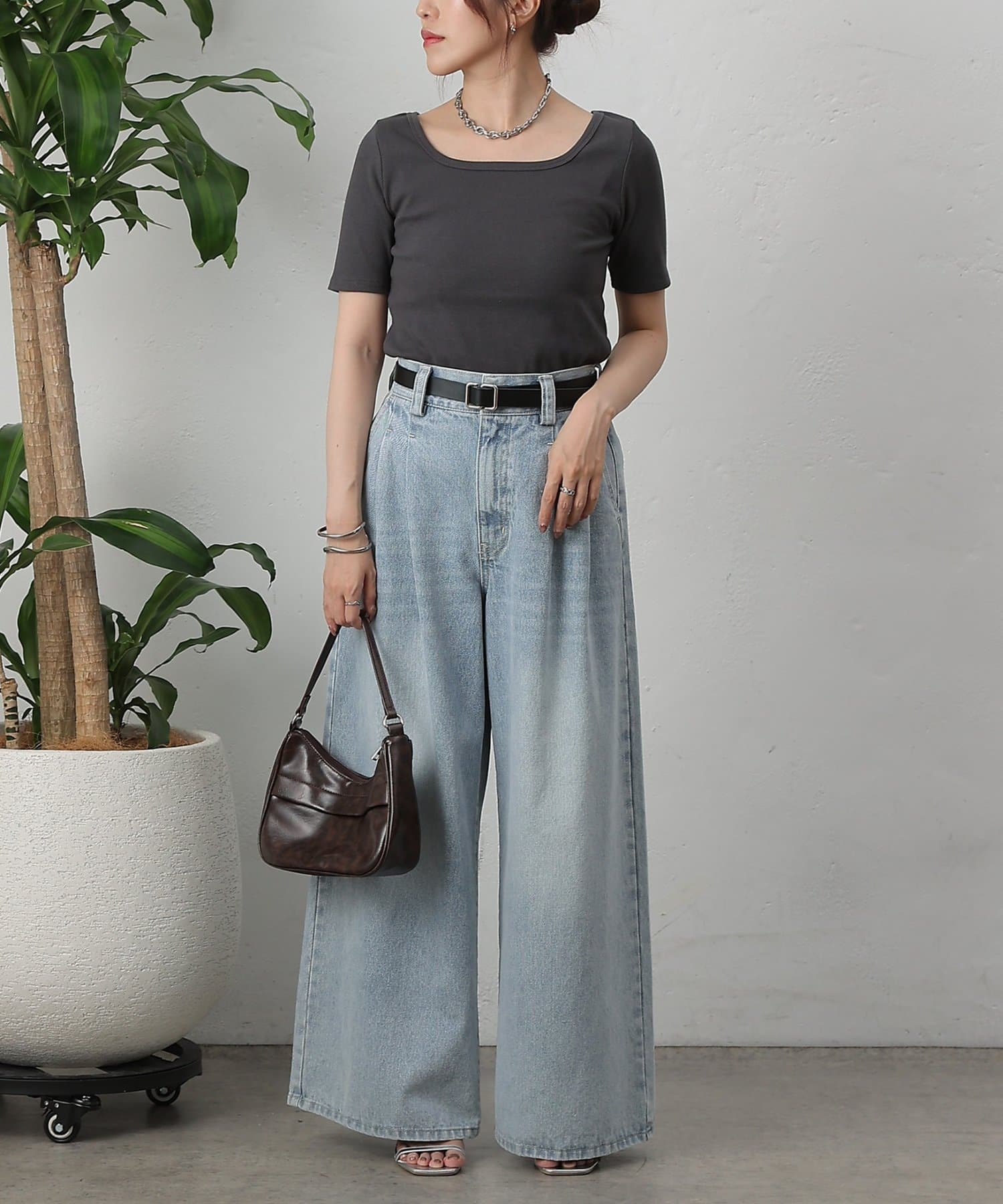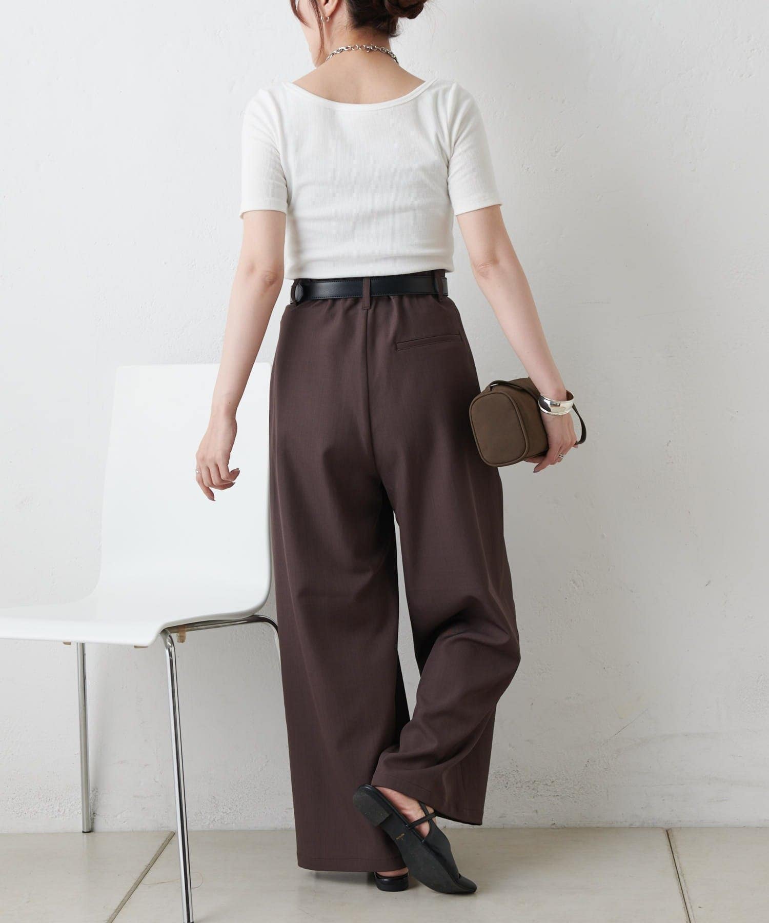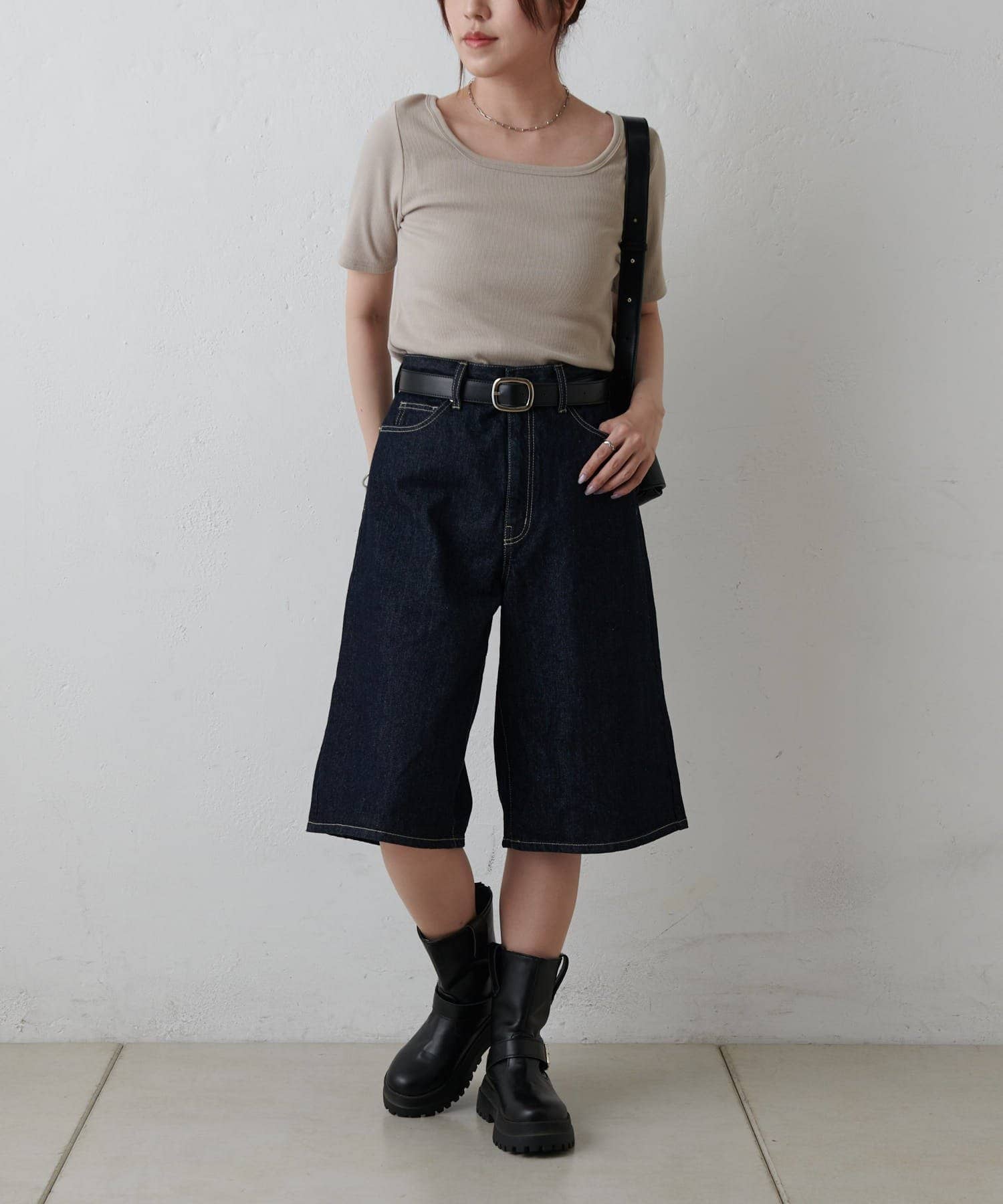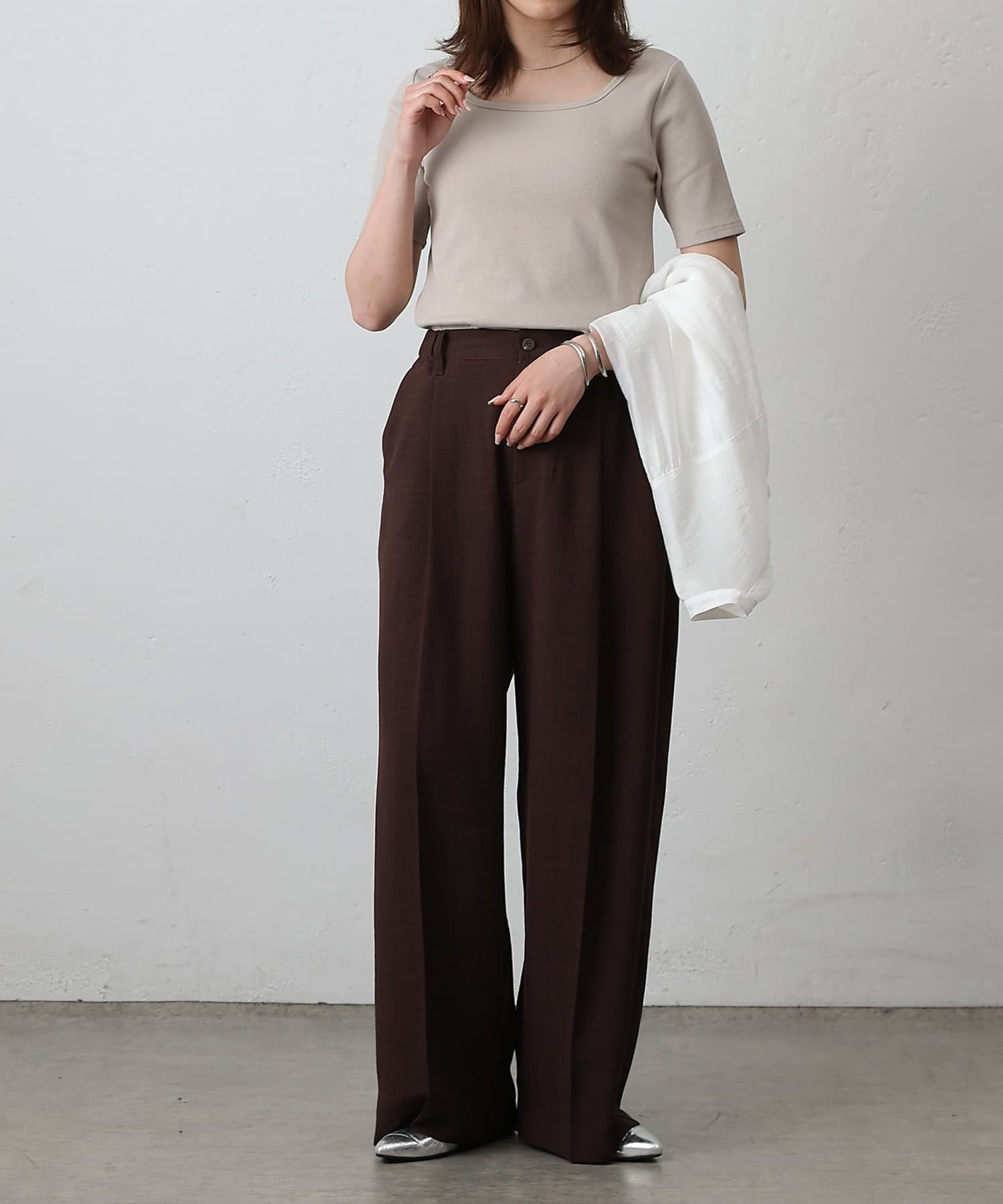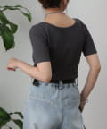 【BASIC LINE】スクエアネックリブ半袖プルオーバー