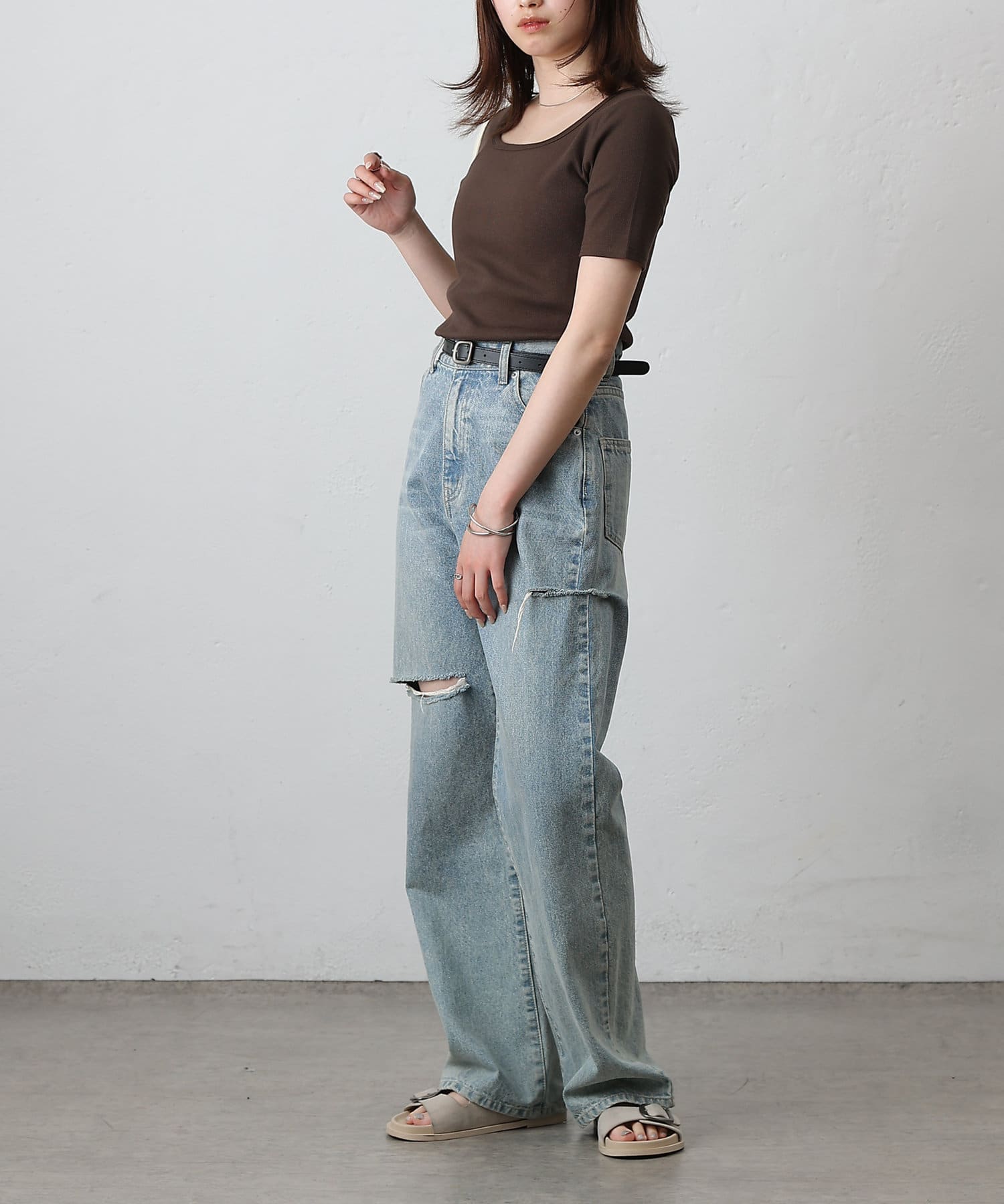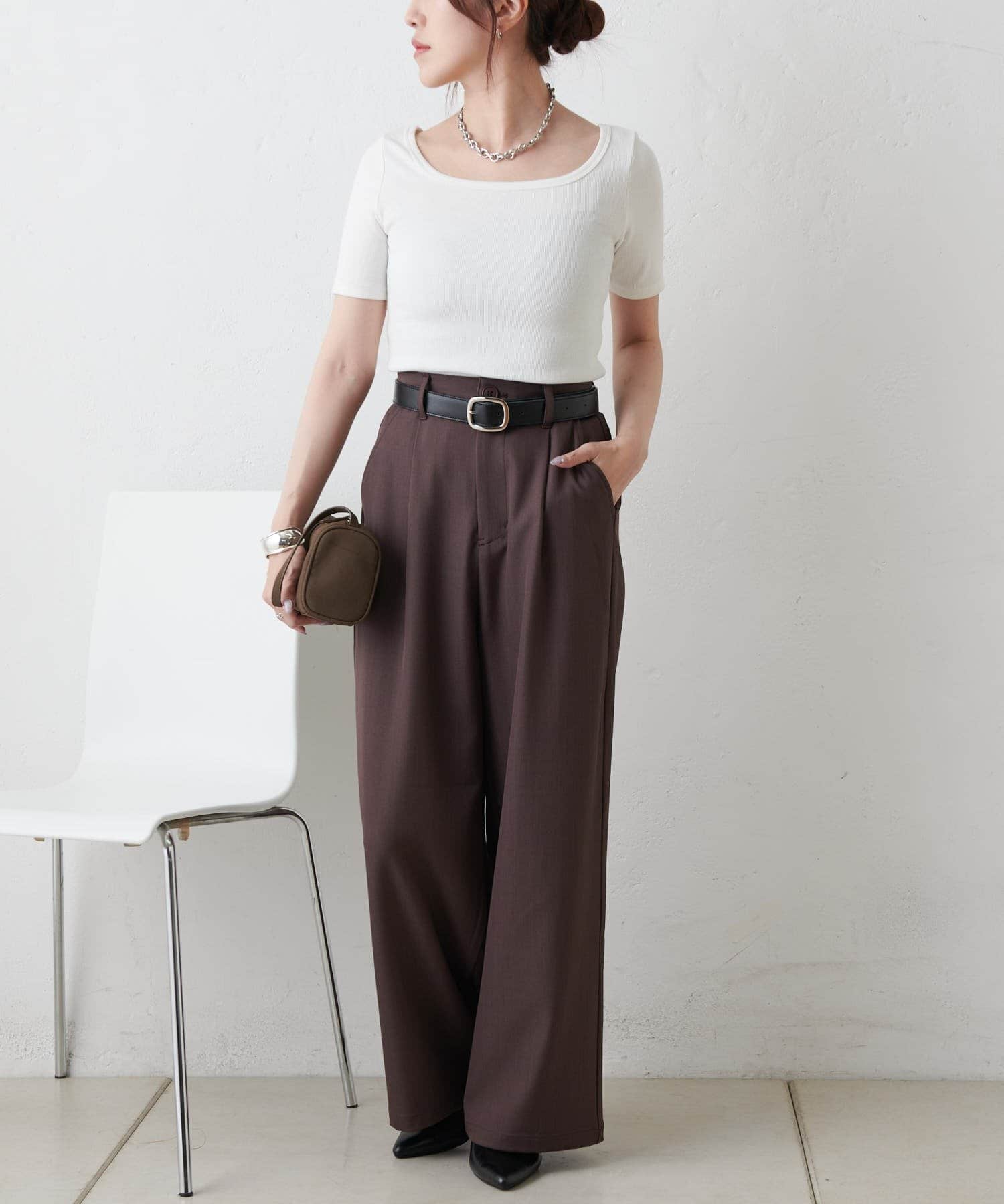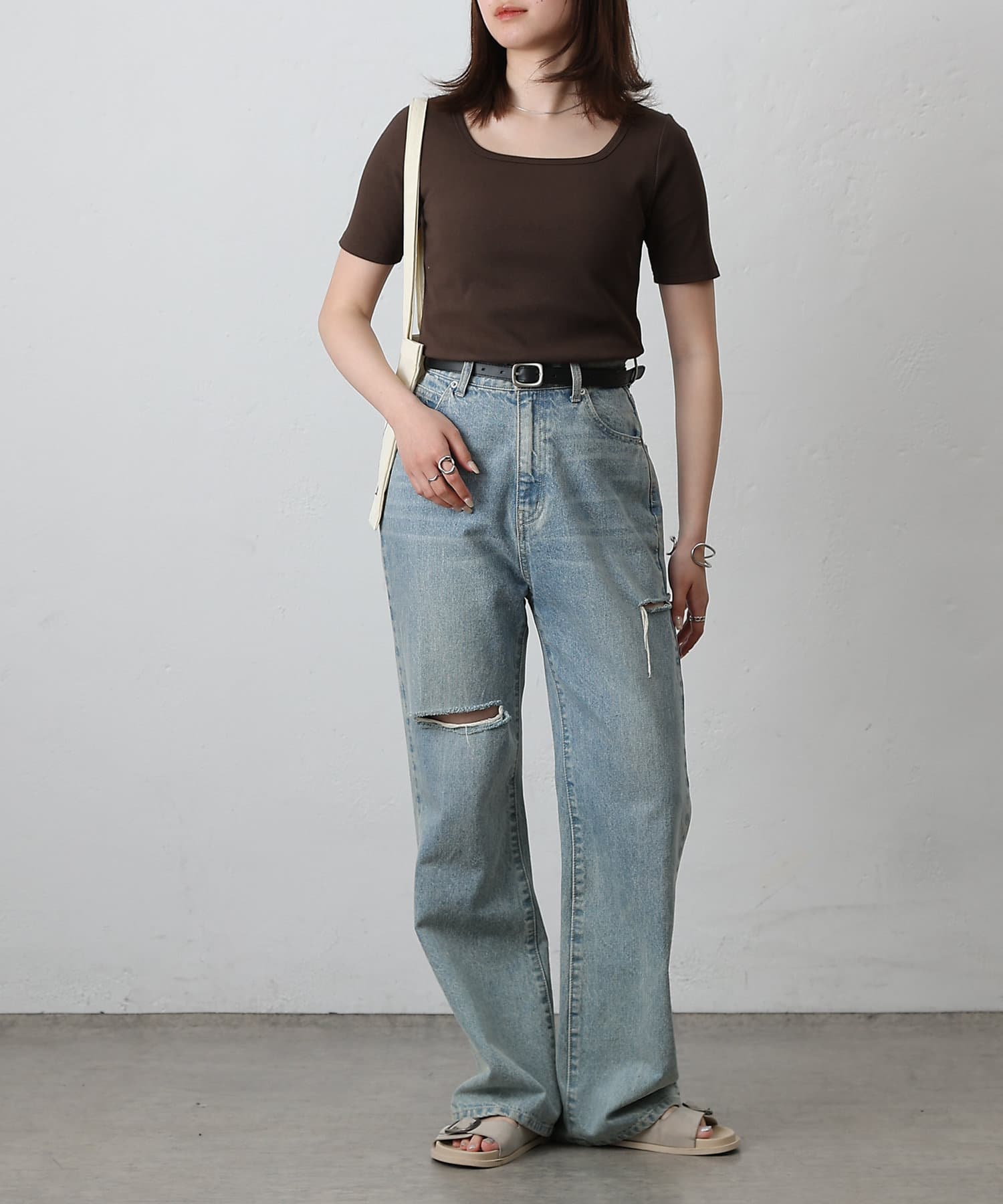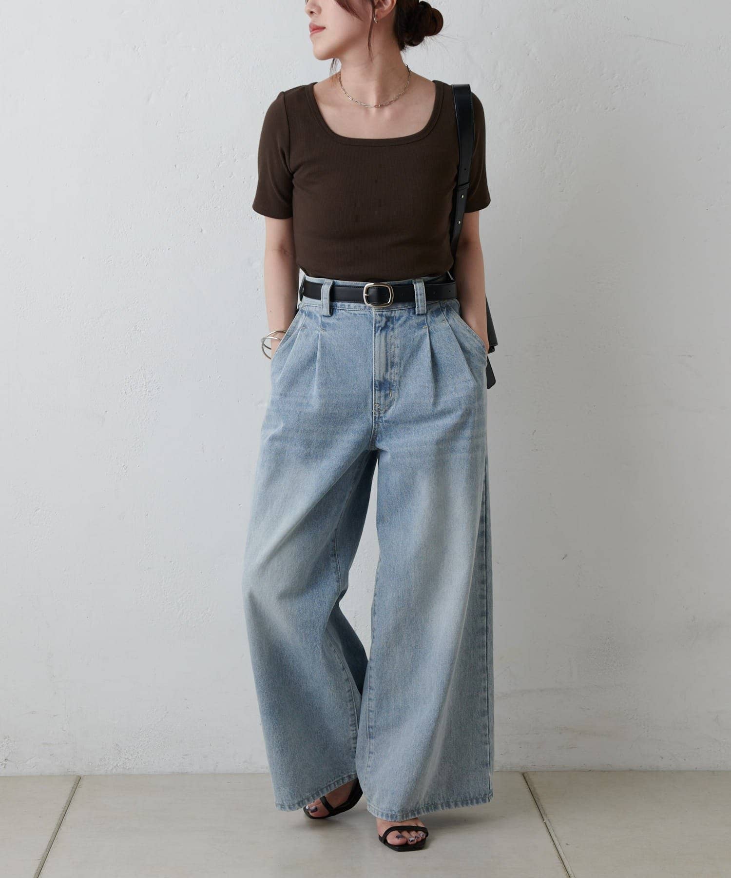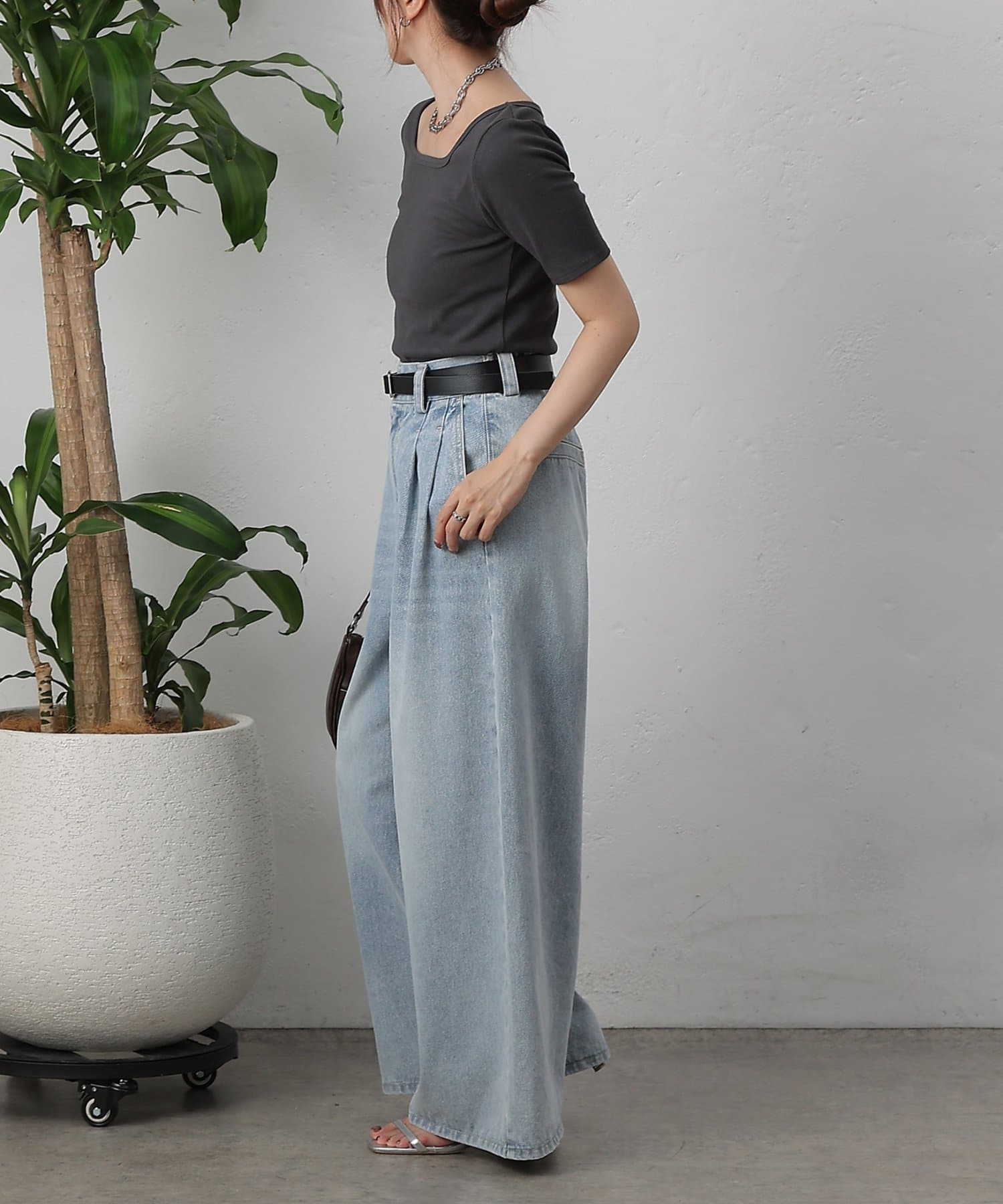 【BASIC LINE】スクエアネックリブ半袖プルオーバー
