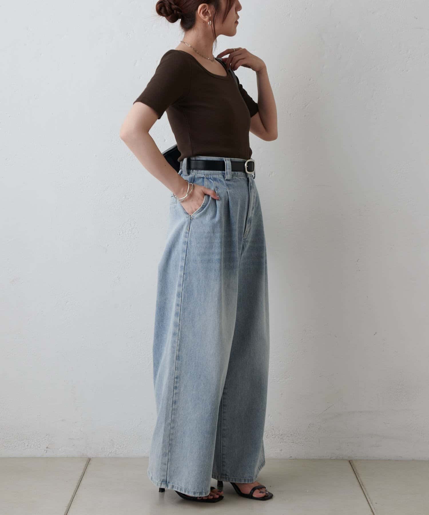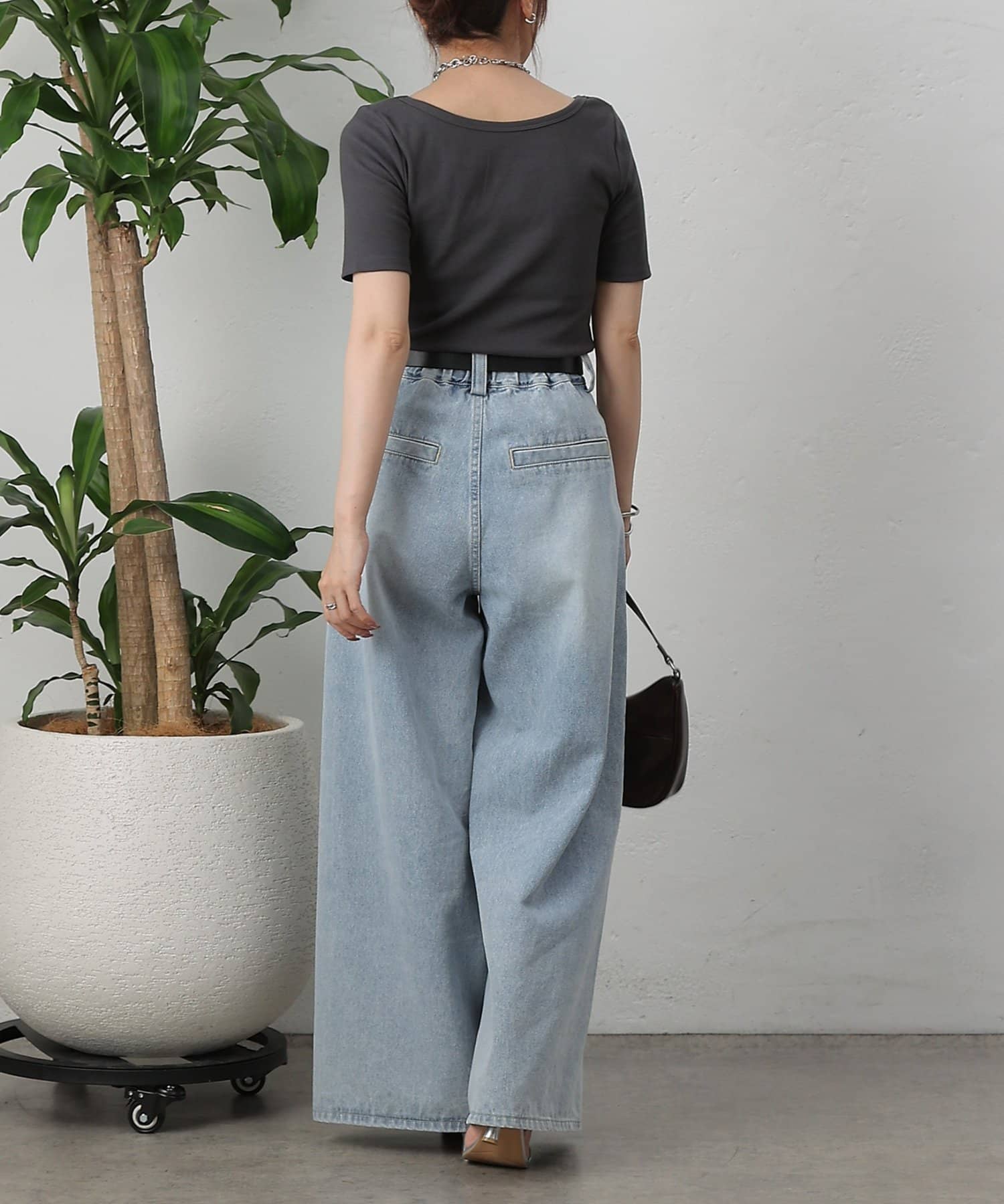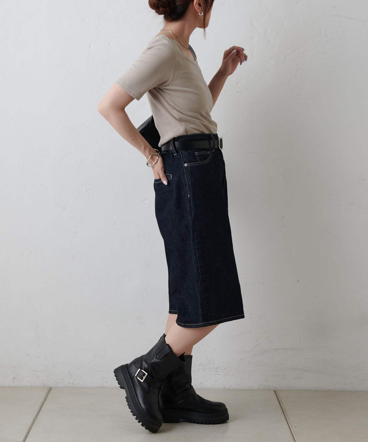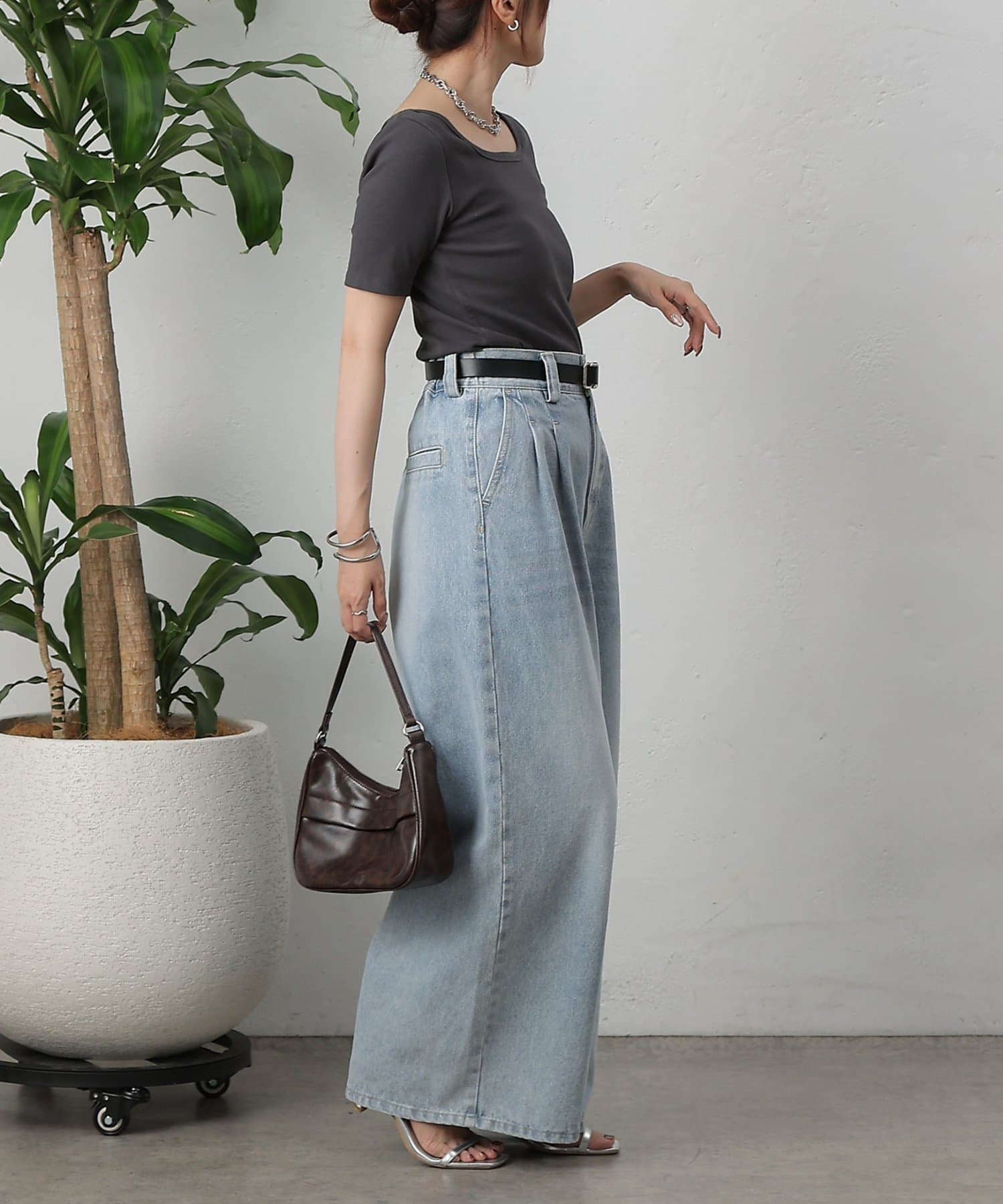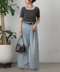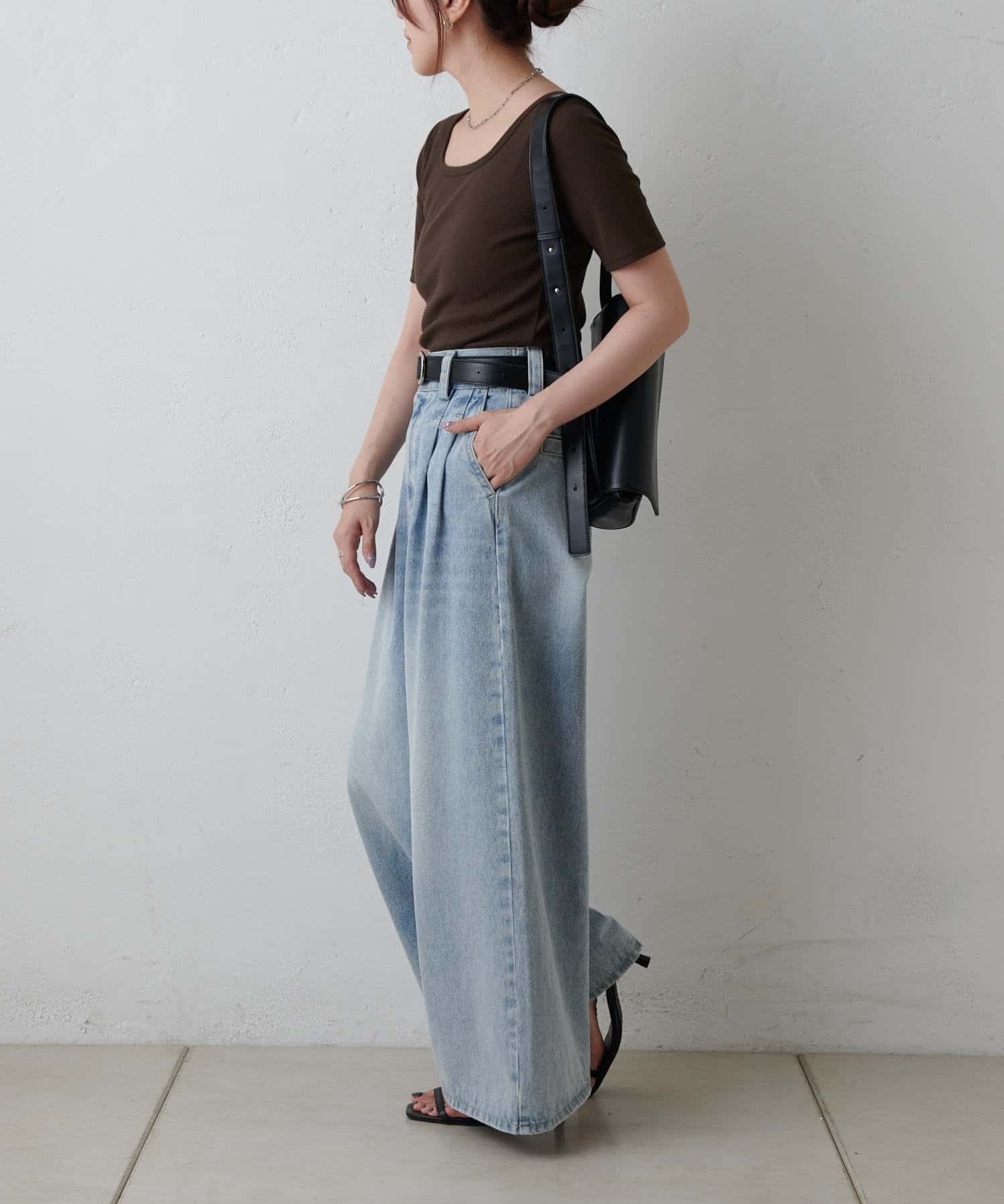 【BASIC LINE】スクエアネックリブ半袖プルオーバー