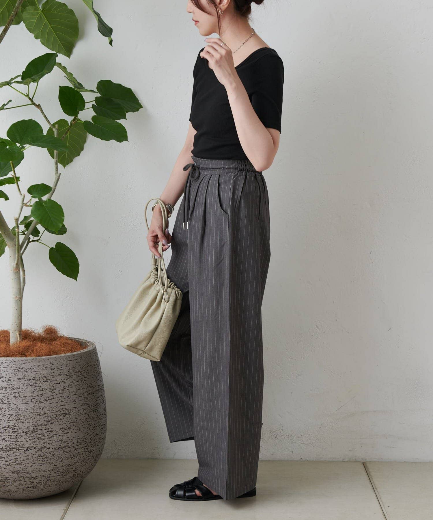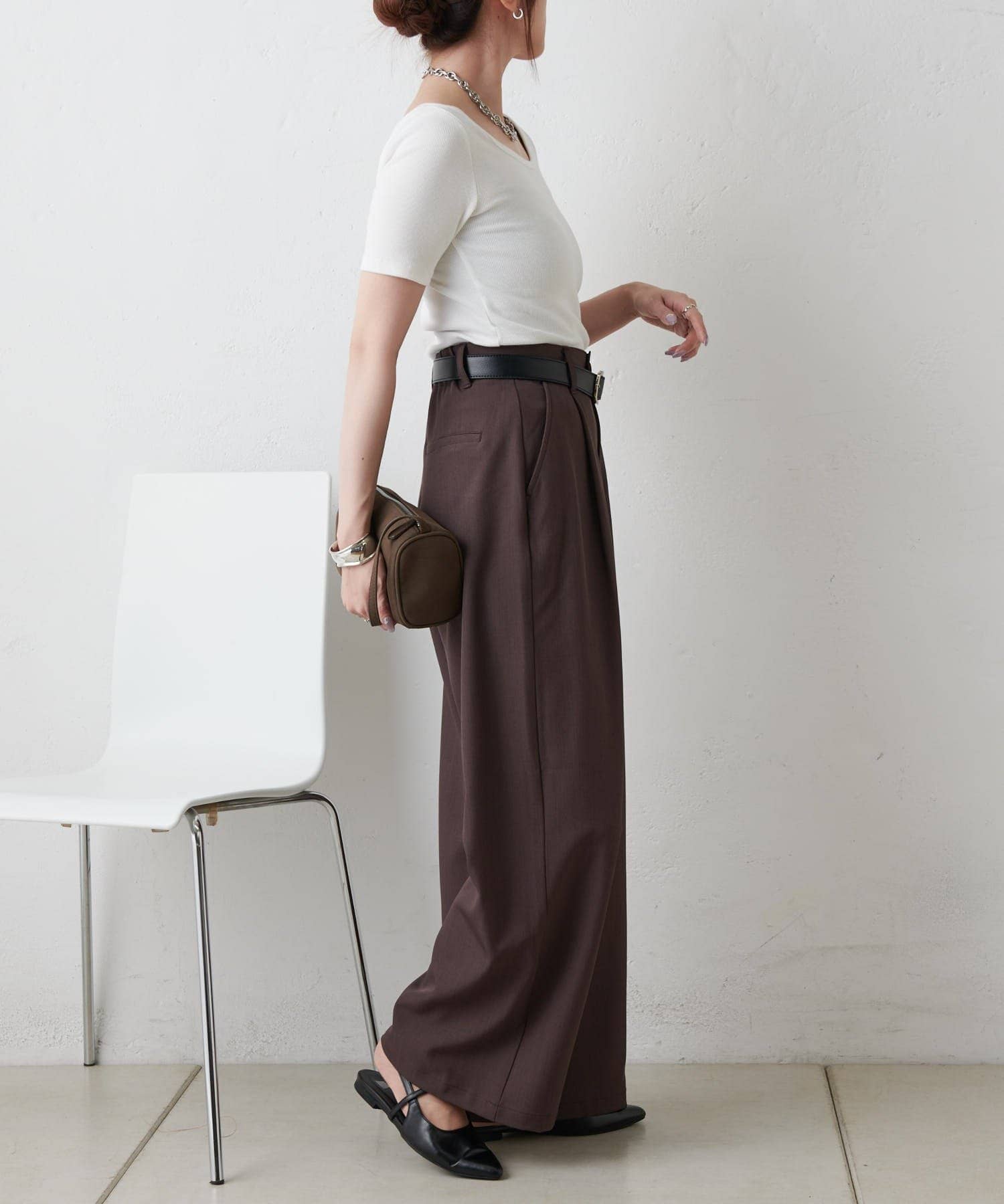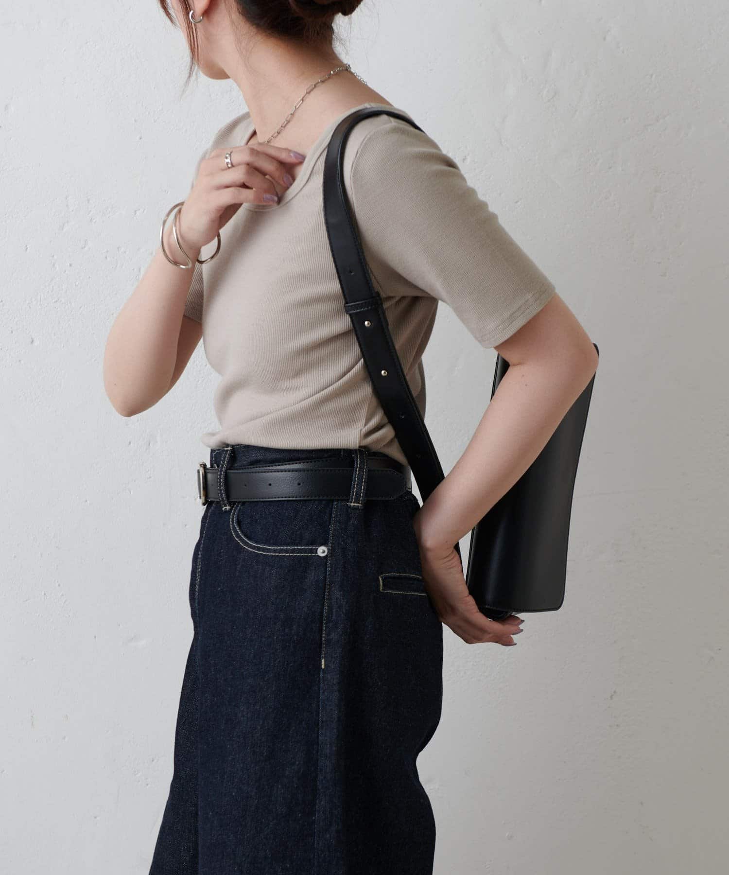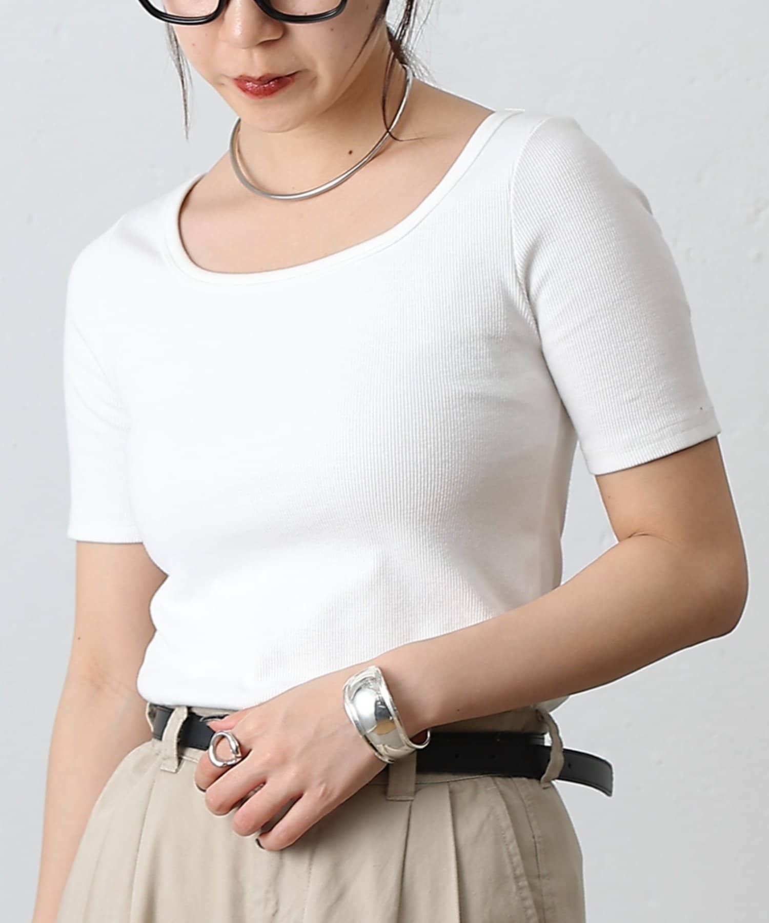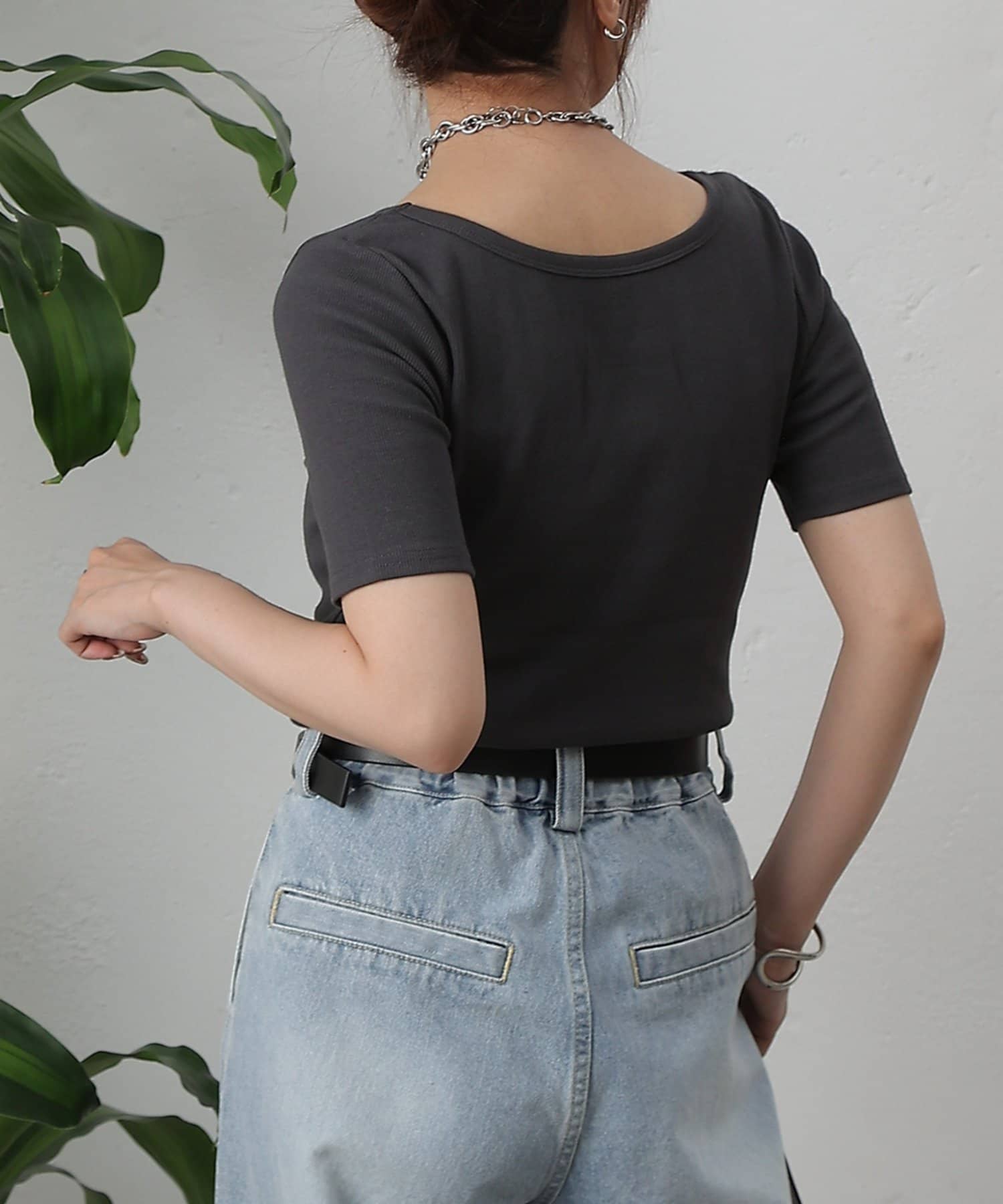 【デコルテが美しく見えるシンプルリブ半袖T】