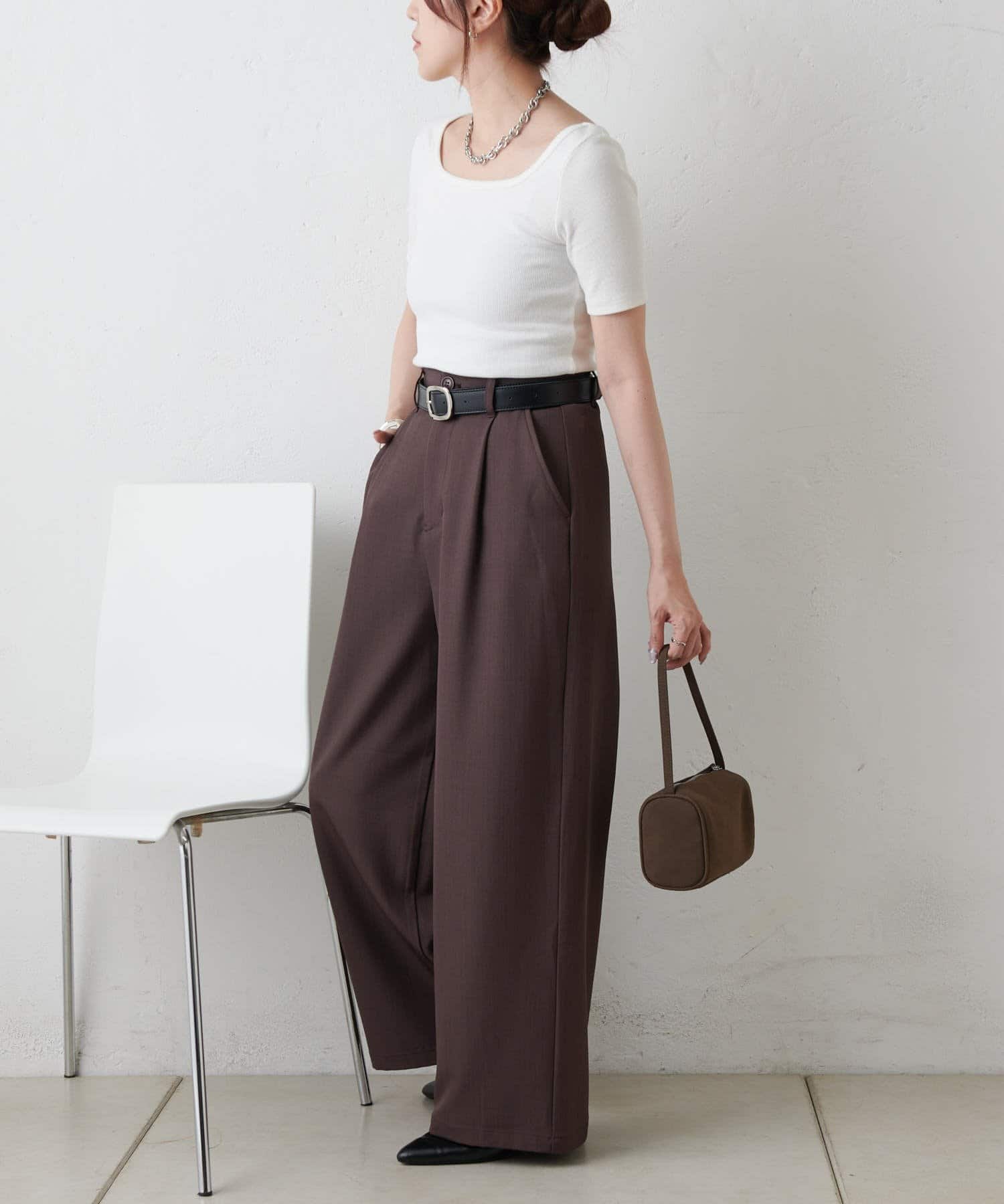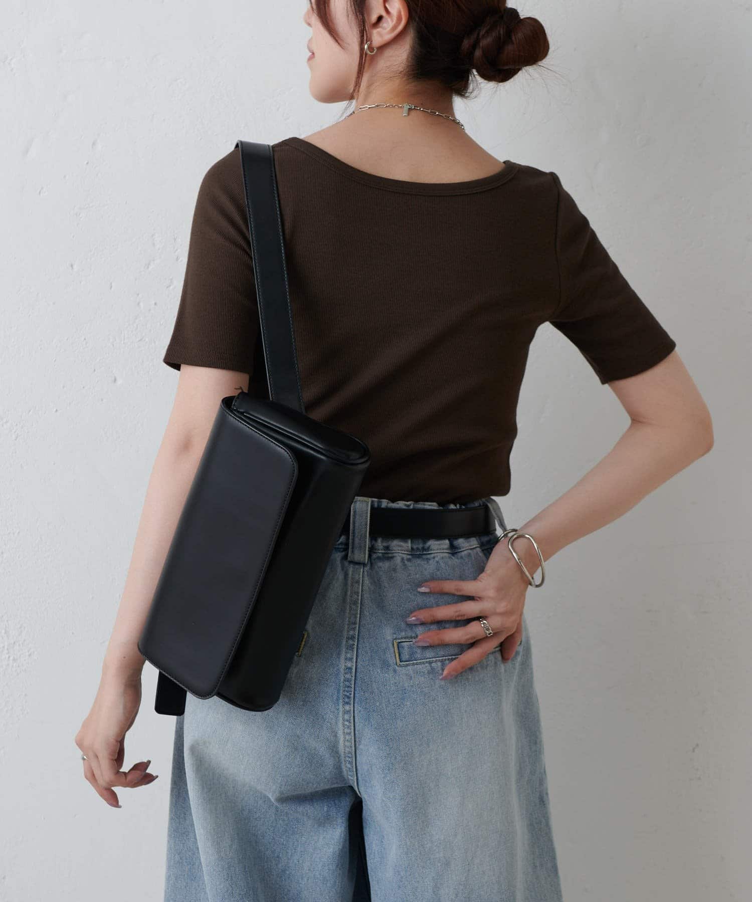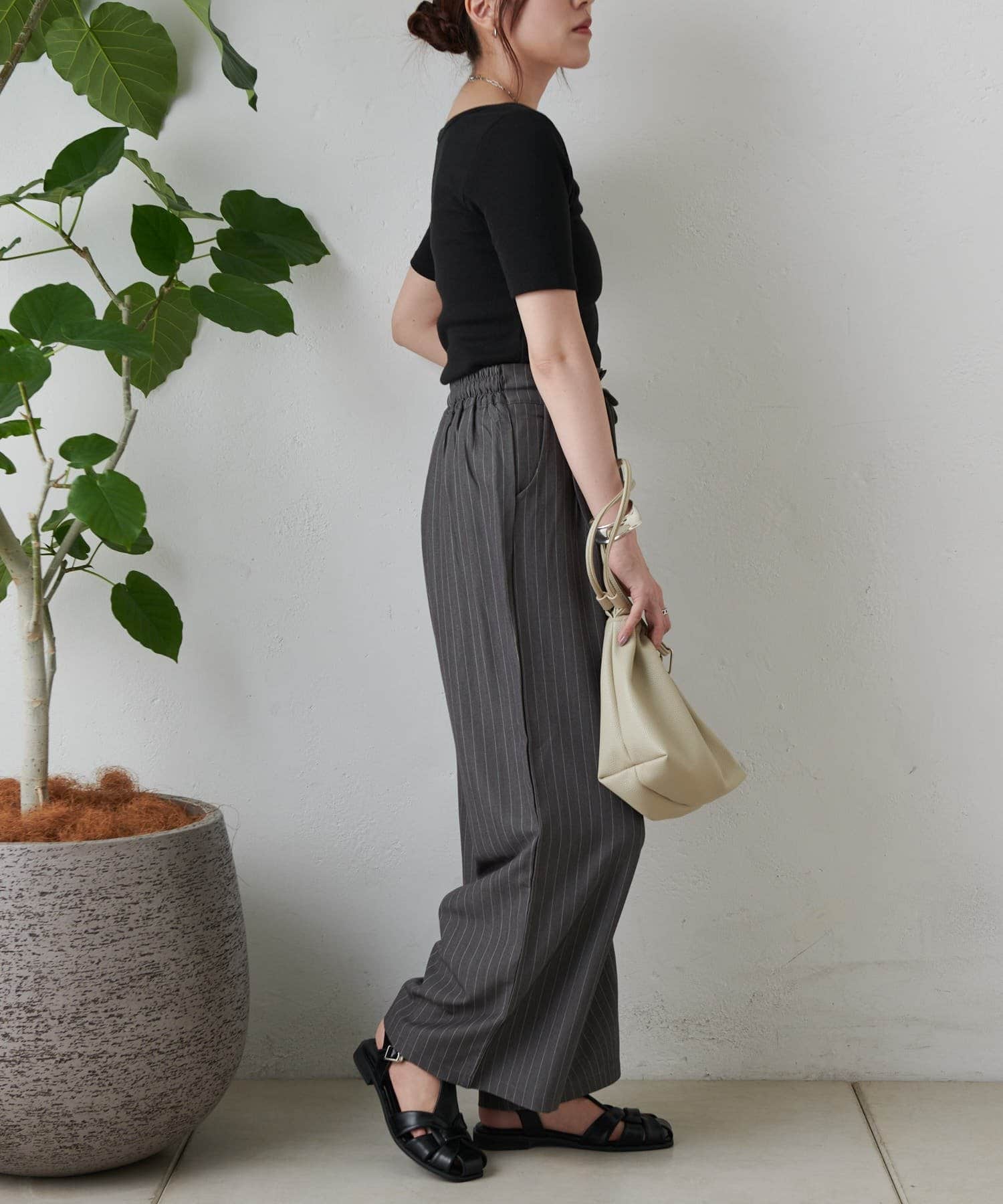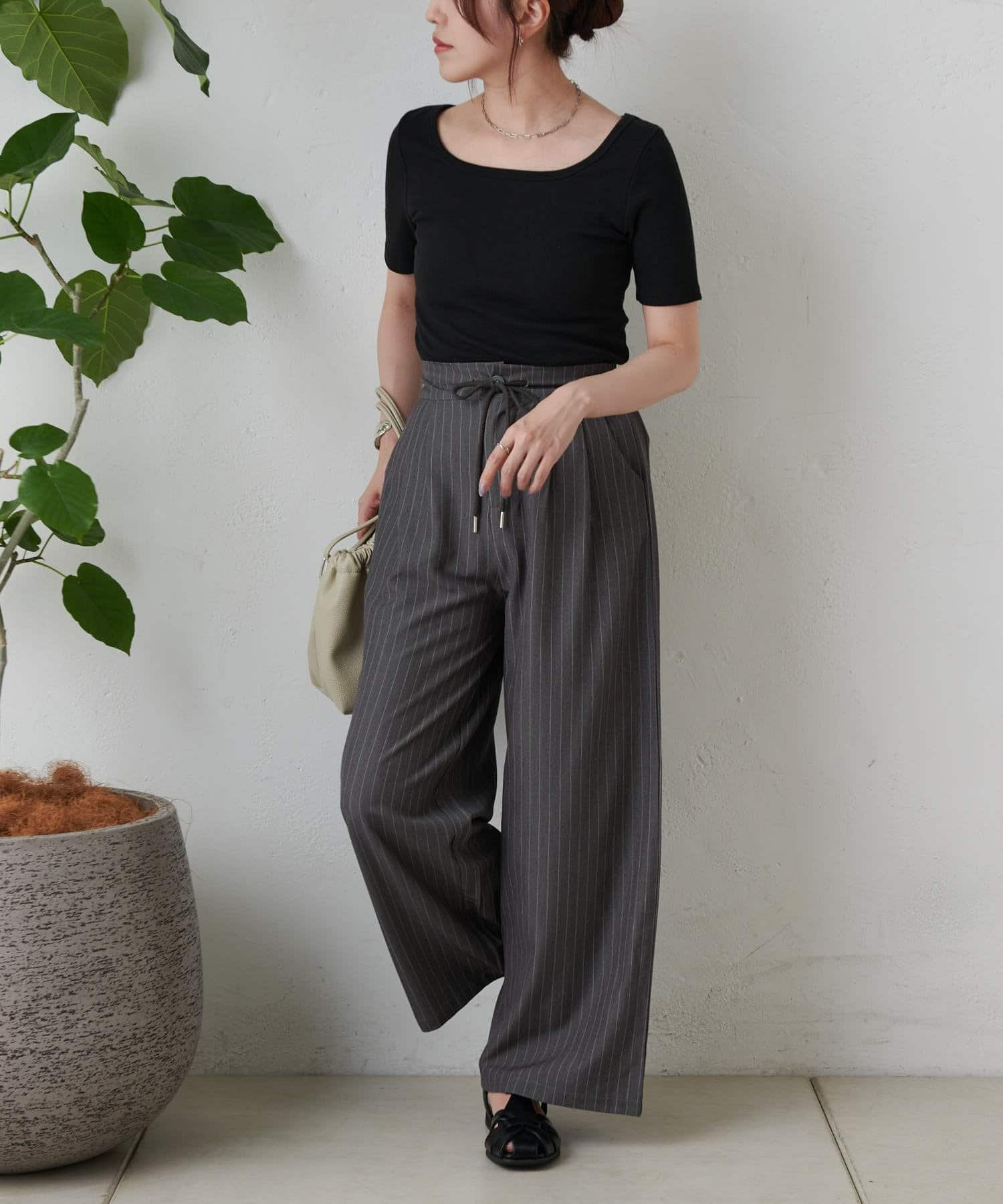 【デコルテが美しく見えるシンプルリブ半袖T】