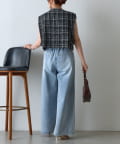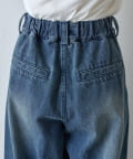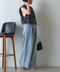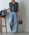 ゆったりとした太めのシルエットながらも、ウエストまわりにタックが入ることでメリハリが生まれ、すっきりとした印象に仕上がっています。