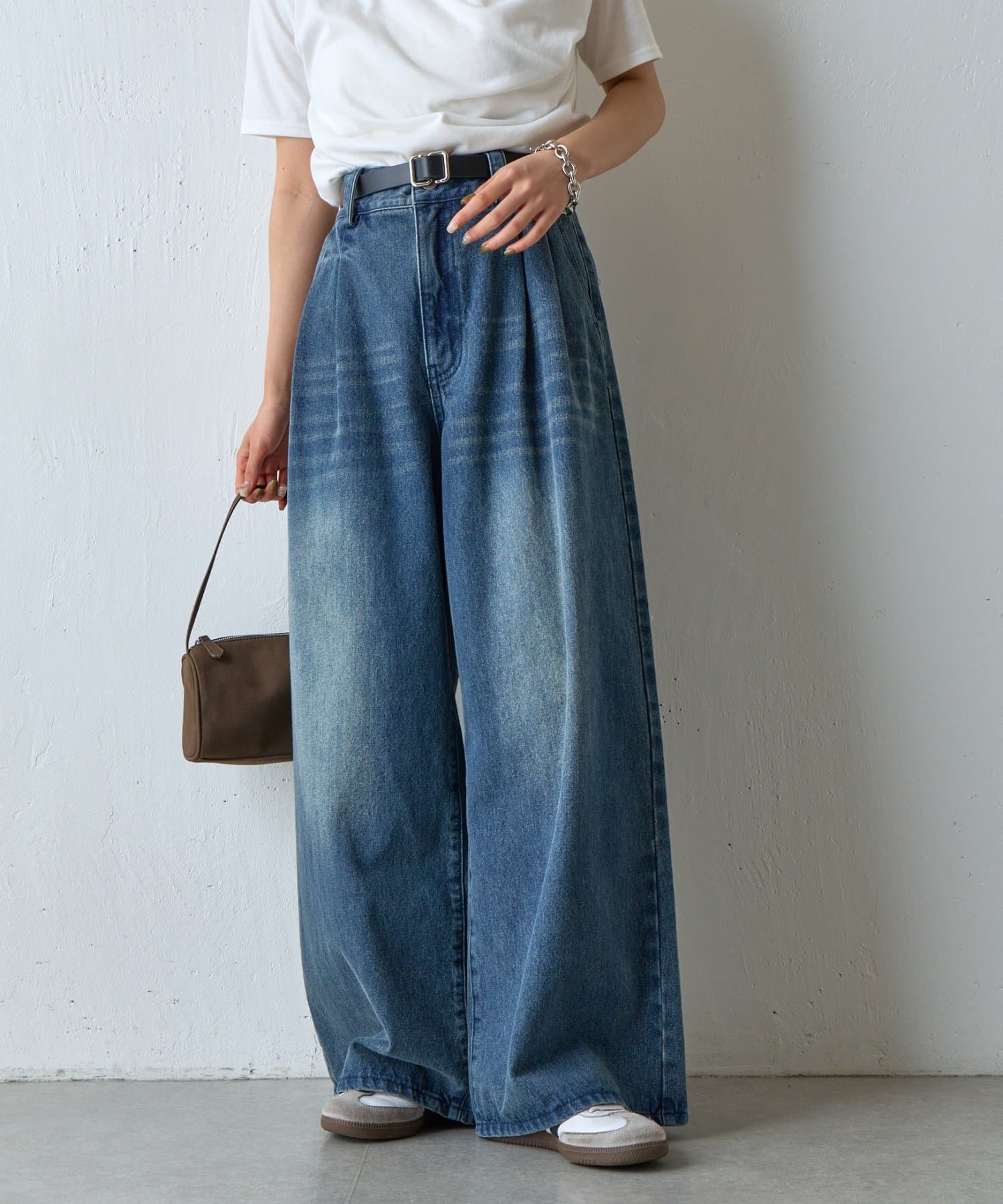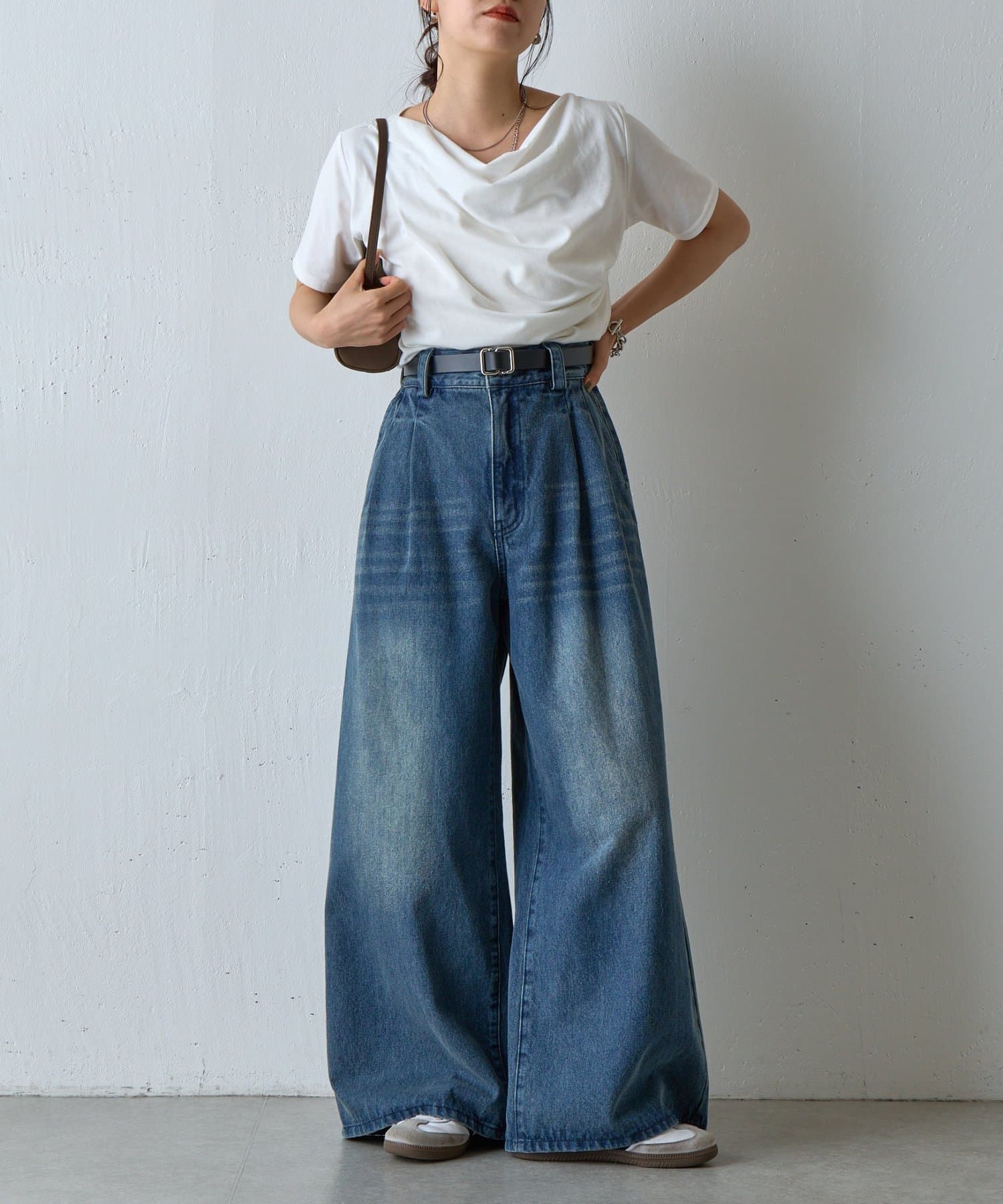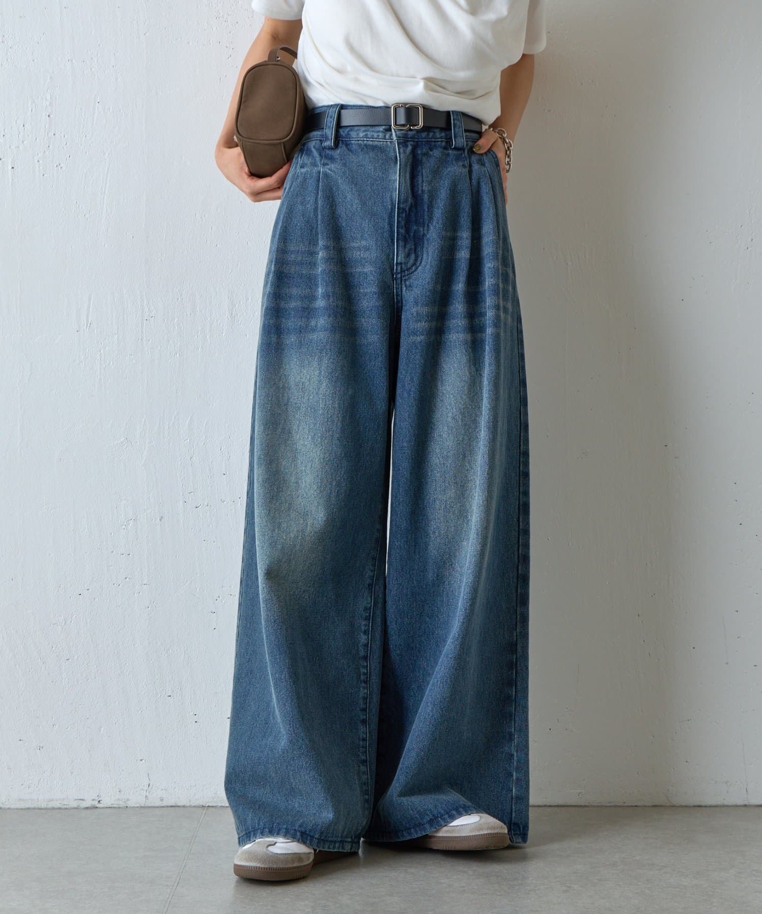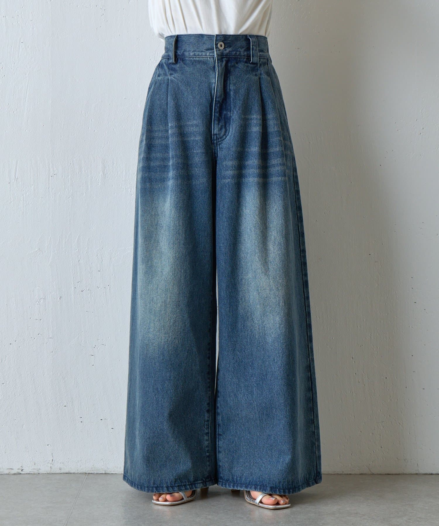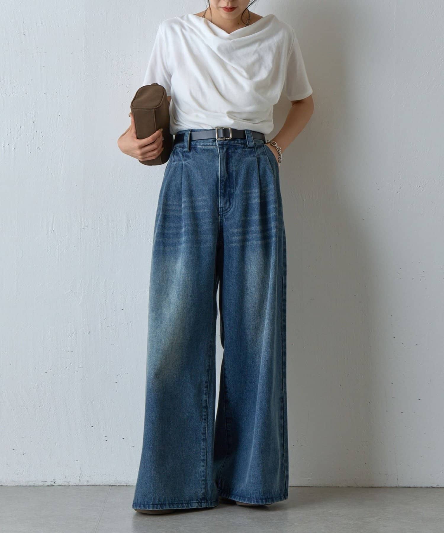 大胆なワイドシルエットが特徴のスーパーワイドデニム。