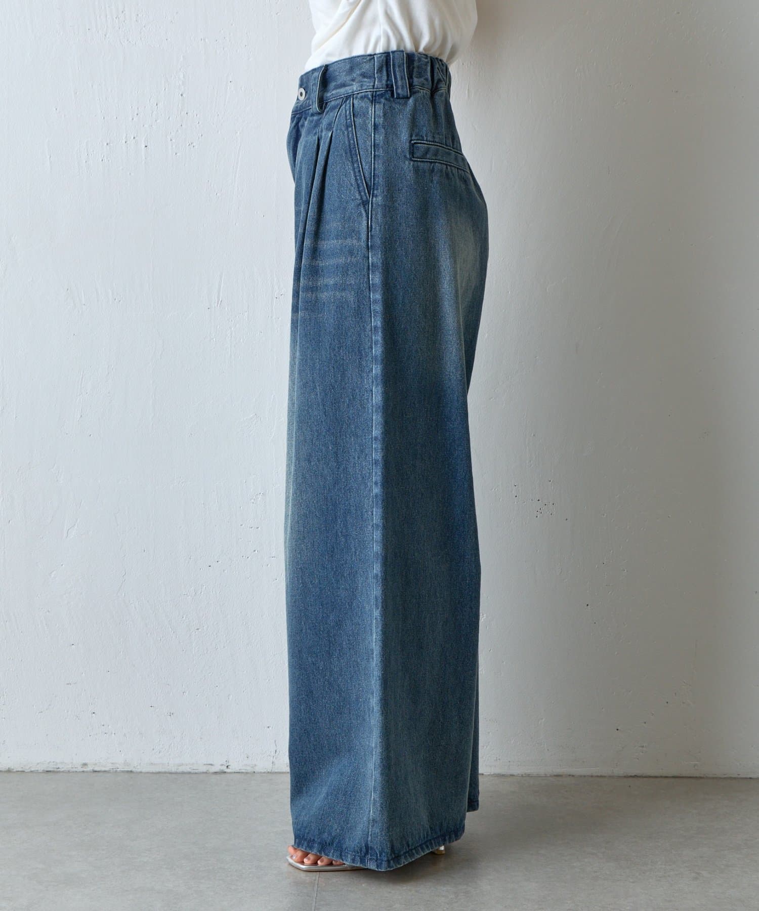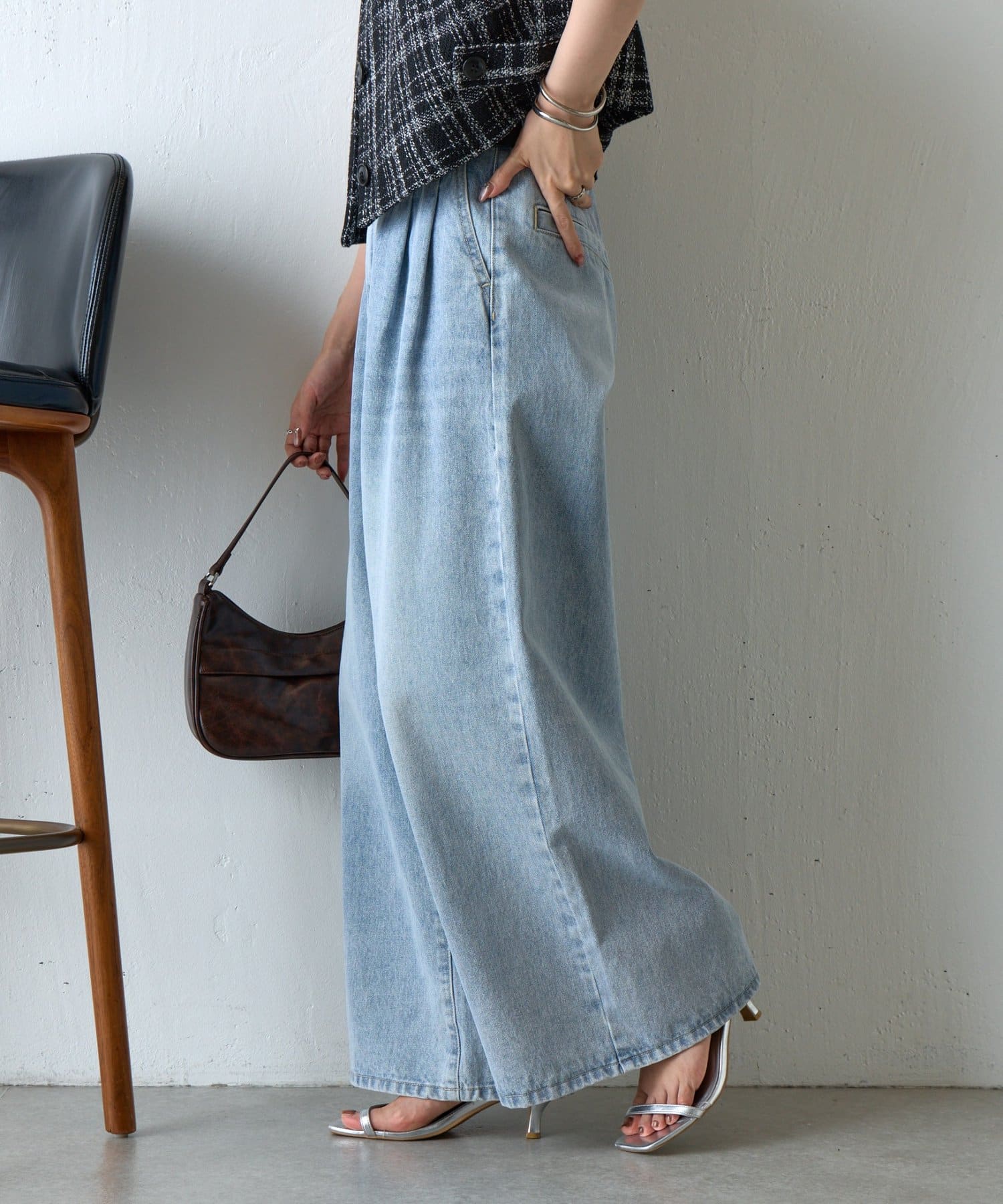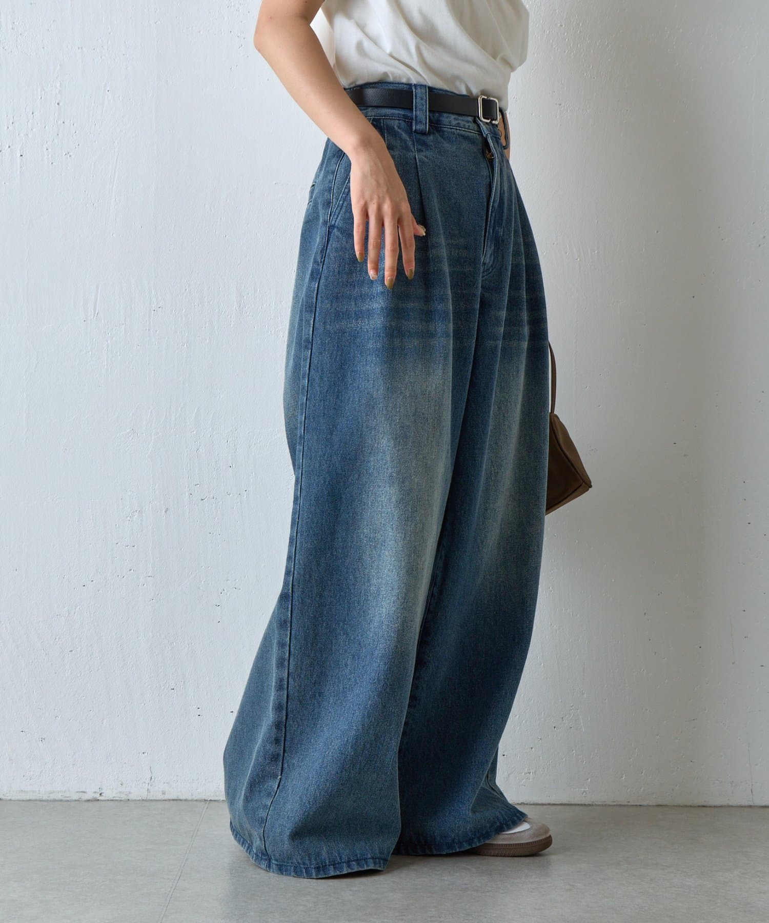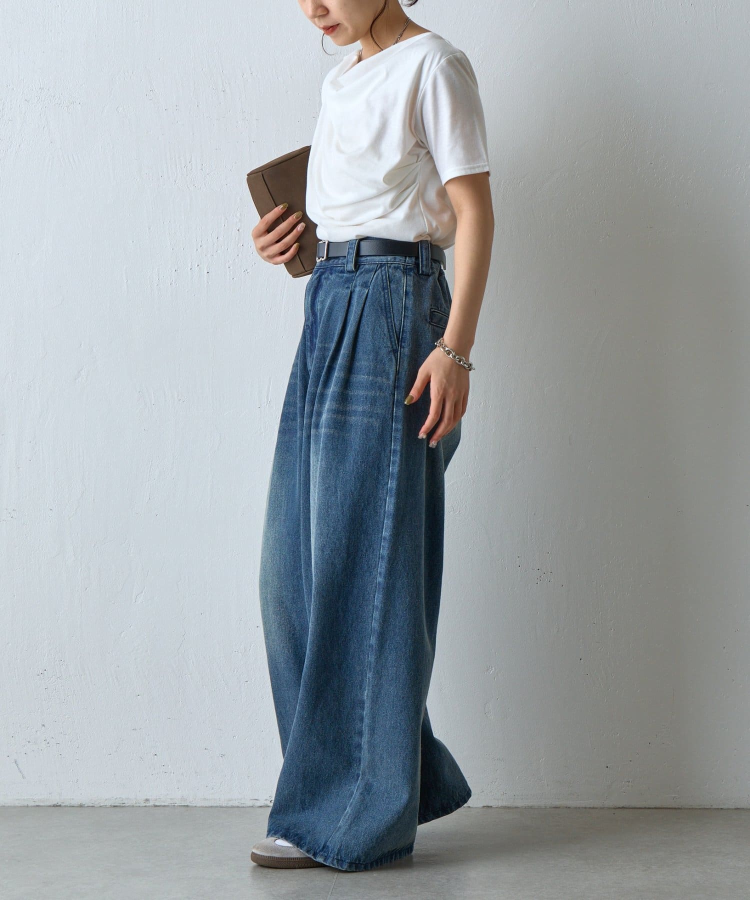 大胆なワイドシルエットが特徴のスーパーワイドデニム。