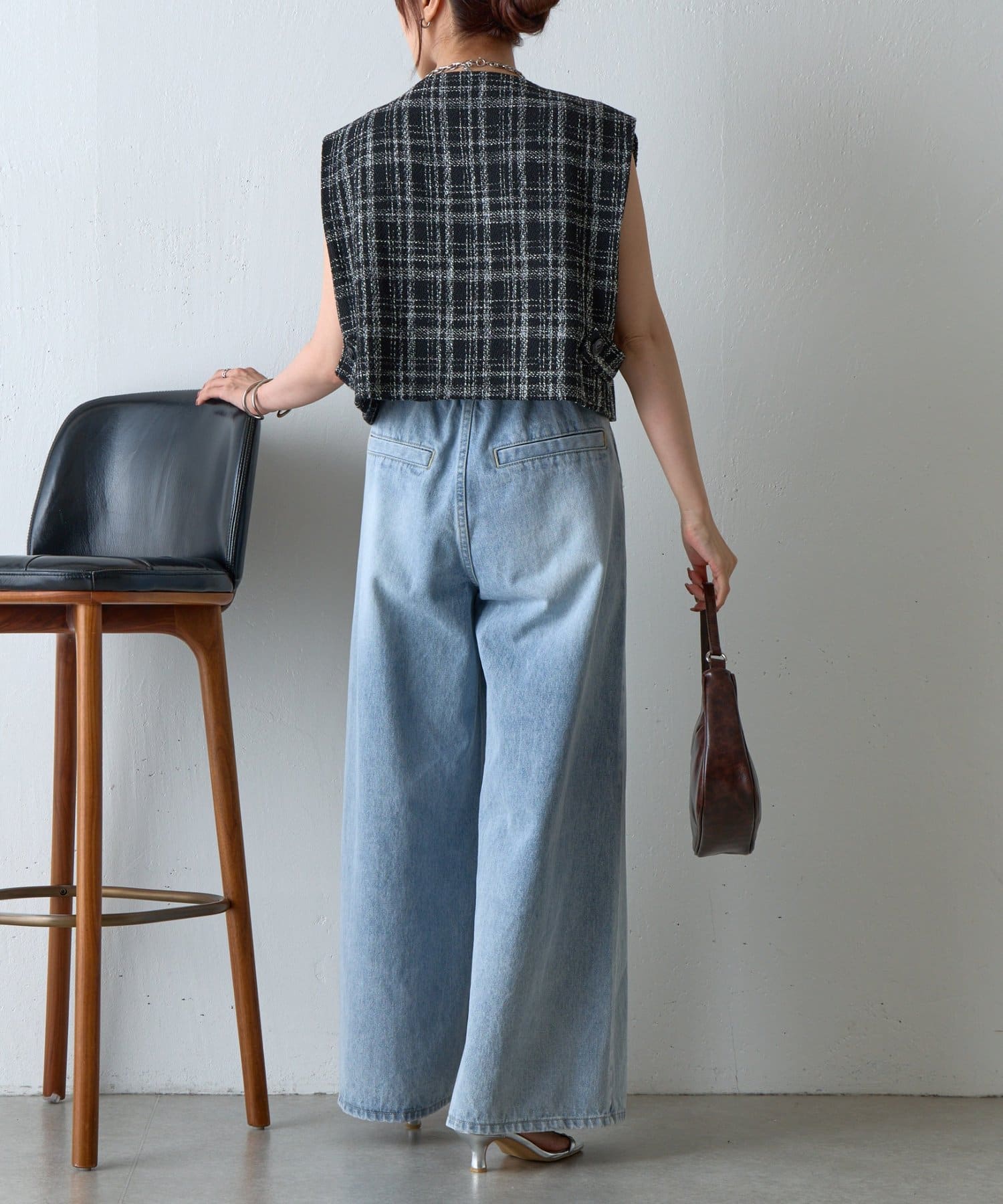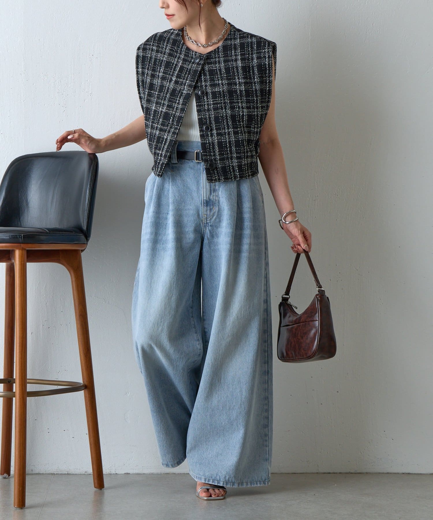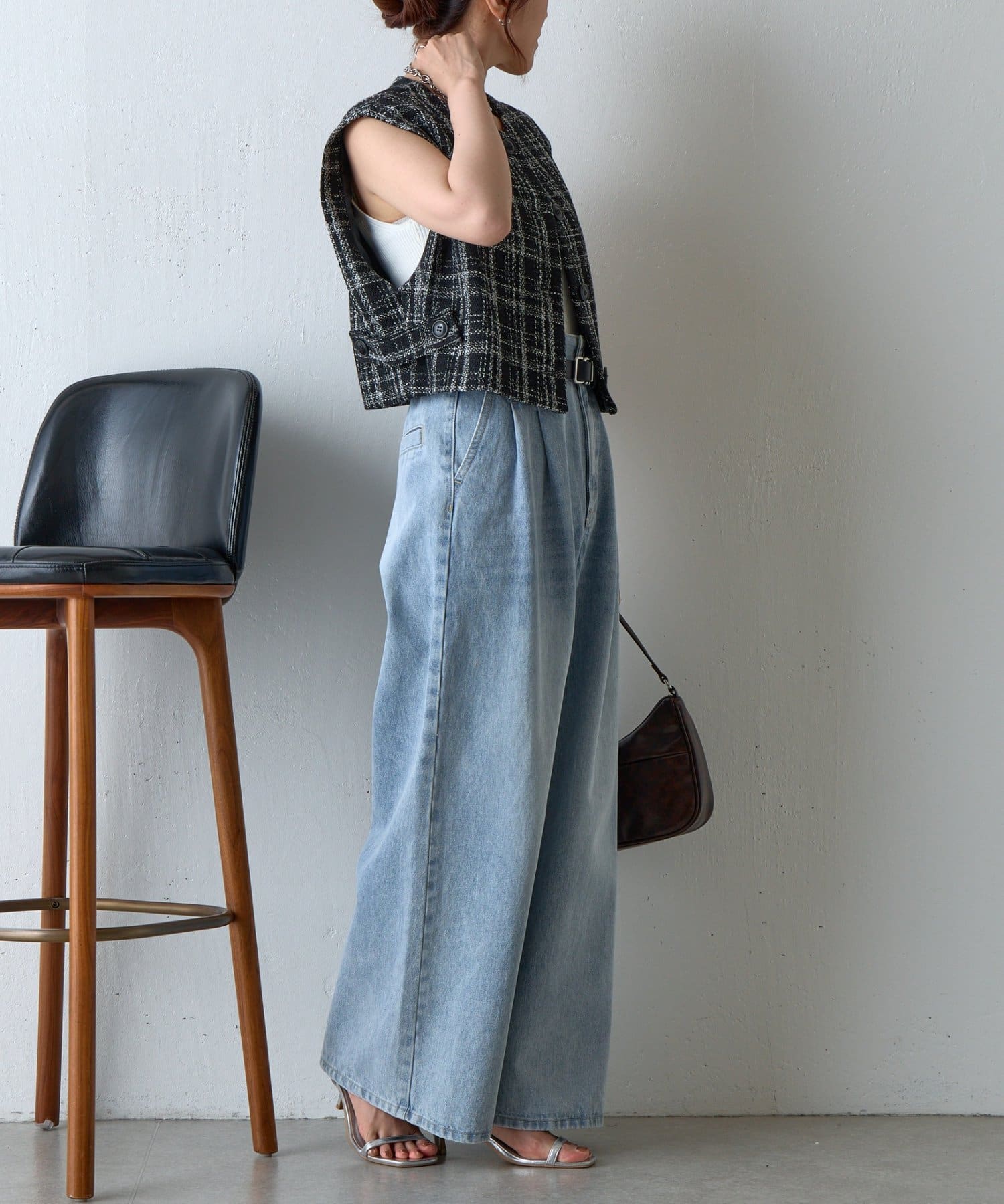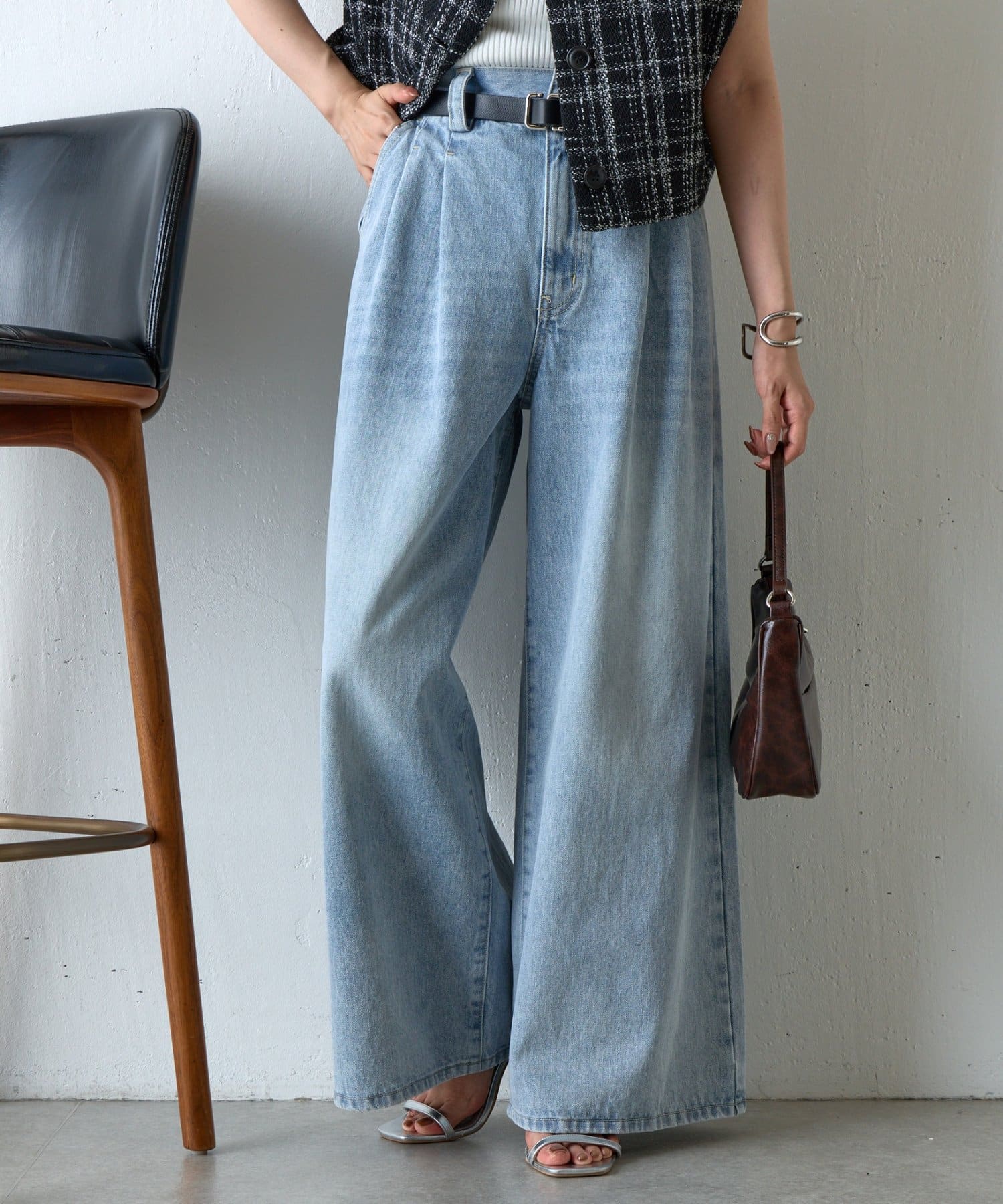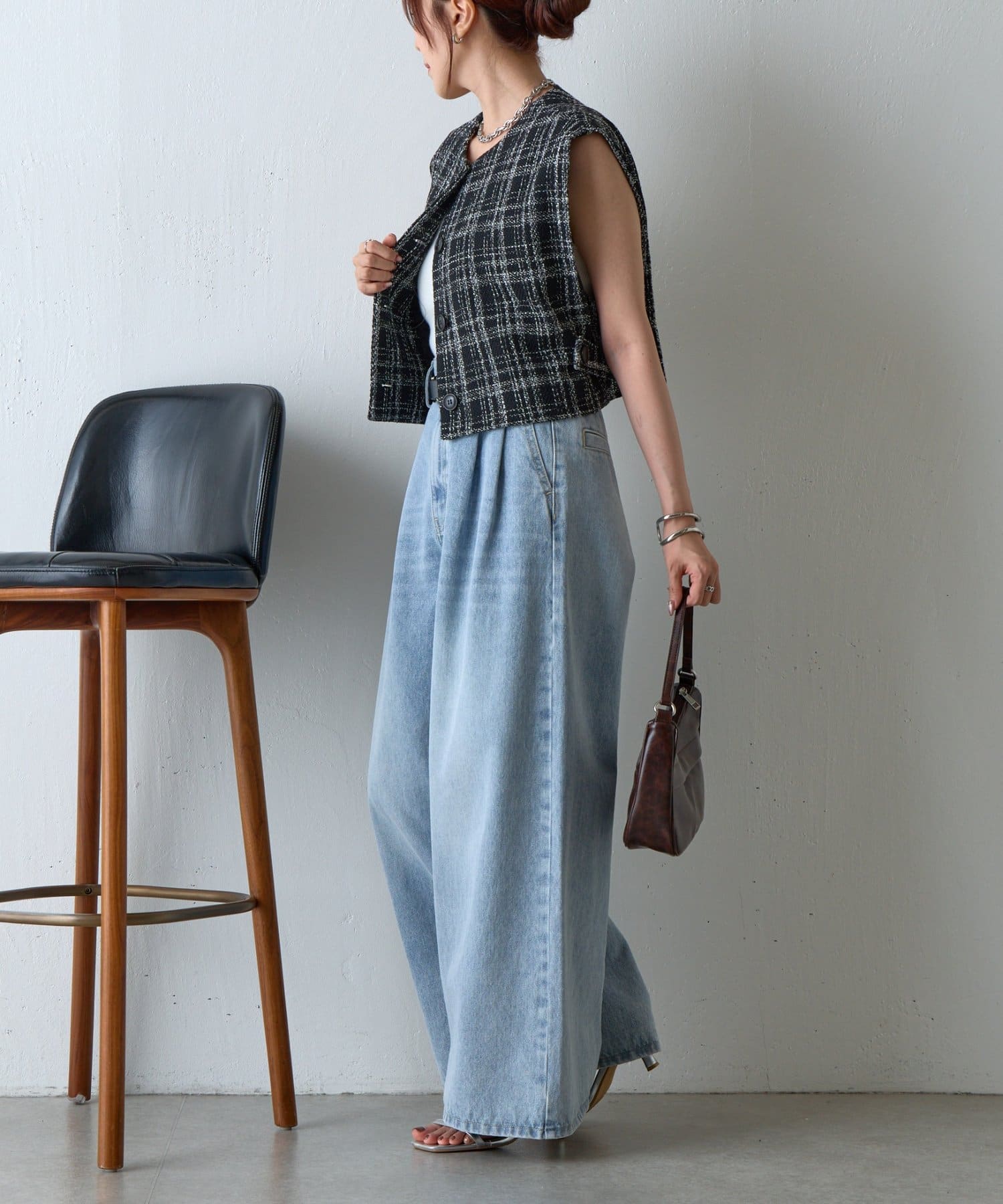 大胆なワイドシルエットが特徴のスーパーワイドデニム。