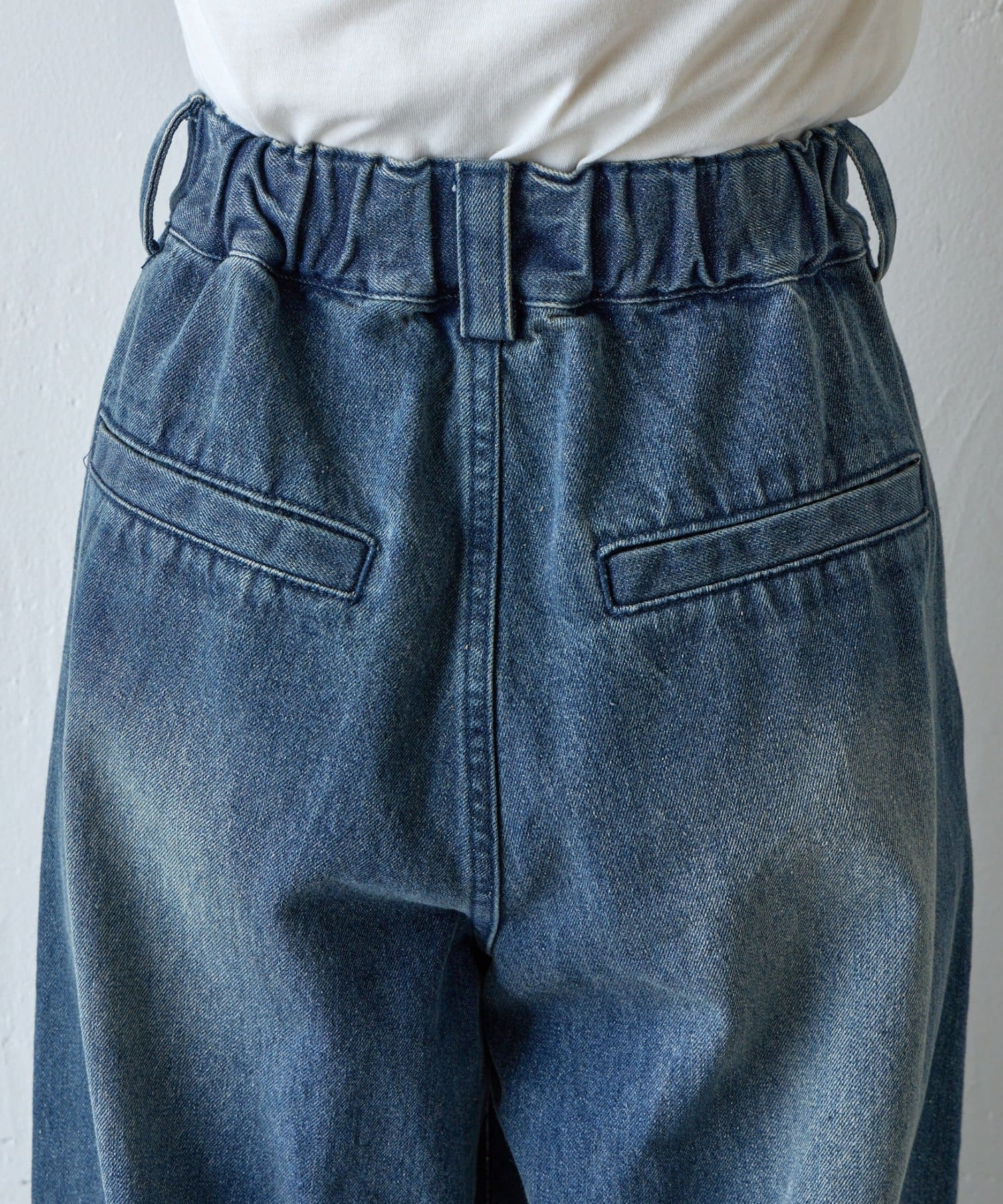 しっかりとしたデニム素材ながらも動きやすく、リラックスした穿き心地が魅力。