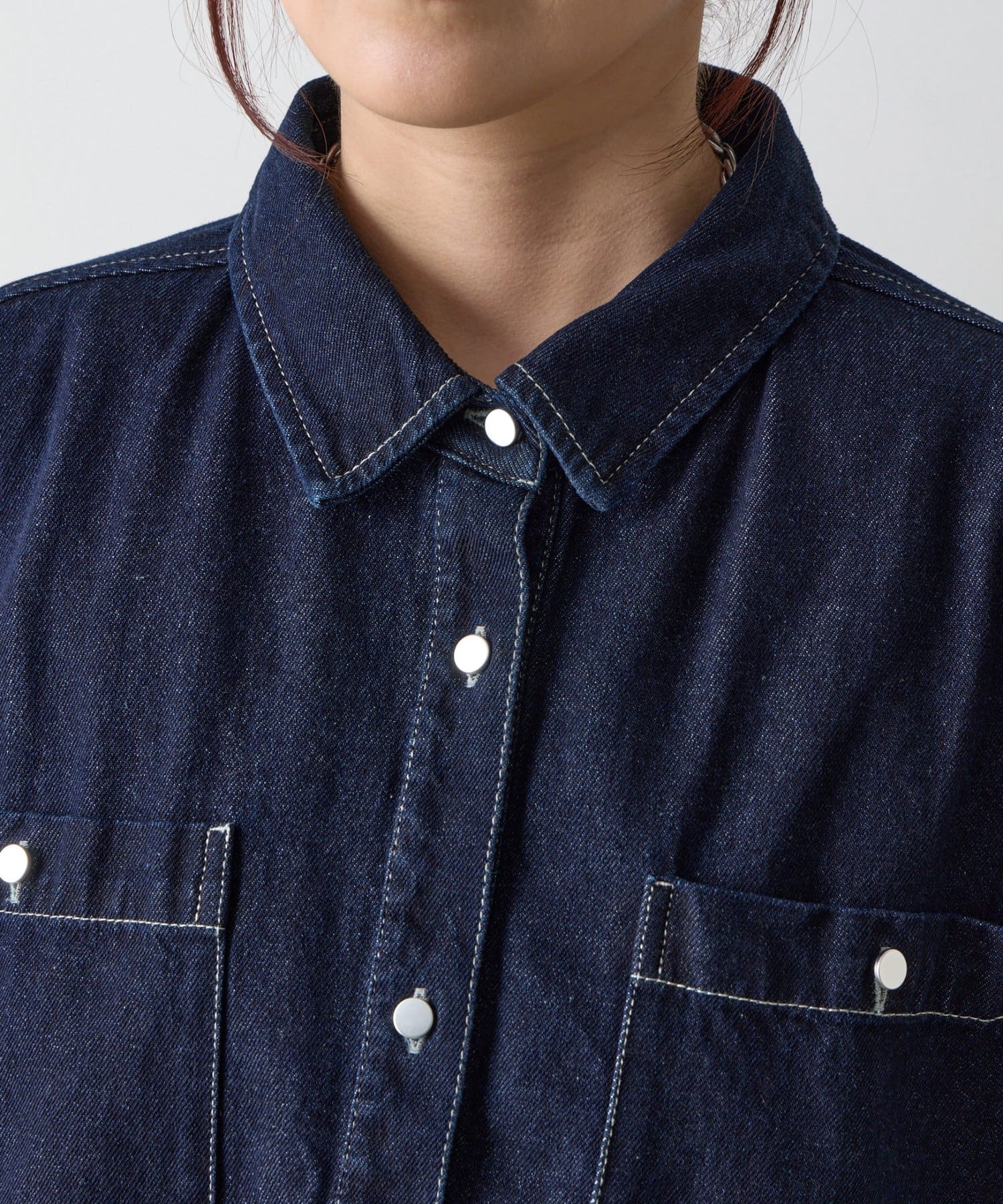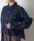 デニム素材でありながら、軽やかでしなやかな着心地が魅力の8ozデニムクロップドシャツです。
