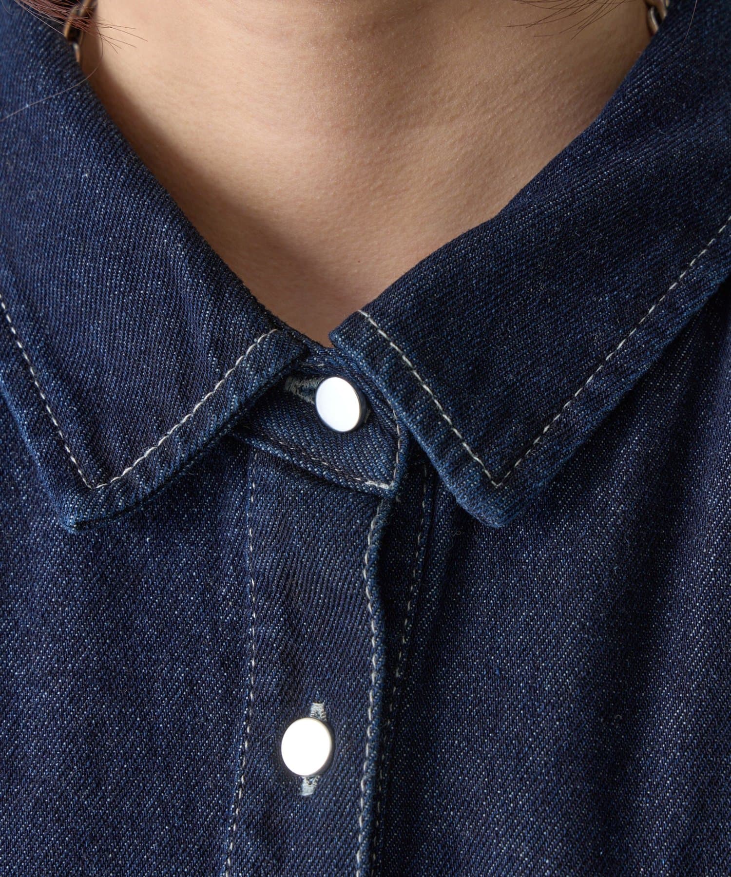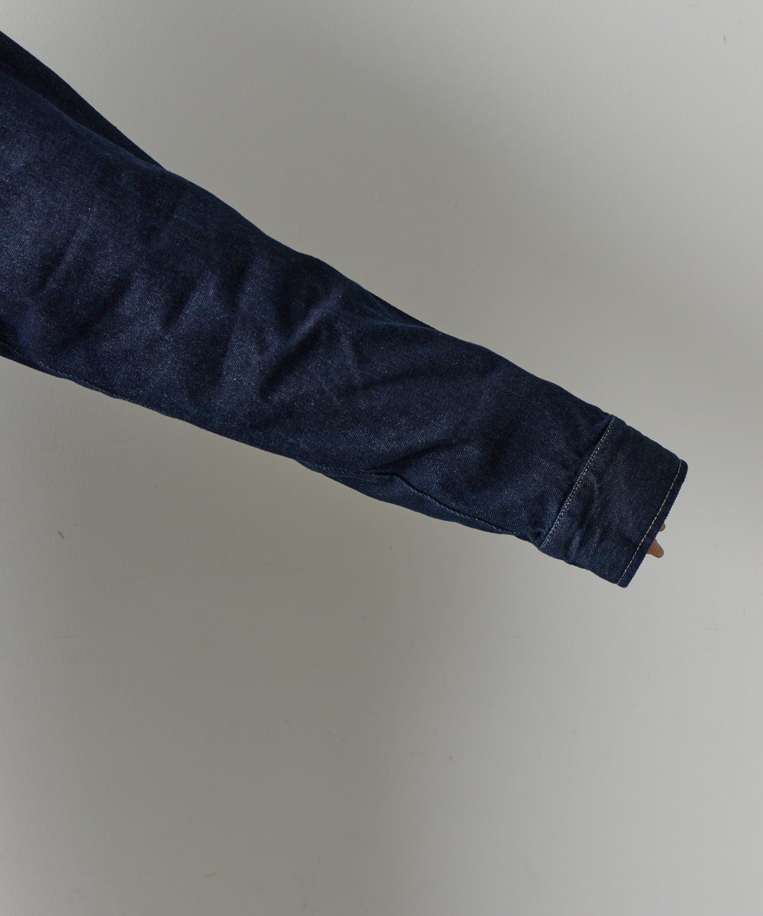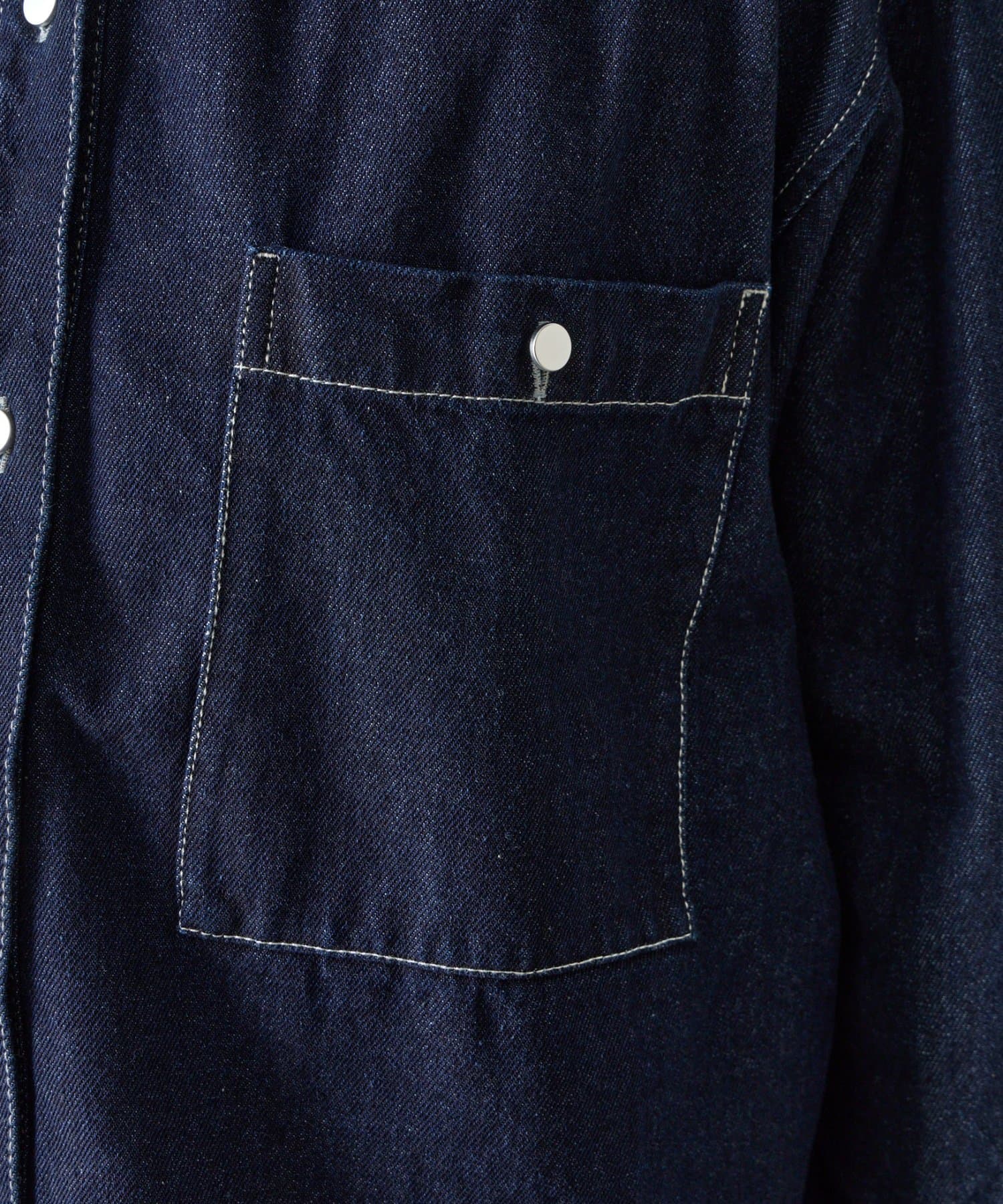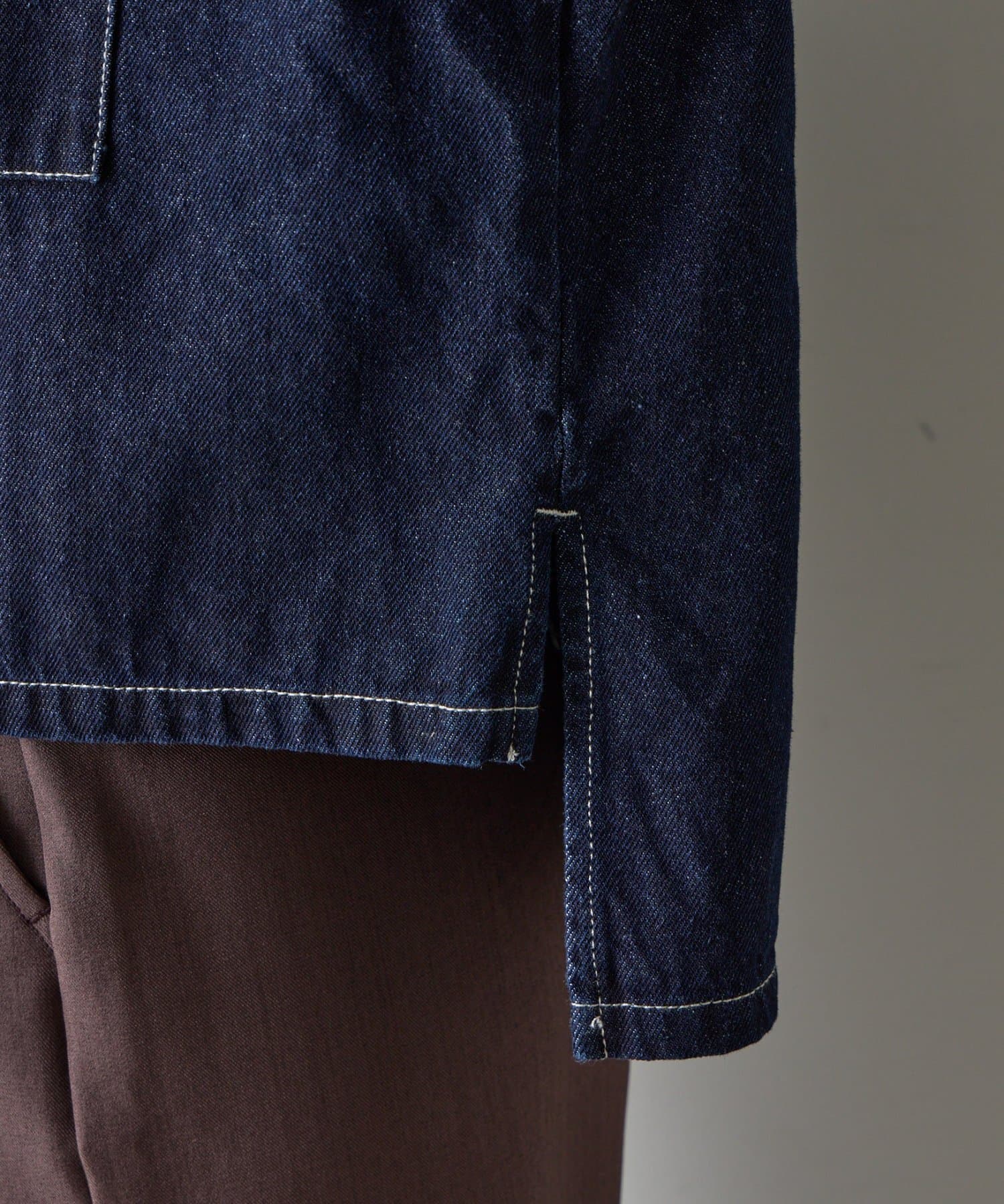適度なハリと落ち感を持つ8オンスのライトオンスデニムを使用し、シャツとしても羽織りとしても着こなしやすいアイテムになっています。