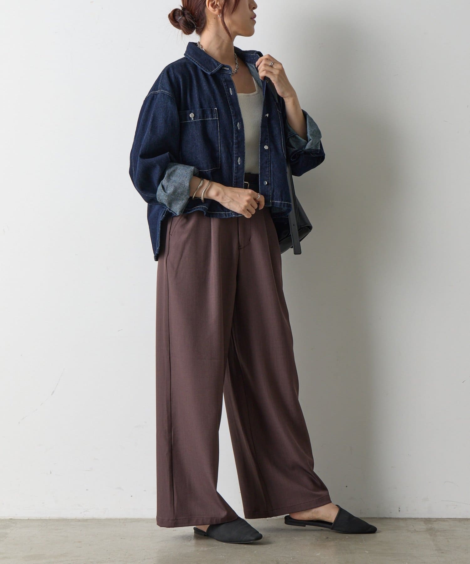 ワイドパンツやカーゴパンツ、スラックスなど幅広いボトムと相性が良く、旬のスタイルを簡単に演出できます。