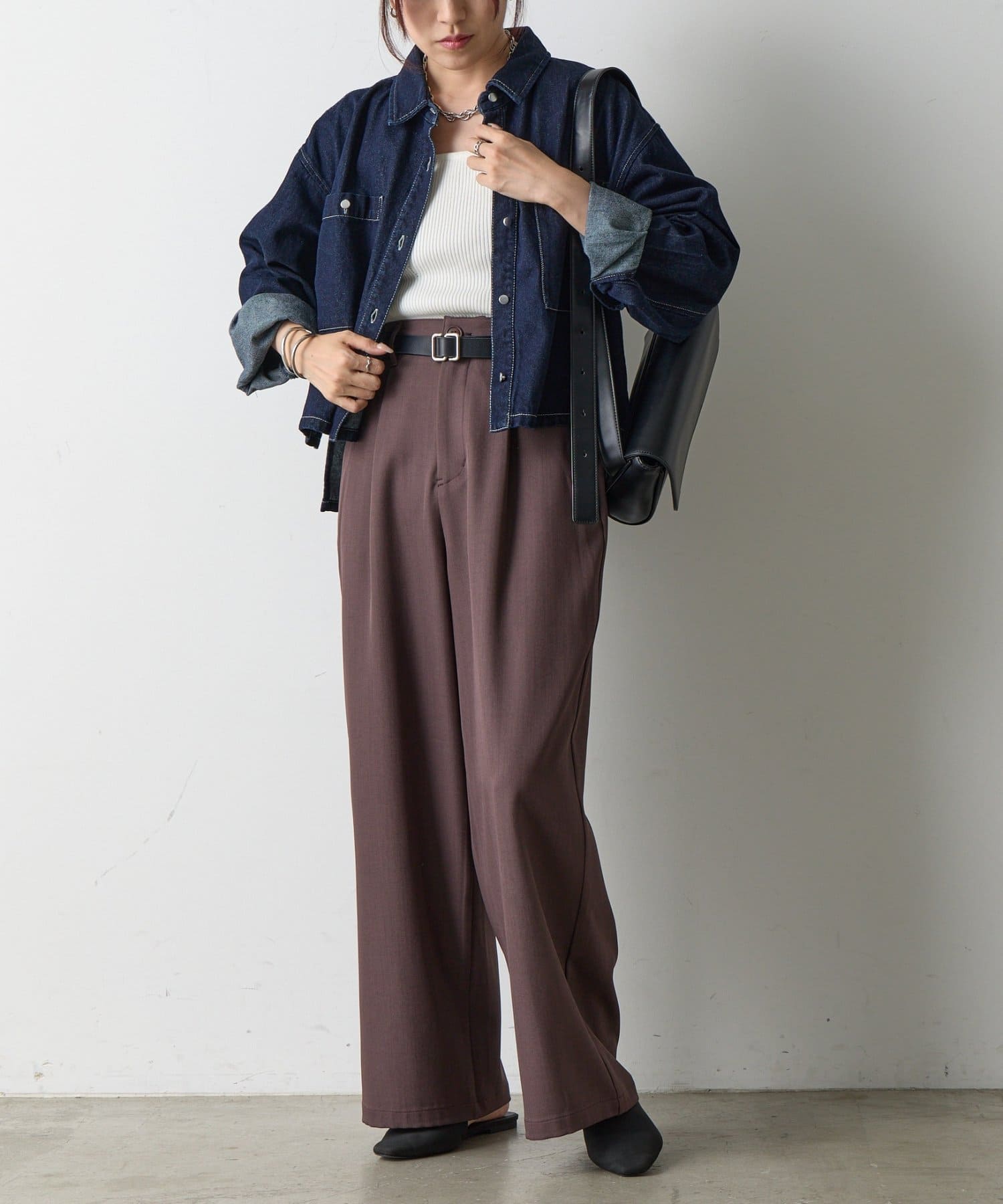 トレンドのクロップド丈を採用することで、腰回りに抜け感を作り、ルーズなパンツとも好バランス◎。