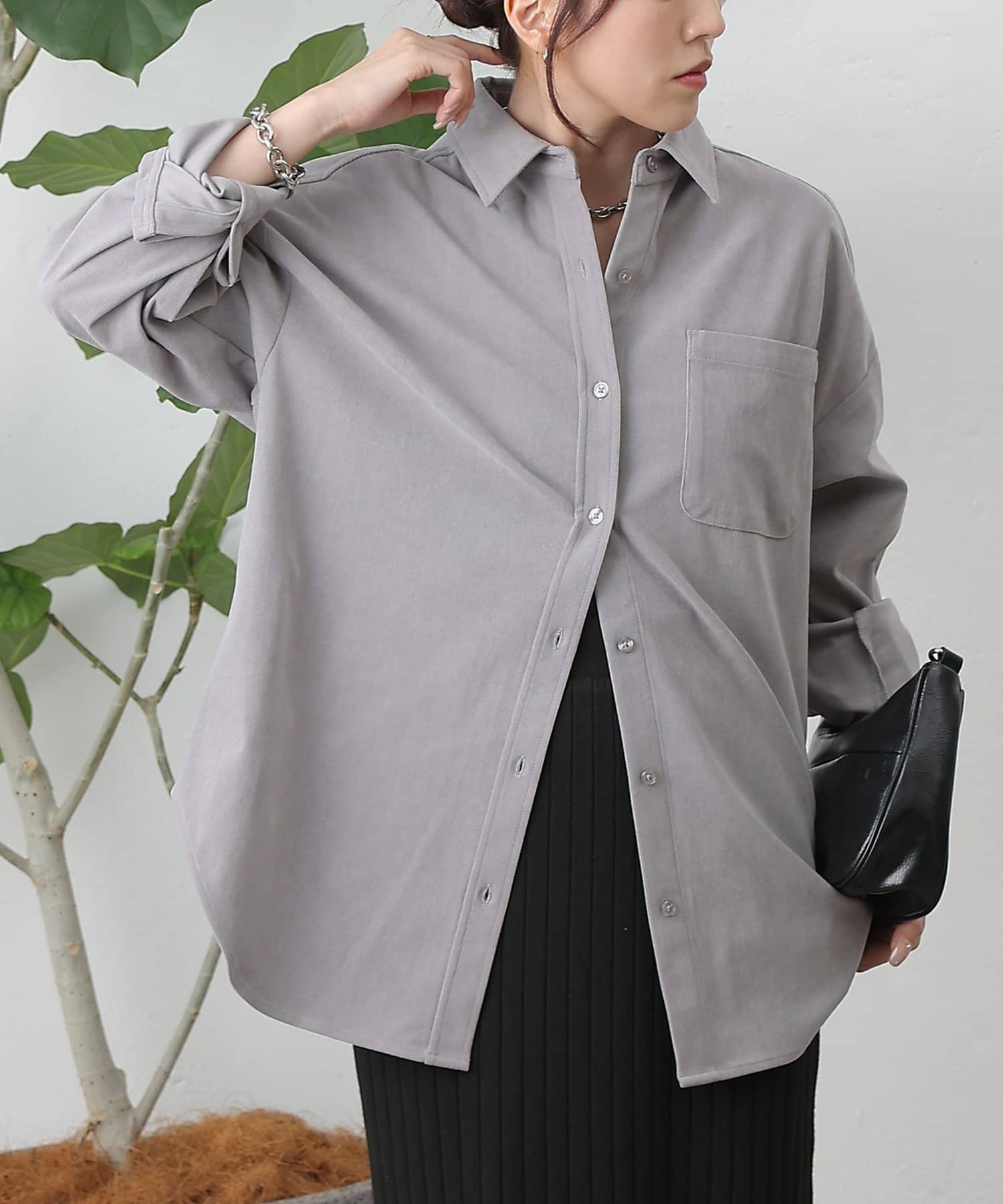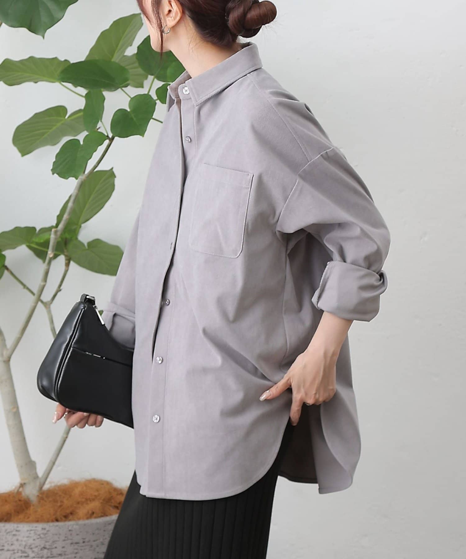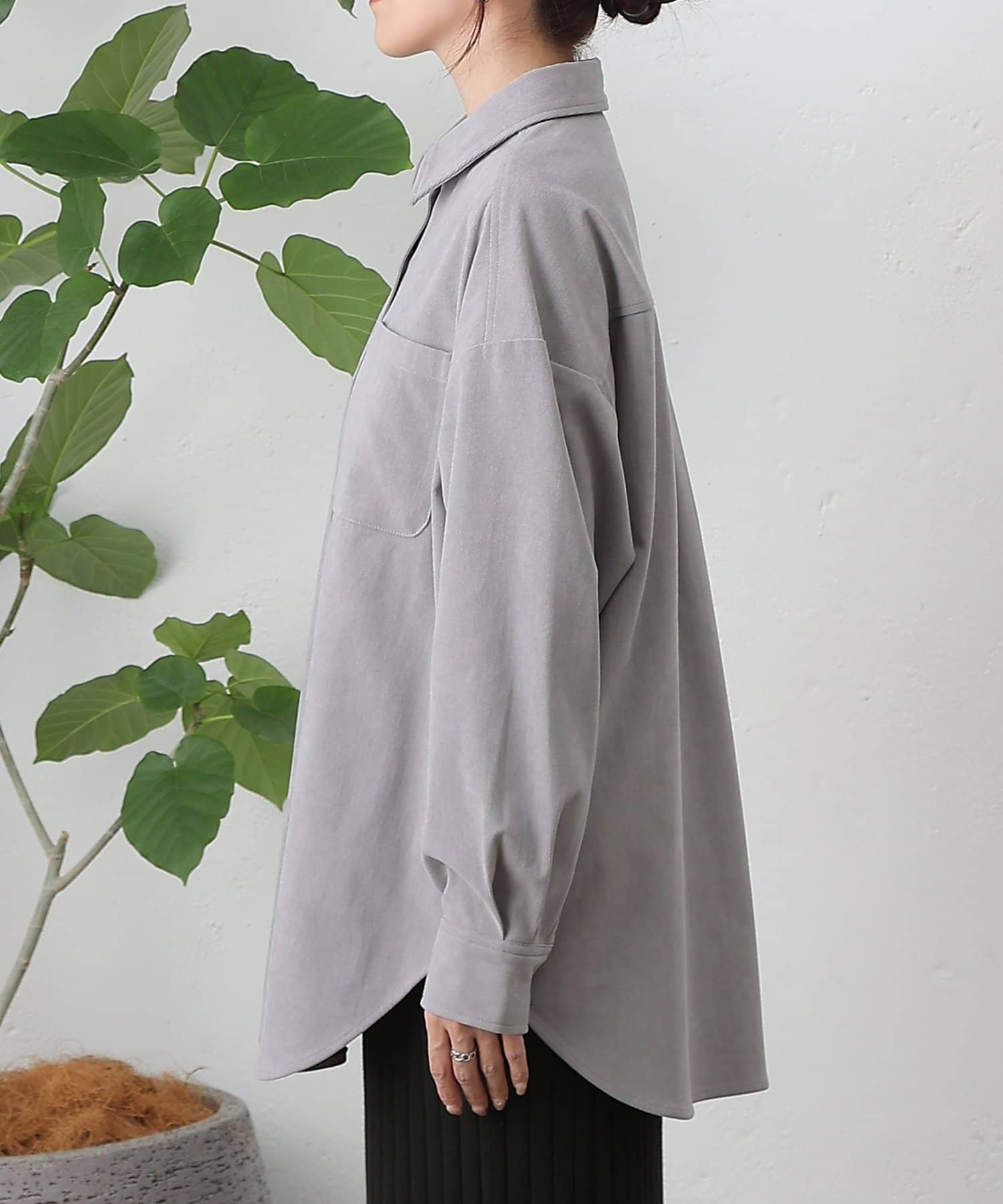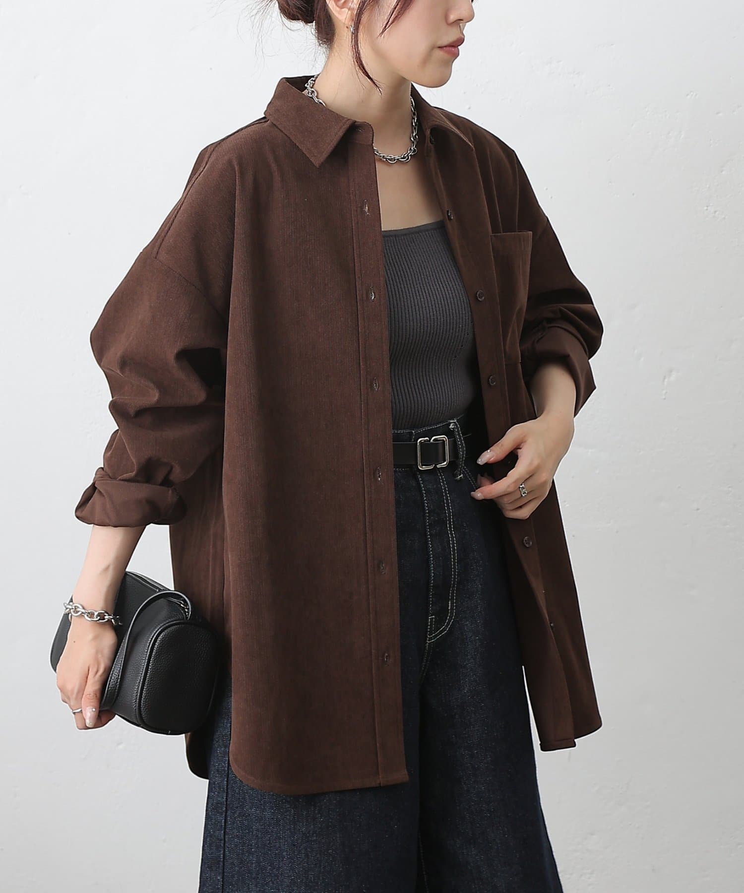 【細コーデュロイのオーバーサイズシャツ/セットアップ可能】
