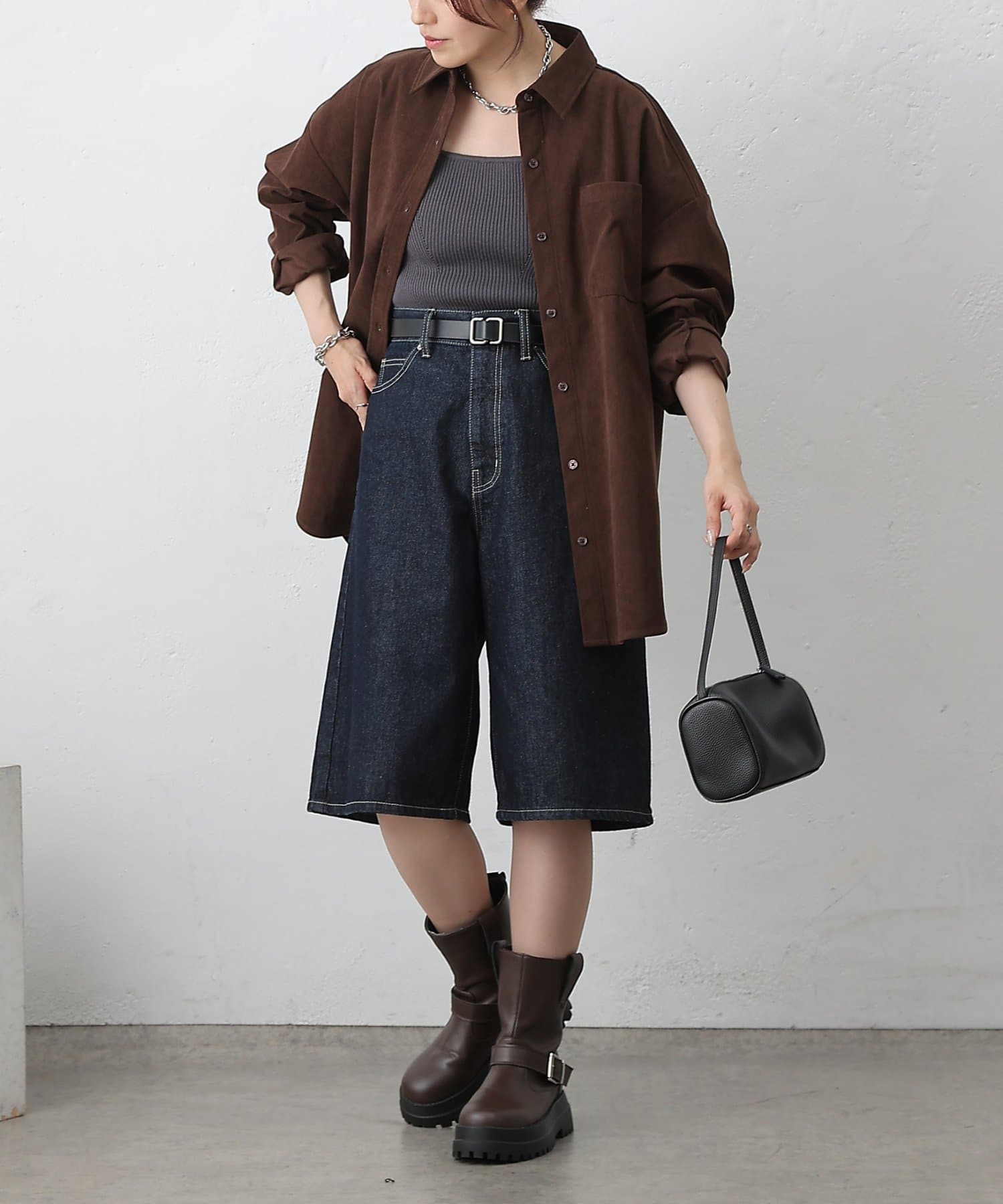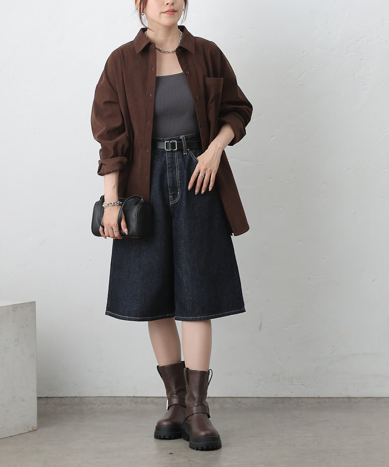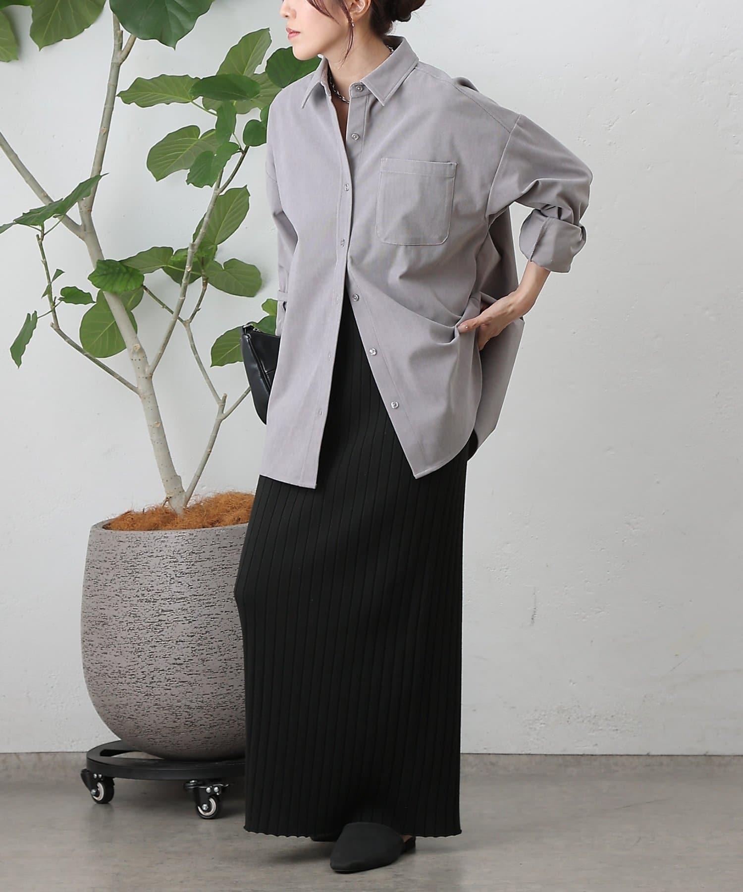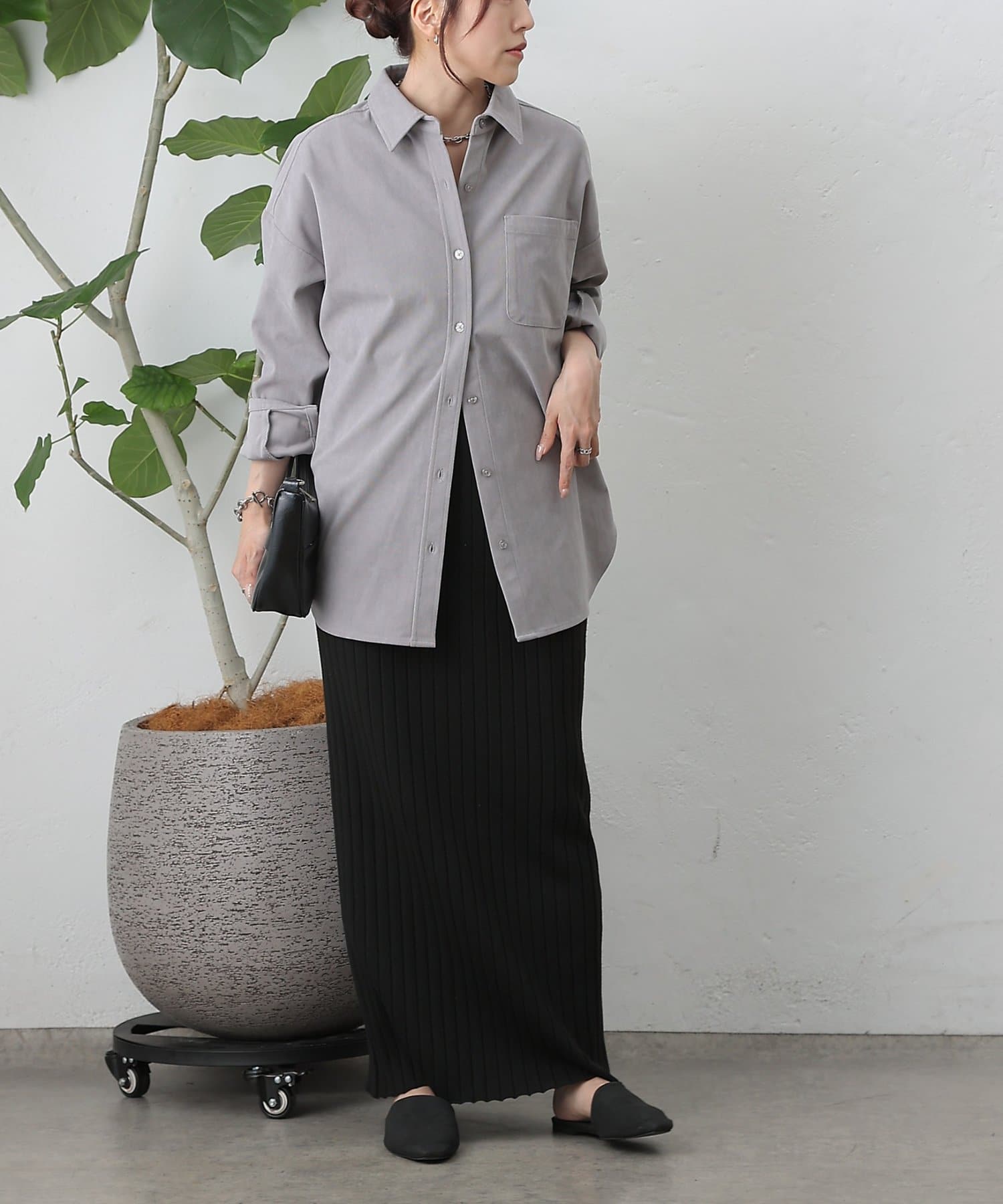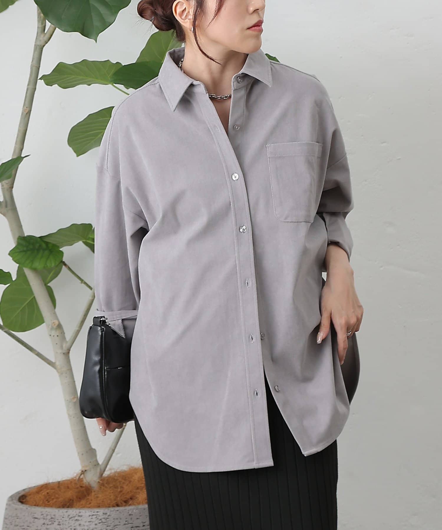 【細コーデュロイのオーバーサイズシャツ/セットアップ可能】