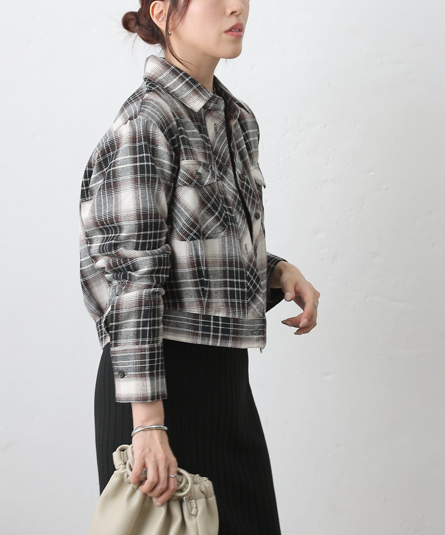 【シャツ感覚で着るブルゾン、チェック柄でこなれる一枚】