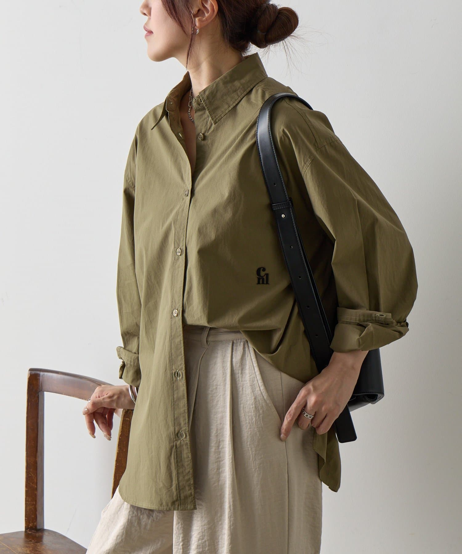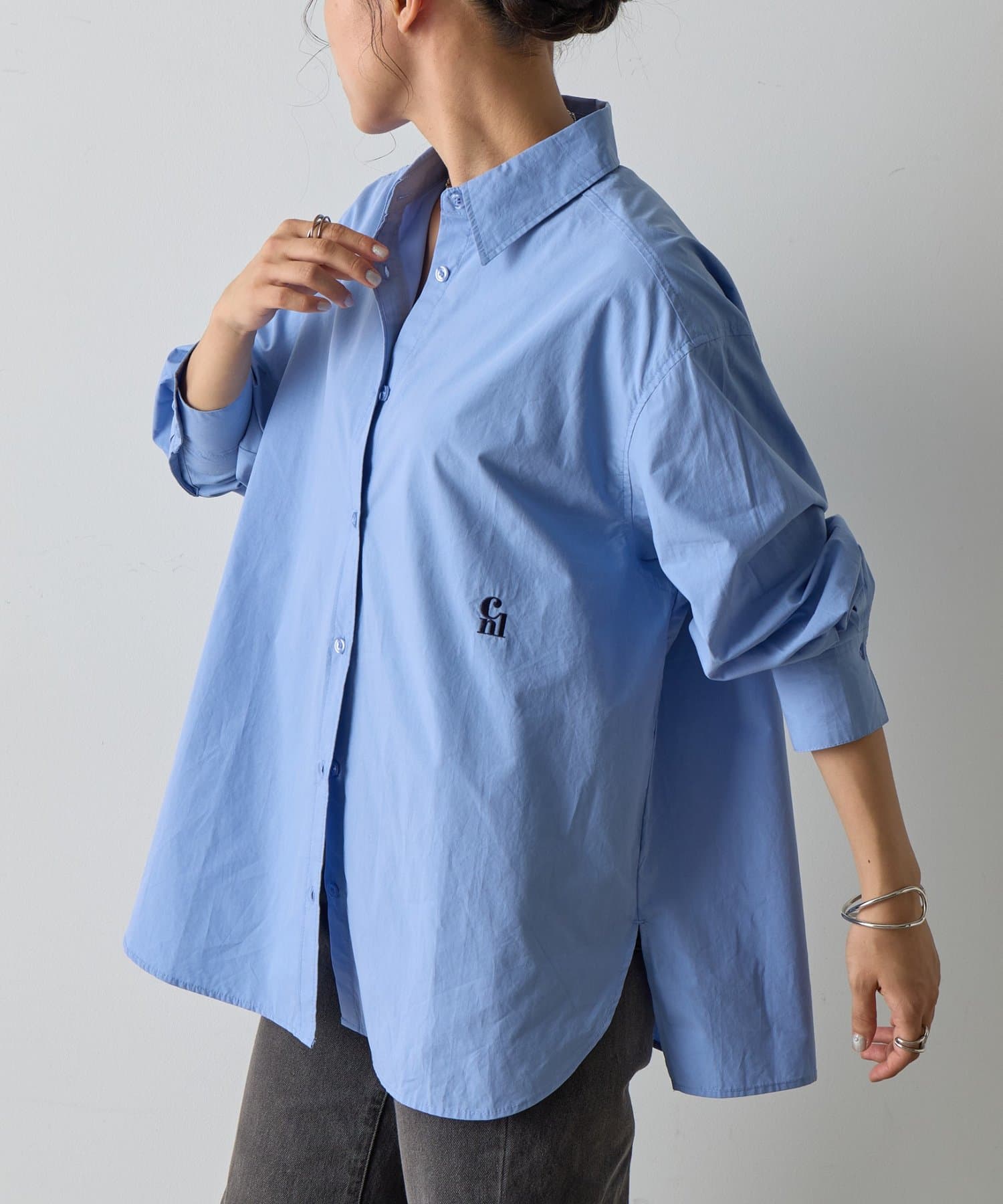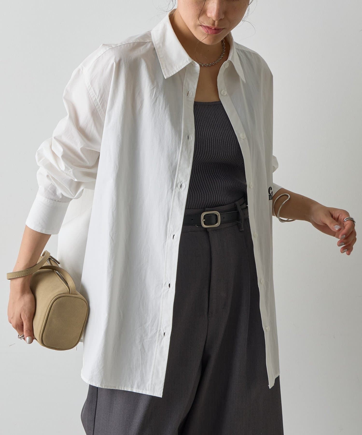 すっきりとしたシルエットでありながら、程よくゆとりを持たせたデザインはボタンを留めて一枚着でも、ゆったりと羽織としてもサマ見えする万能アイテム。オフィスではきちんと感を出しつつ、オフの日にはカジュアルに着こなせる着回し力の高さが魅力です。程よいゆとりのあるシルエットは、体型カバー効果も期待できます。さらりとした肌触りのコットン素材は通気性も良く、快適な着心地なのでロングシーズン楽しめるのも嬉しいポイント◎シンプルながらも目を引く刺繍ロゴは上品なサイズ感で主張しすぎないさりげないワンポイントなので、さりげなくあなたの個性を引き立てます。定番のデニムやチノパンはもちろん、レンドのフレアスカートやワンピースとの相性も抜群。どんなシーンにも対応できる、着回し力抜群の刺繍シャツは、ワードローブに欠かせない、とっておきな1点。
