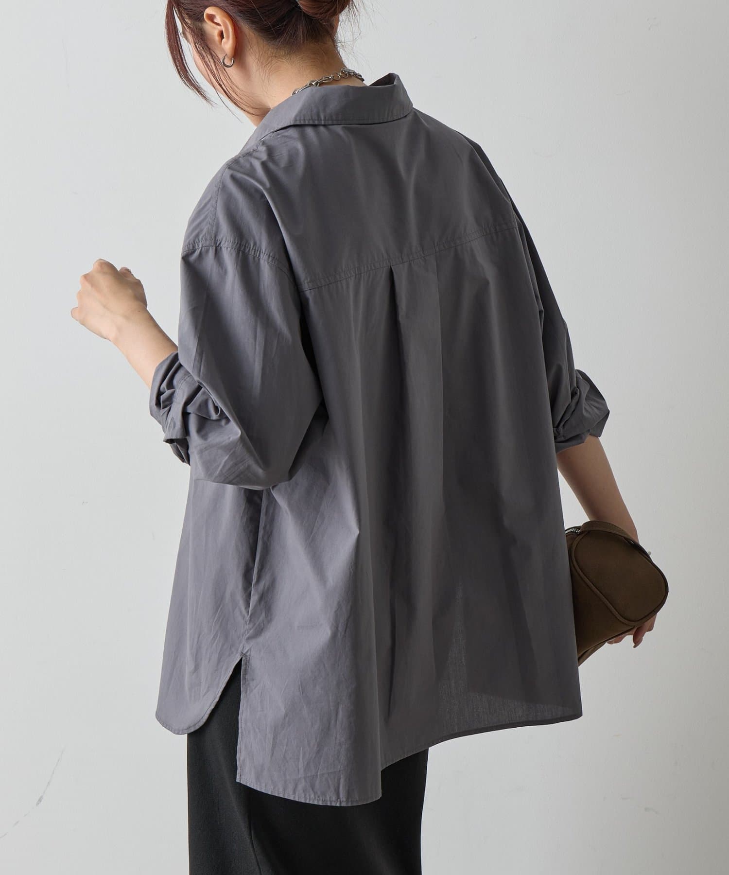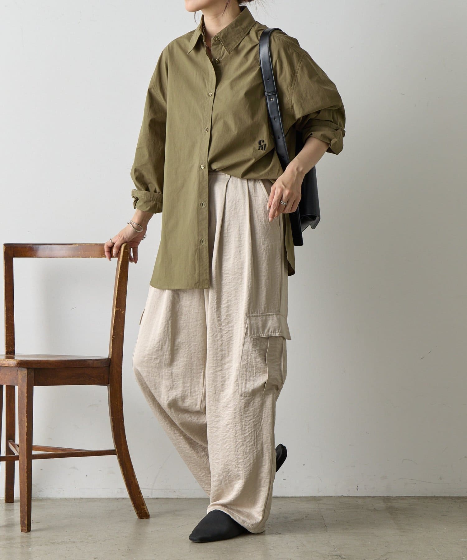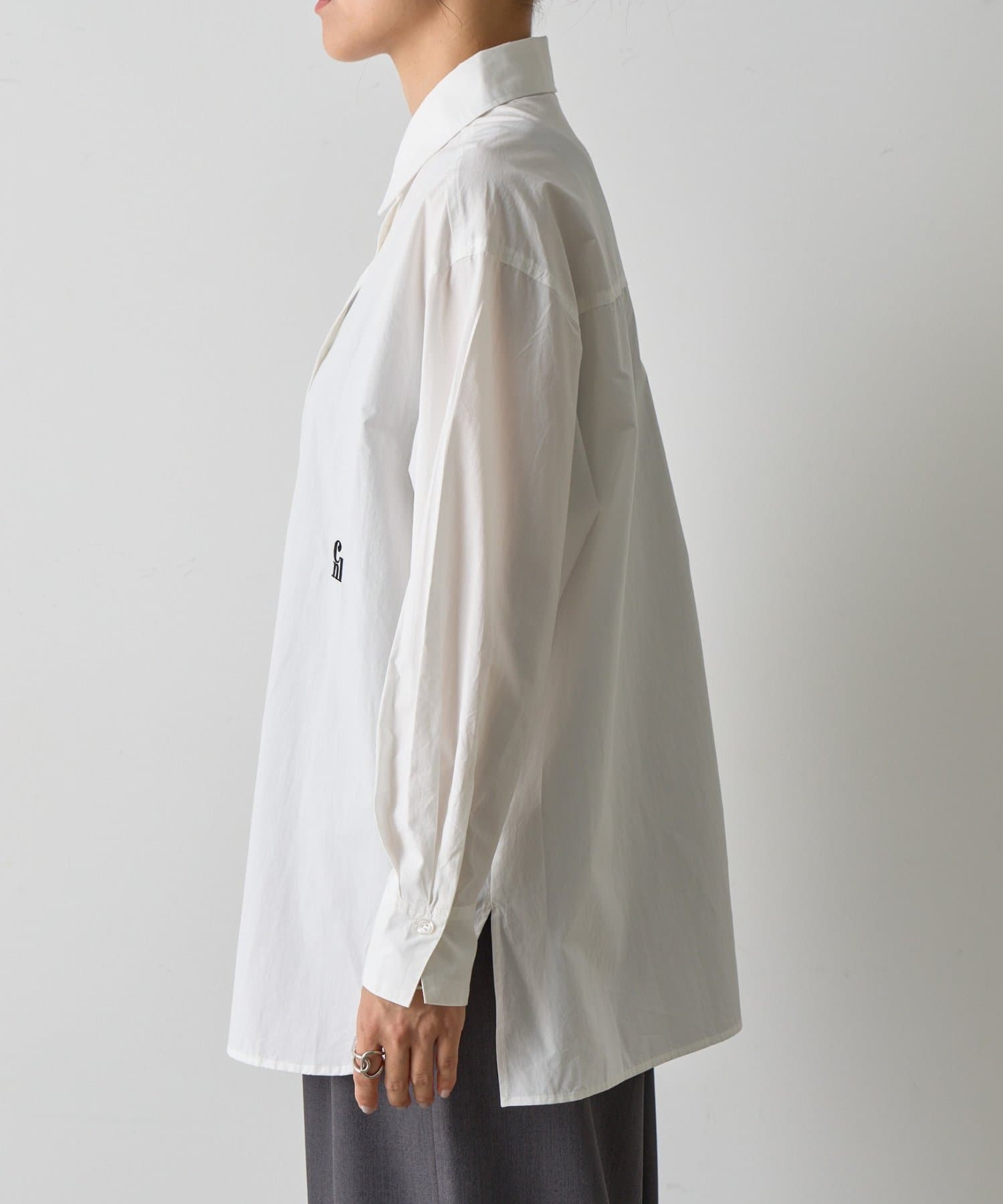 すっきりとしたシルエットでありながら、程よくゆとりを持たせたデザインはボタンを留めて一枚着でも、ゆったりと羽織としてもサマ見えする万能アイテム。オフィスではきちんと感を出しつつ、オフの日にはカジュアルに着こなせる着回し力の高さが魅力です。程よいゆとりのあるシルエットは、体型カバー効果も期待できます。さらりとした肌触りのコットン素材は通気性も良く、快適な着心地なのでロングシーズン楽しめるのも嬉しいポイント◎シンプルながらも目を引く刺繍ロゴは上品なサイズ感で主張しすぎないさりげないワンポイントなので、さりげなくあなたの個性を引き立てます。定番のデニムやチノパンはもちろん、レンドのフレアスカートやワンピースとの相性も抜群。どんなシーンにも対応できる、着回し力抜群の刺繍シャツは、ワードローブに欠かせない、とっておきな1点。