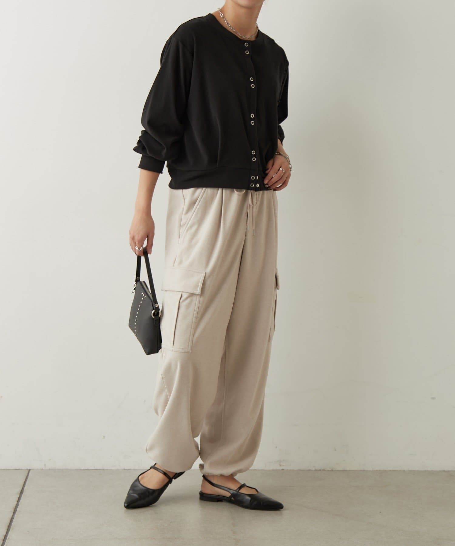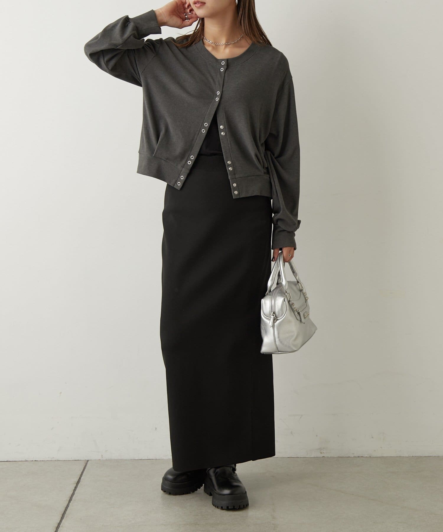裾部分にはタックが入っているので、女性らしい丸みのあるシルエットに◎。