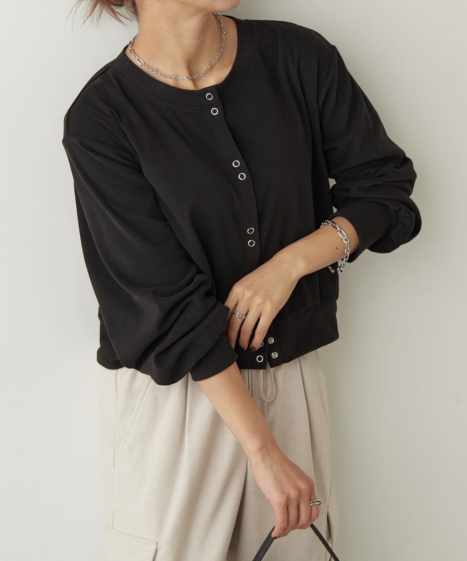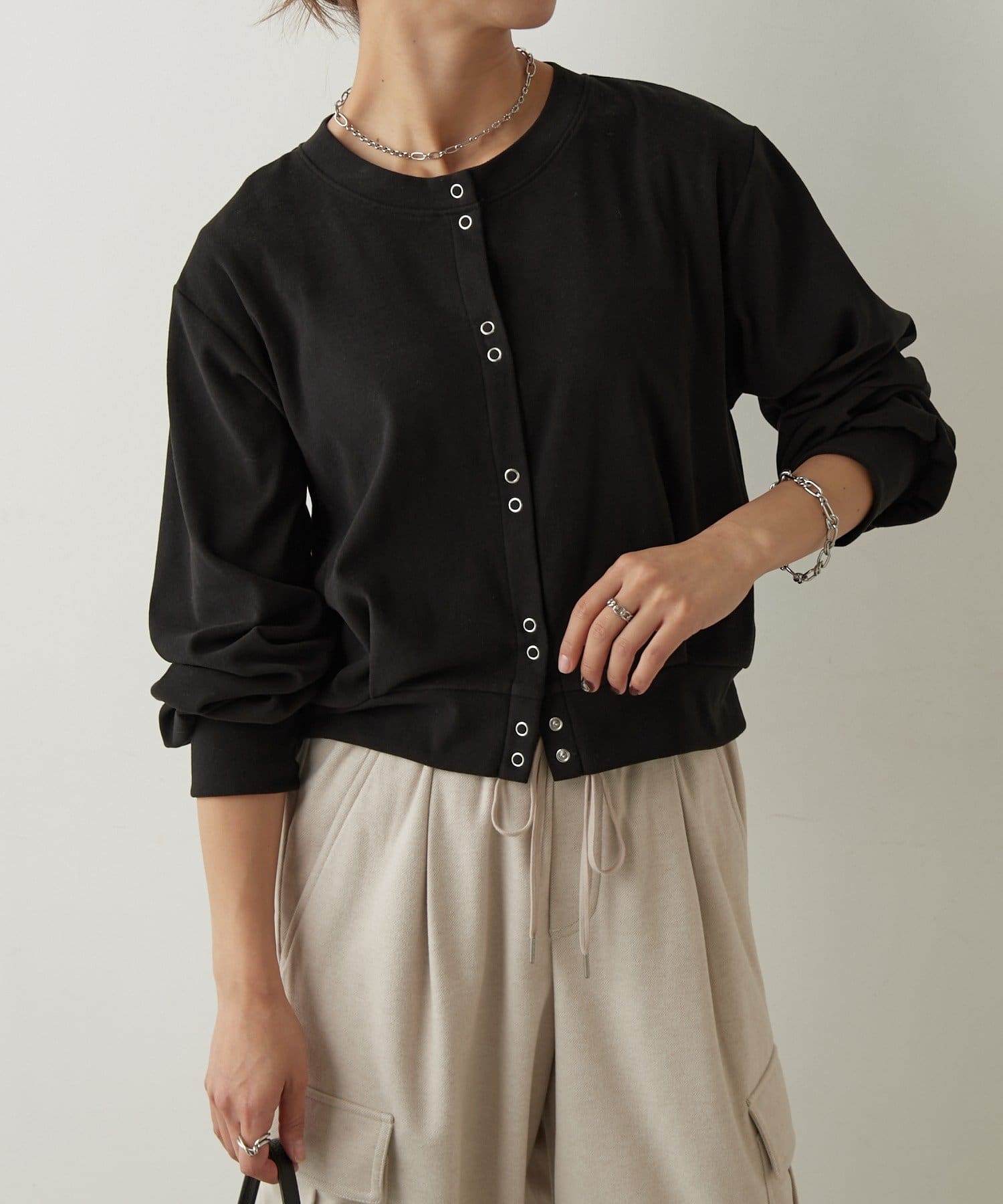 2連のリングドットボタンを採用したことで、ボタンの開閉もスムーズで、デザインのアクセントにも。