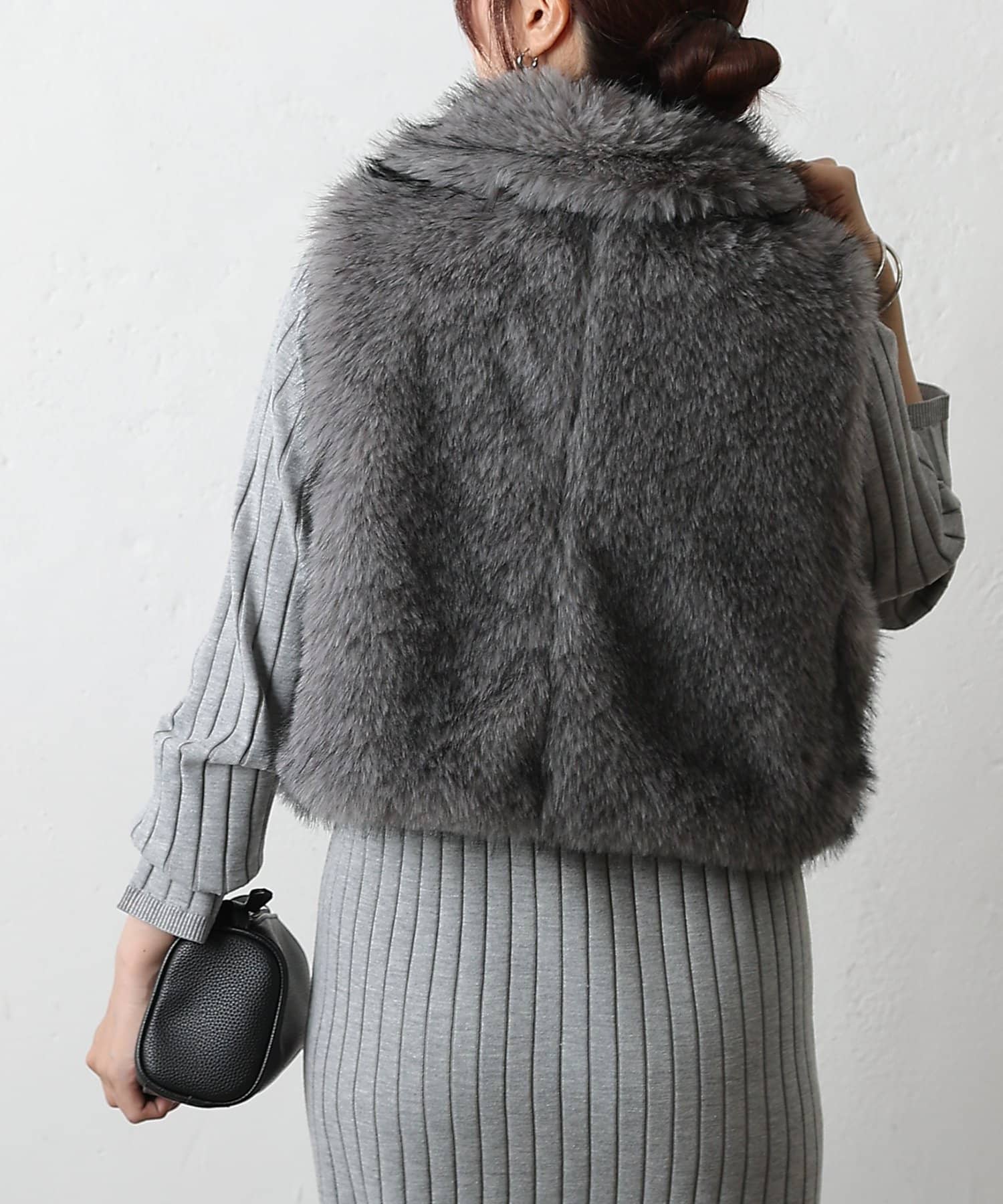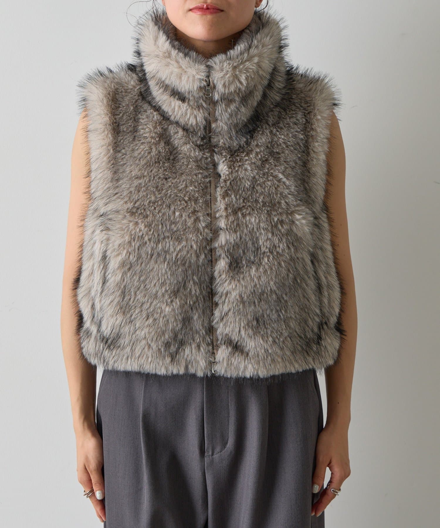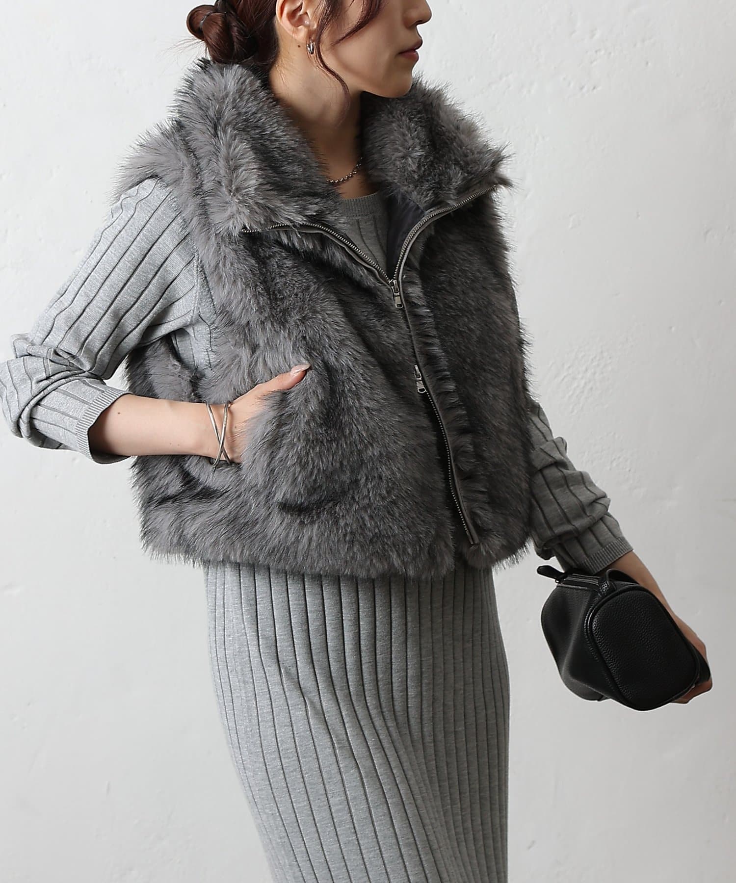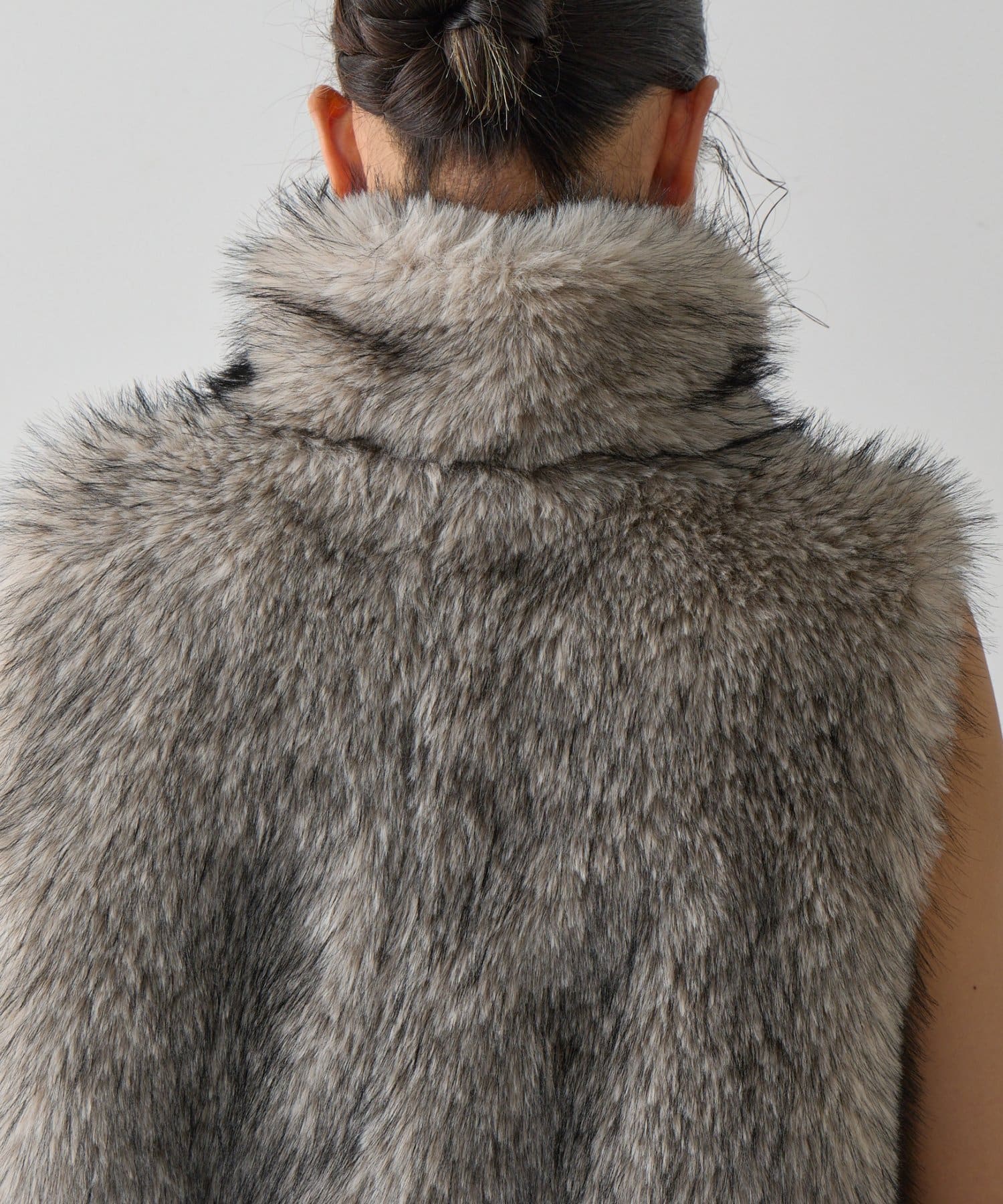 いつものコーディネートにプラスするだけで、ワンランク上のスタイリングが完成します。毛足の異なったファーを程よい密度でMIXすることで、まるで高級なリアルファーのような上品な光沢と心地よさを実現。思わず触れたくなるような、柔らかな質感にこだわりました。デザインにもこだわり、カジュアルにもきれいめにも合わせやすい絶妙な丈感に仕上げました。