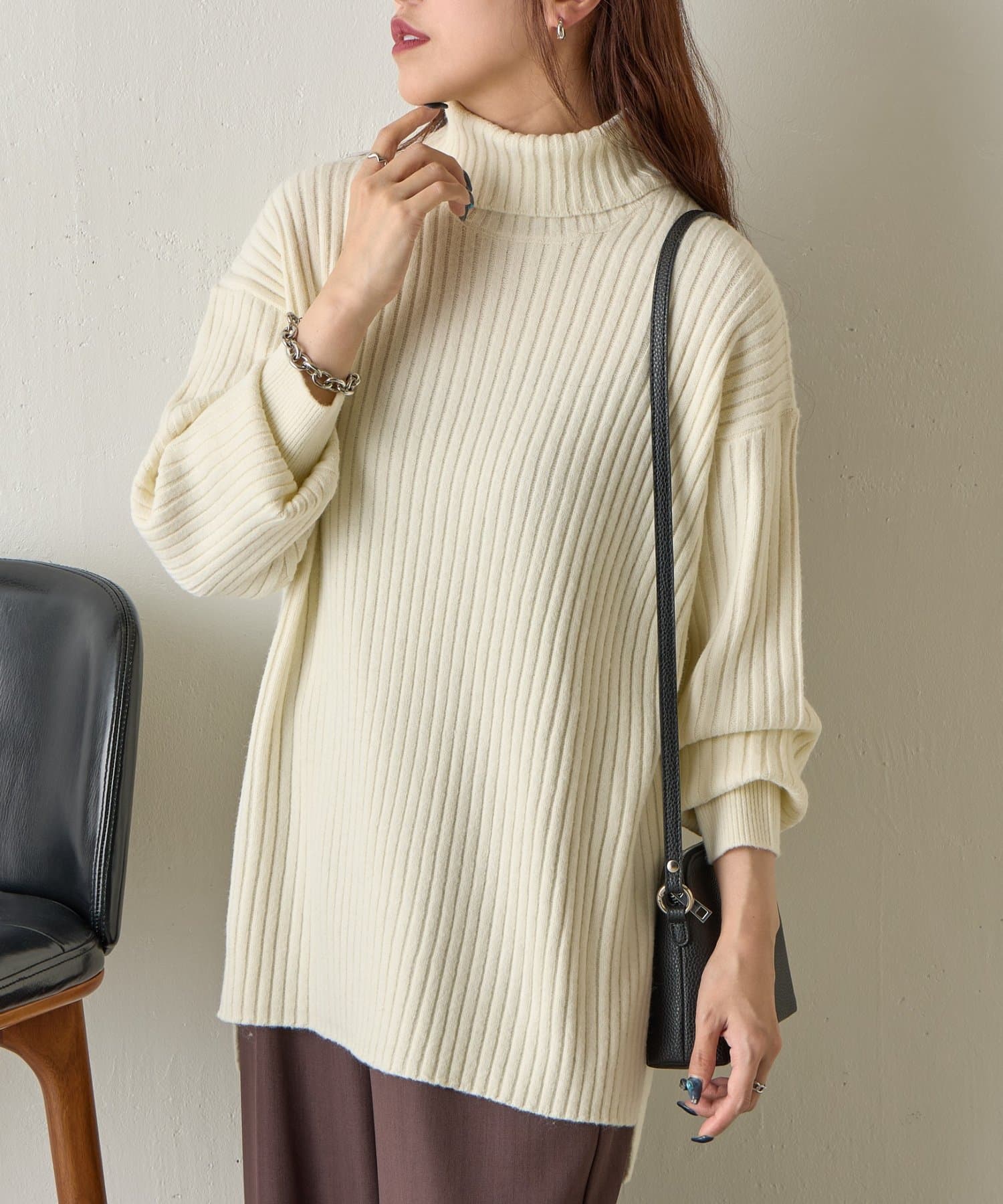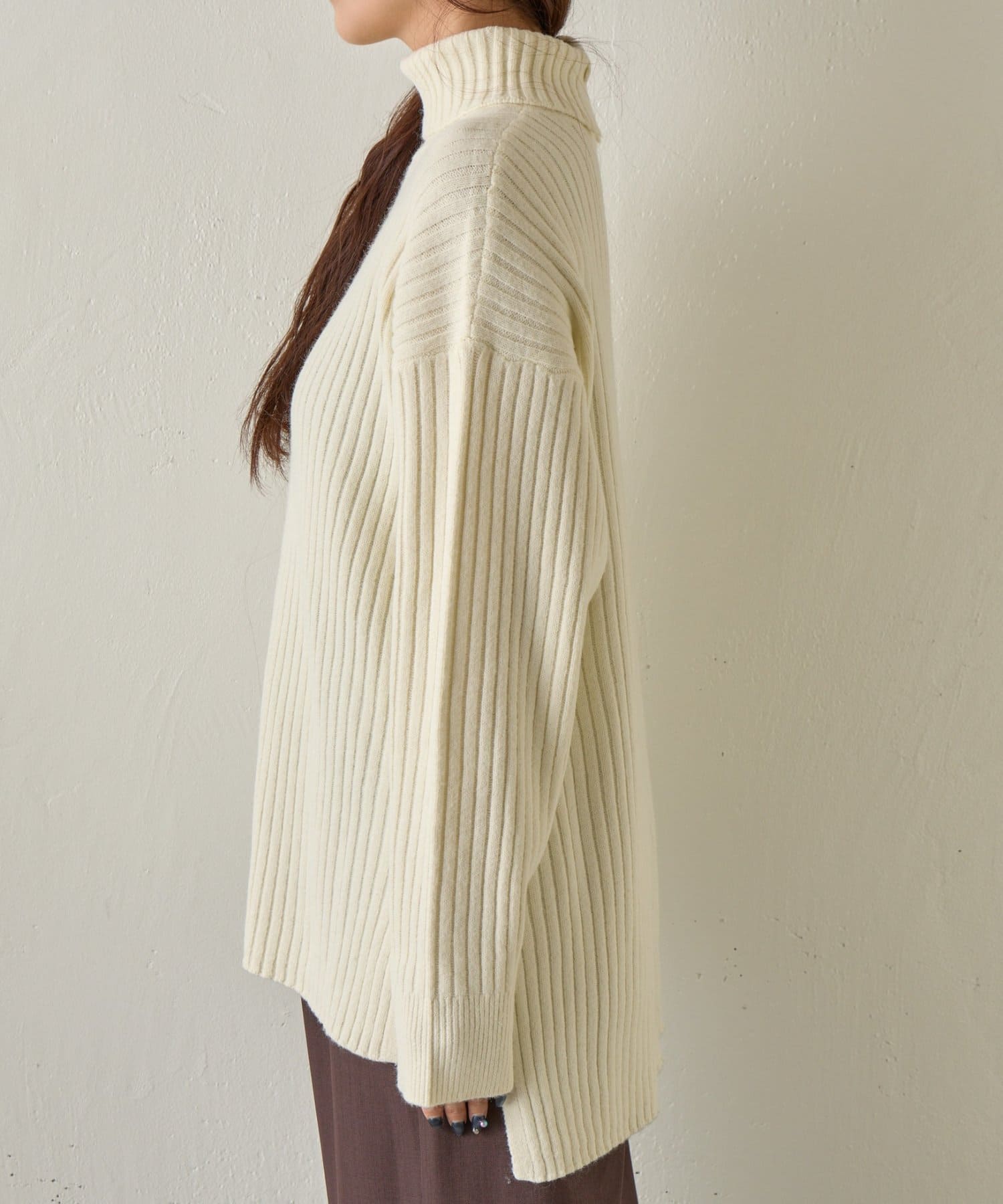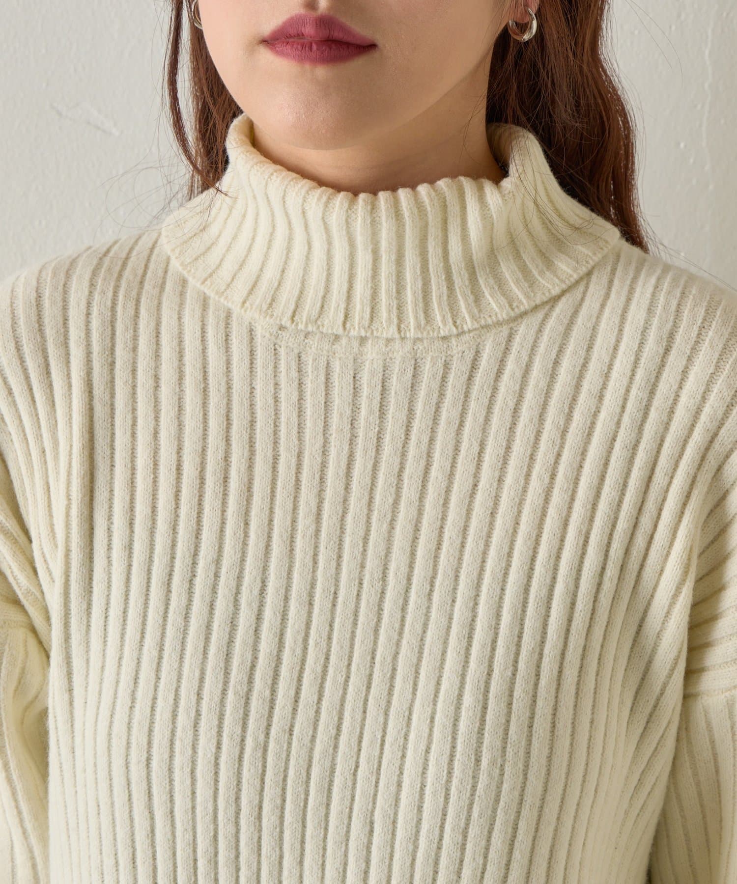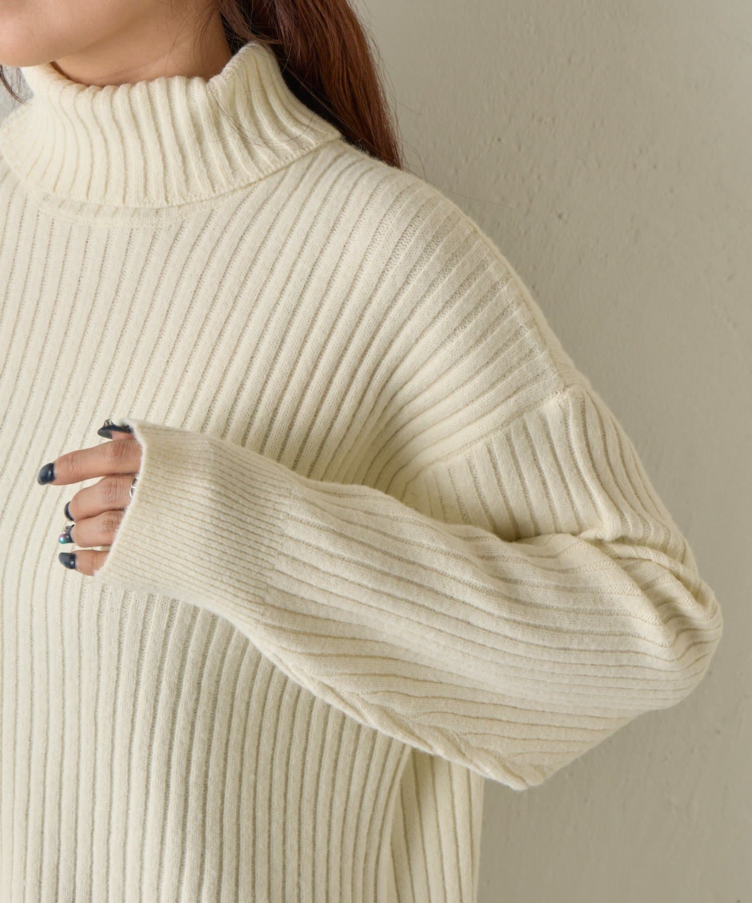 やわらかなリブ編み素材で仕上げたリラックスリブタートルニットです。