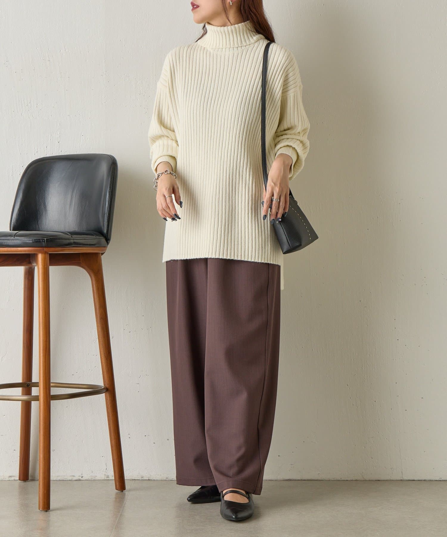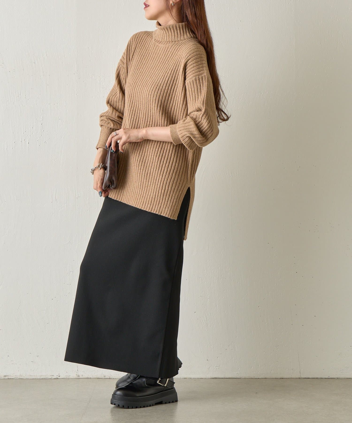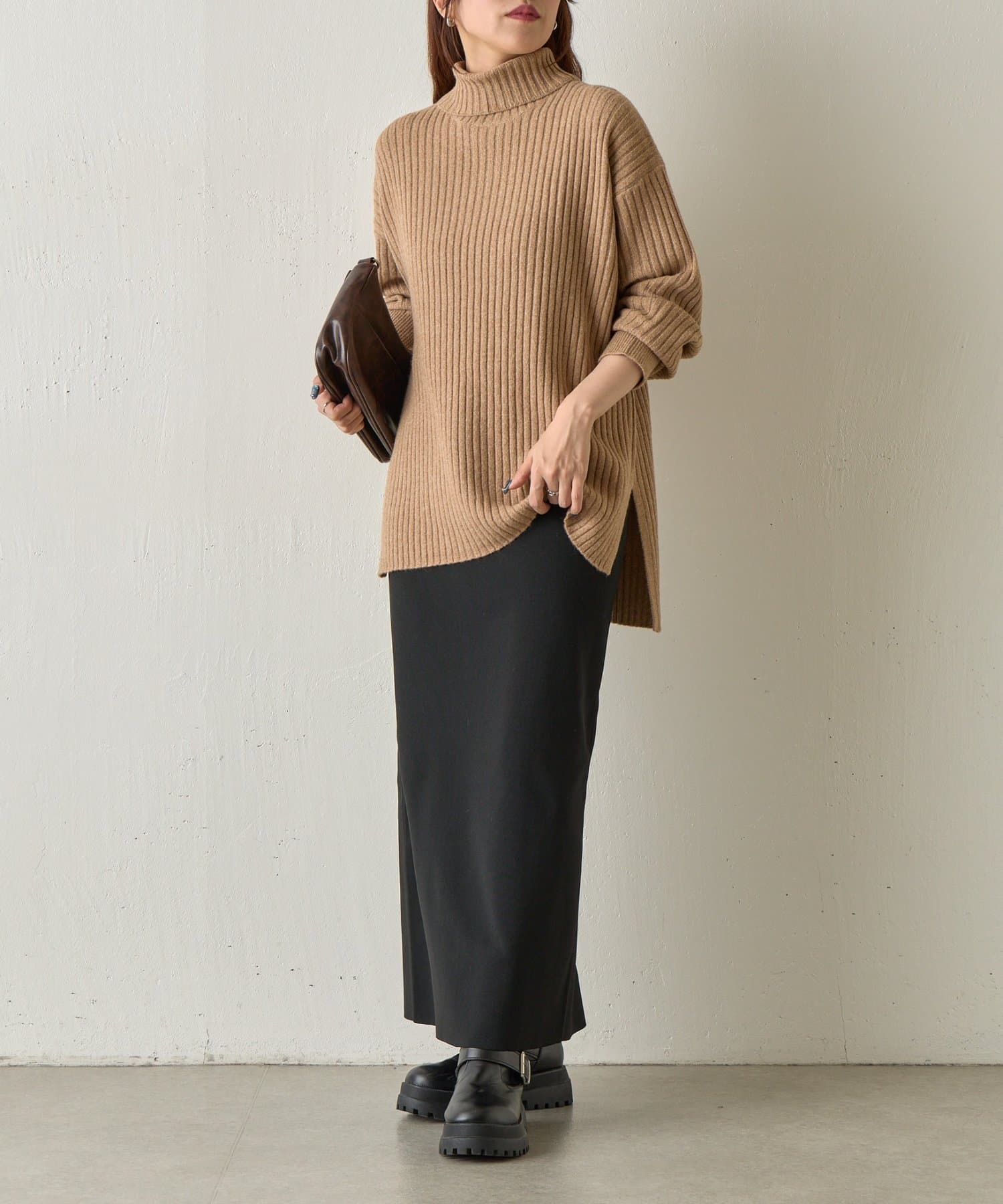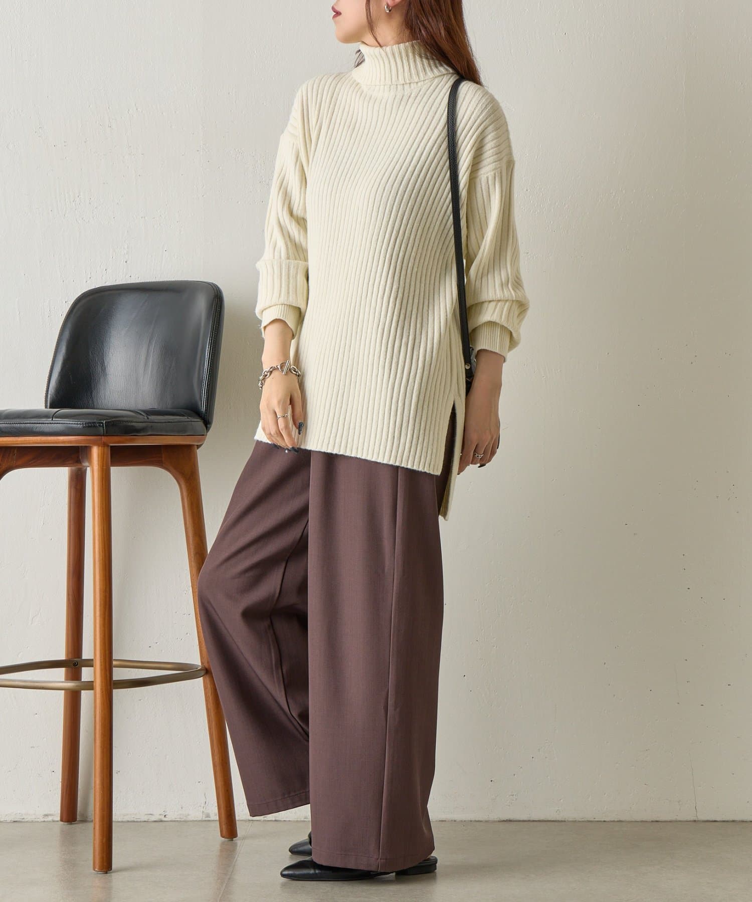 やわらかなリブ編み素材で仕上げたリラックスリブタートルニットです。
