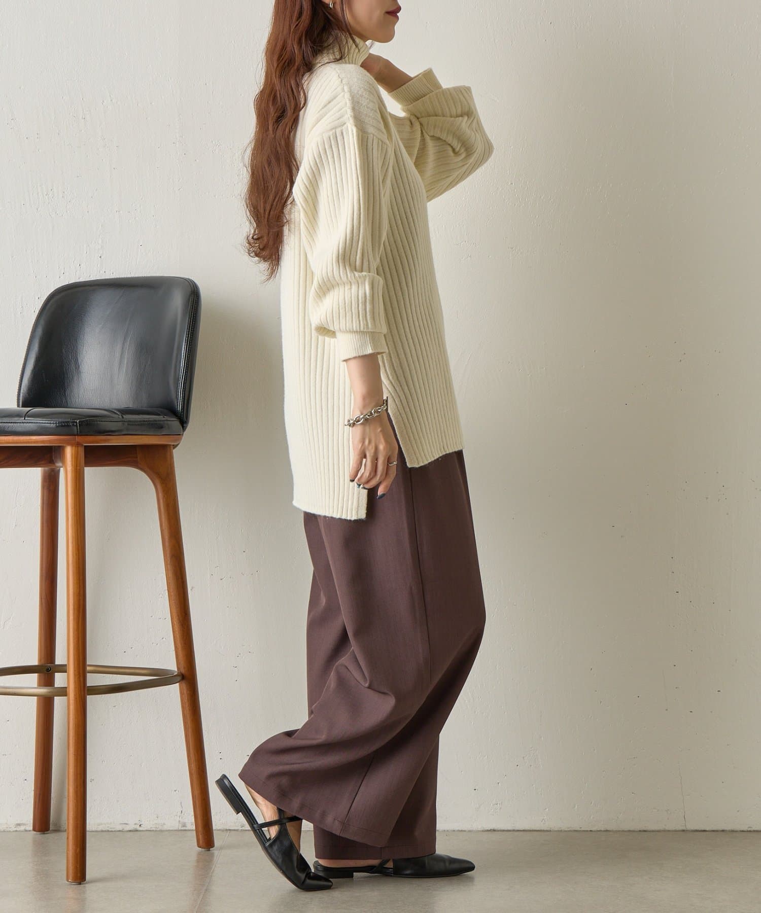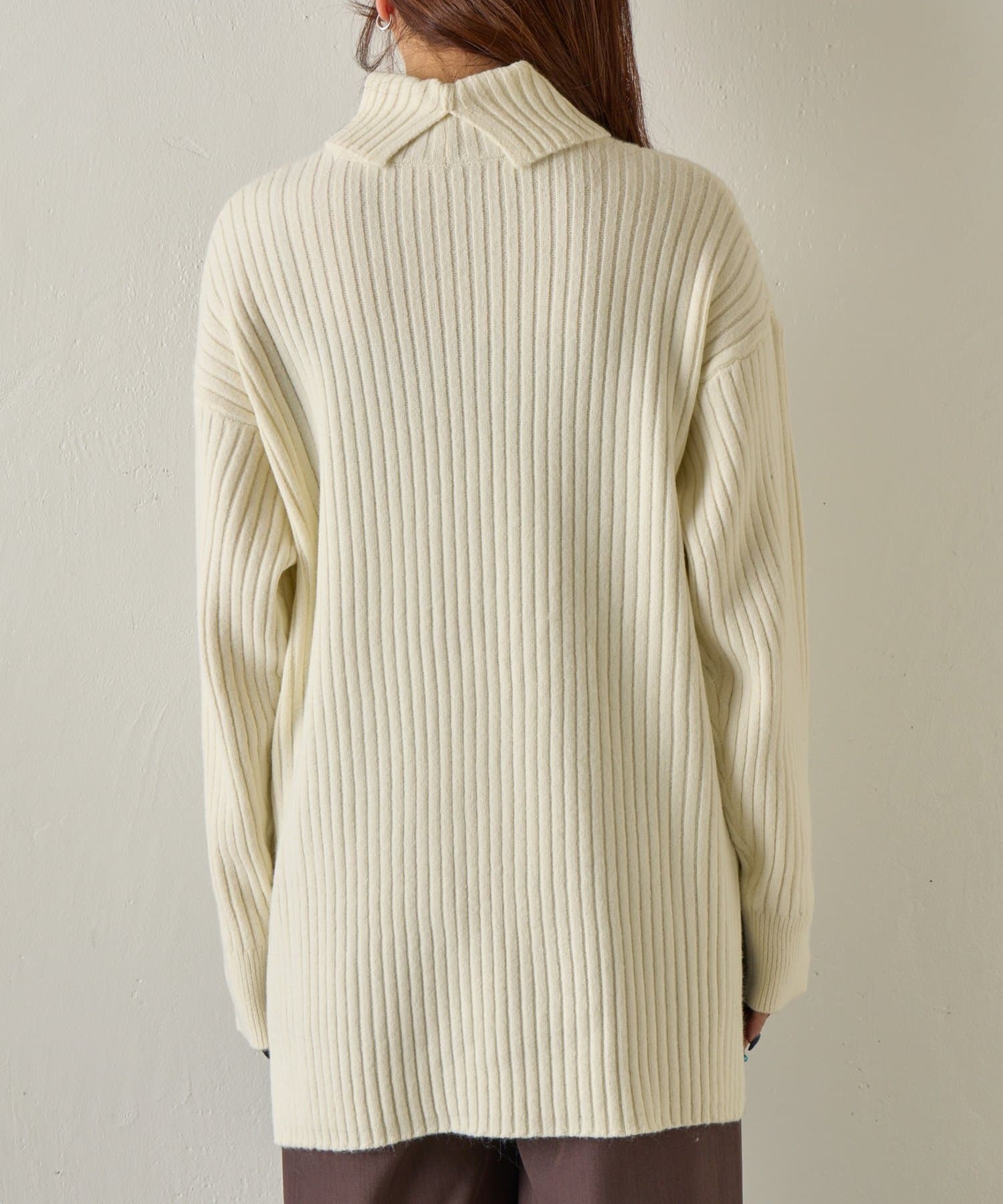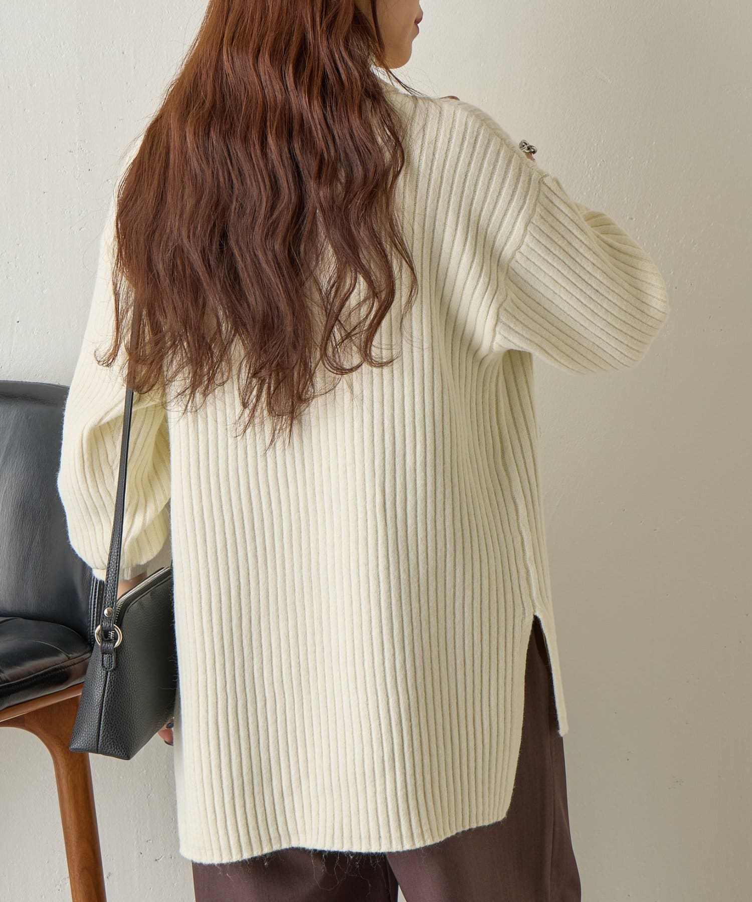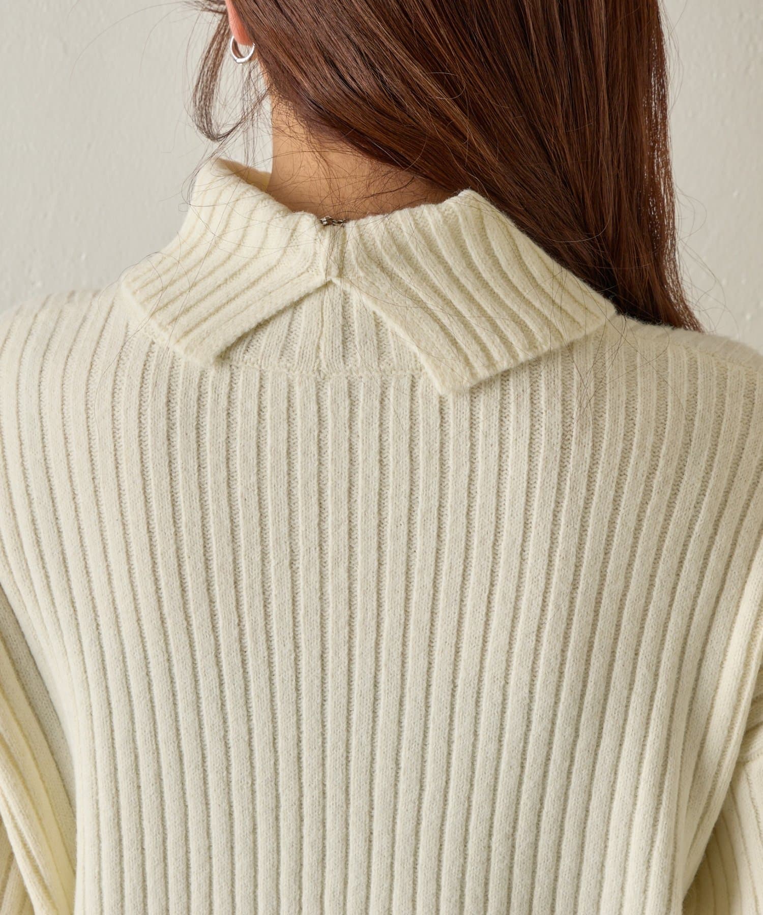 やわらかなリブ編み素材で仕上げたリラックスリブタートルニットです。