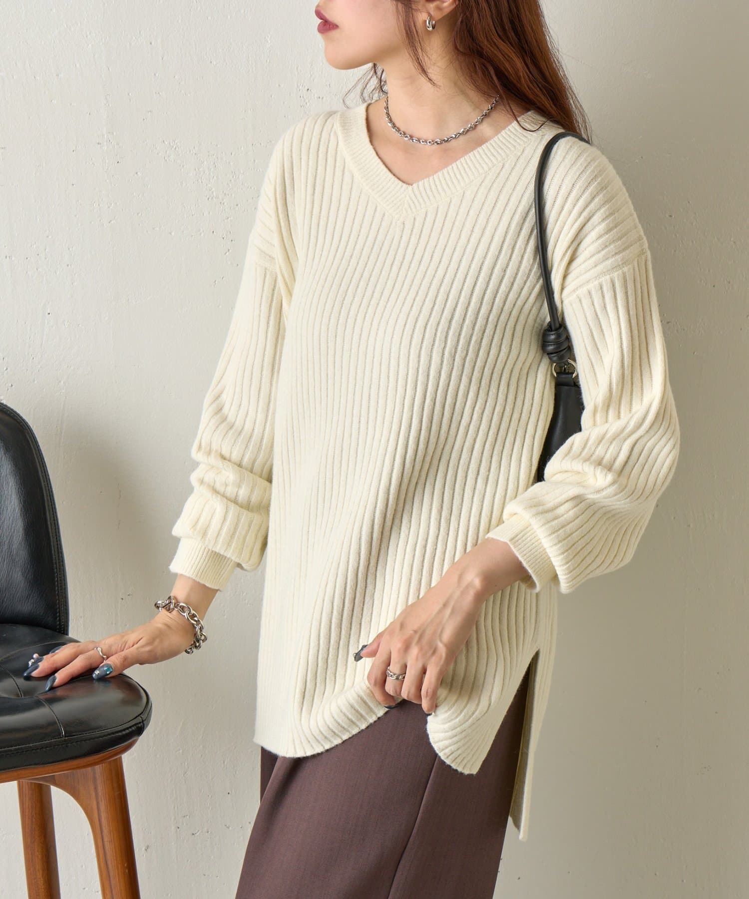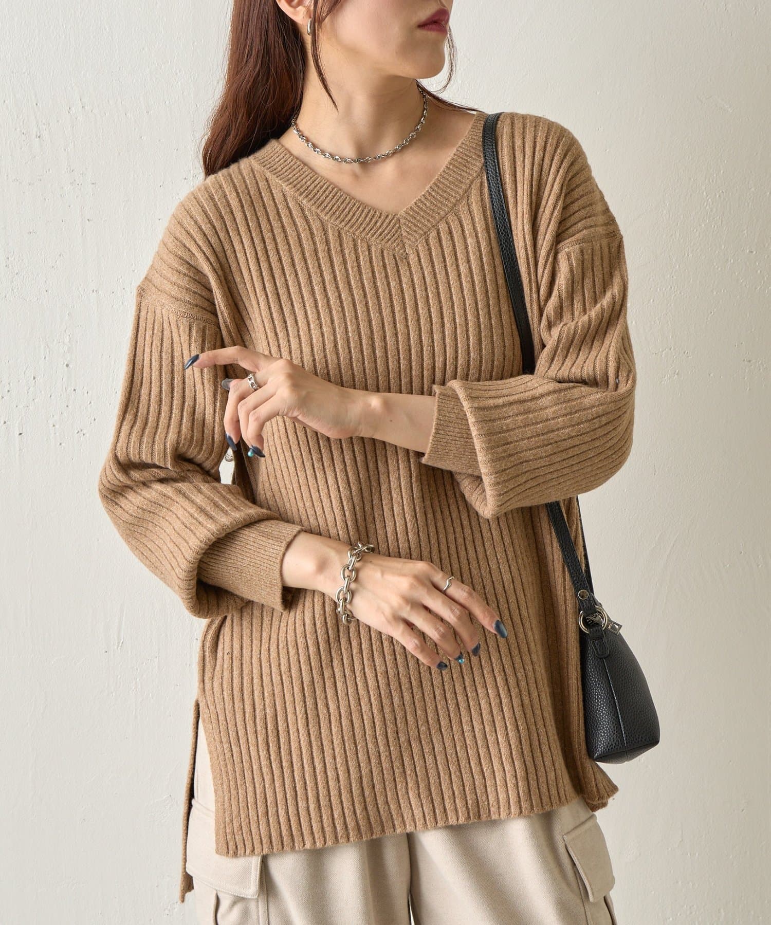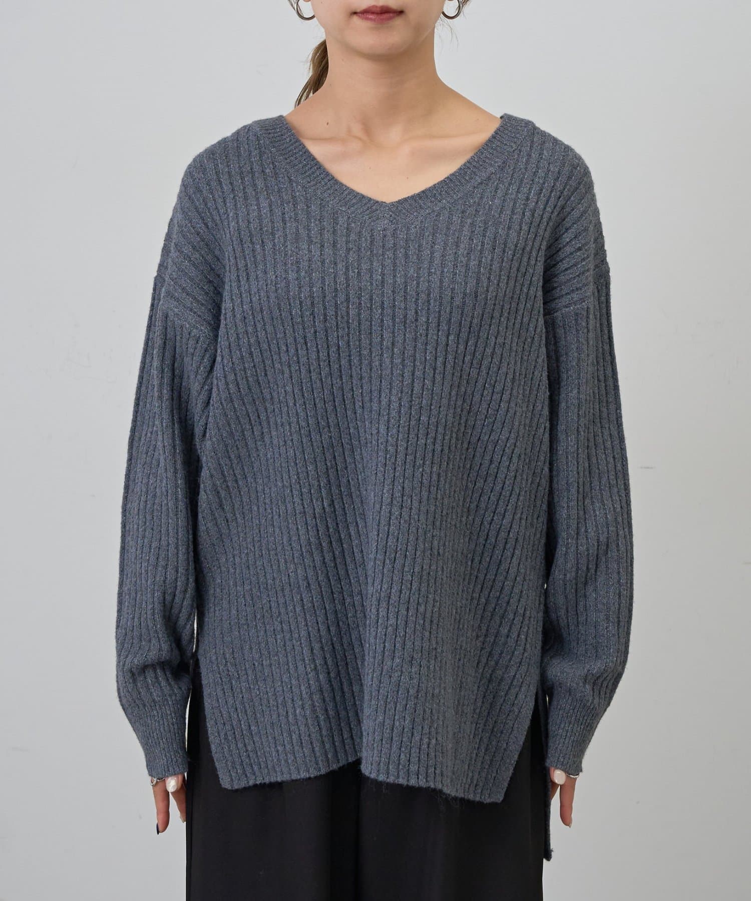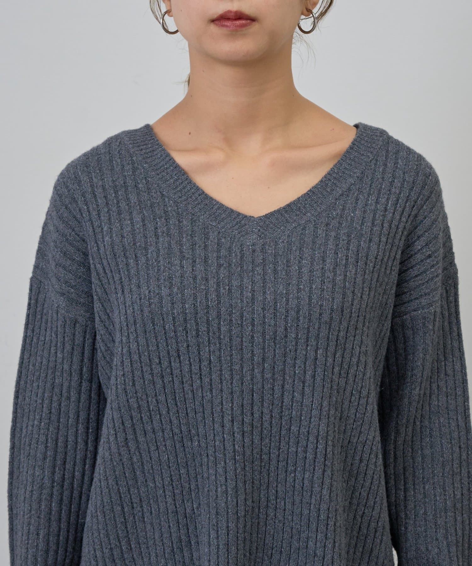 やわらかなリブ編み素材で仕上げたリラックスリブVネックニットです。
