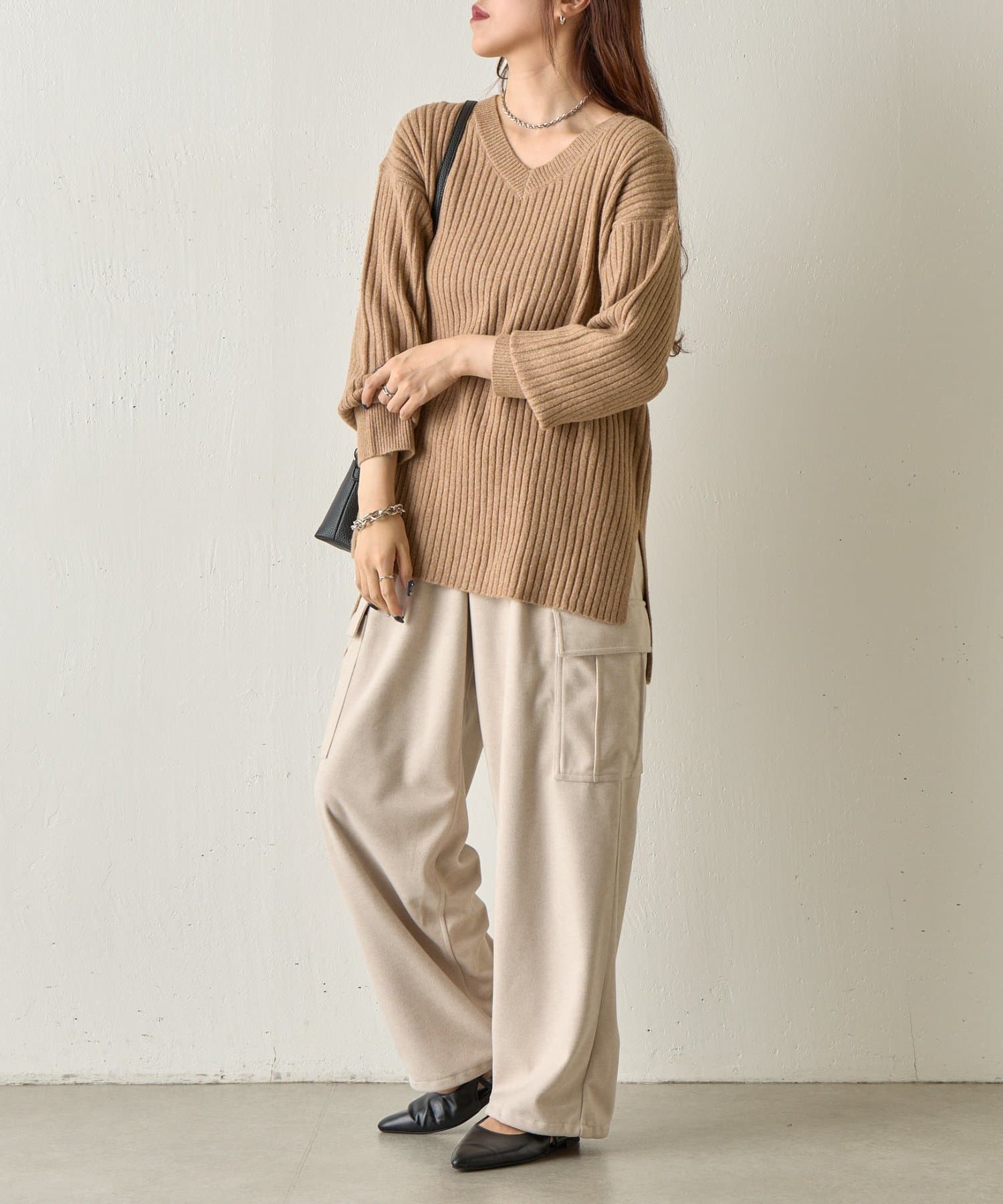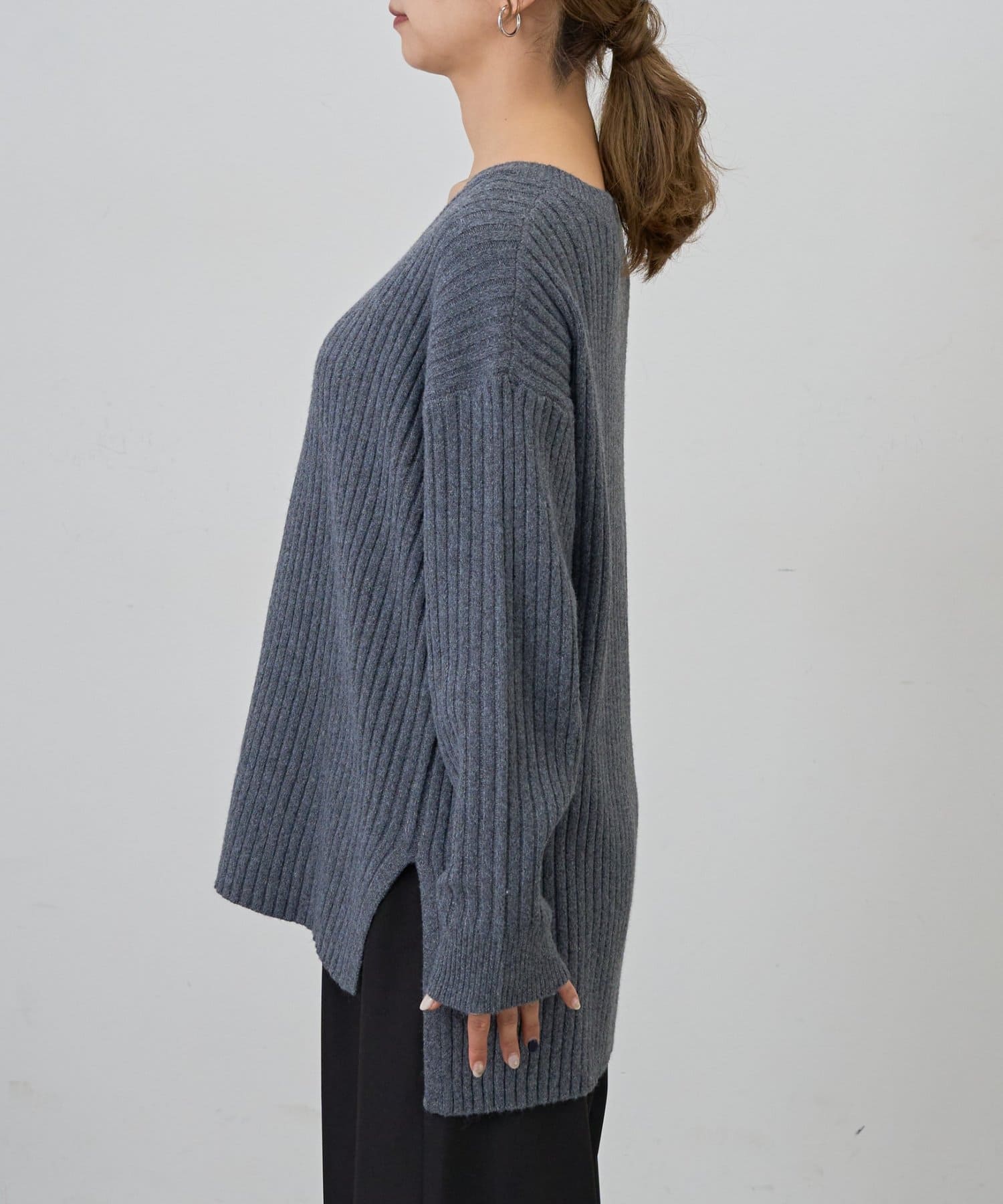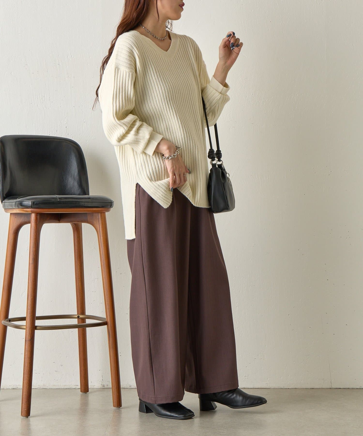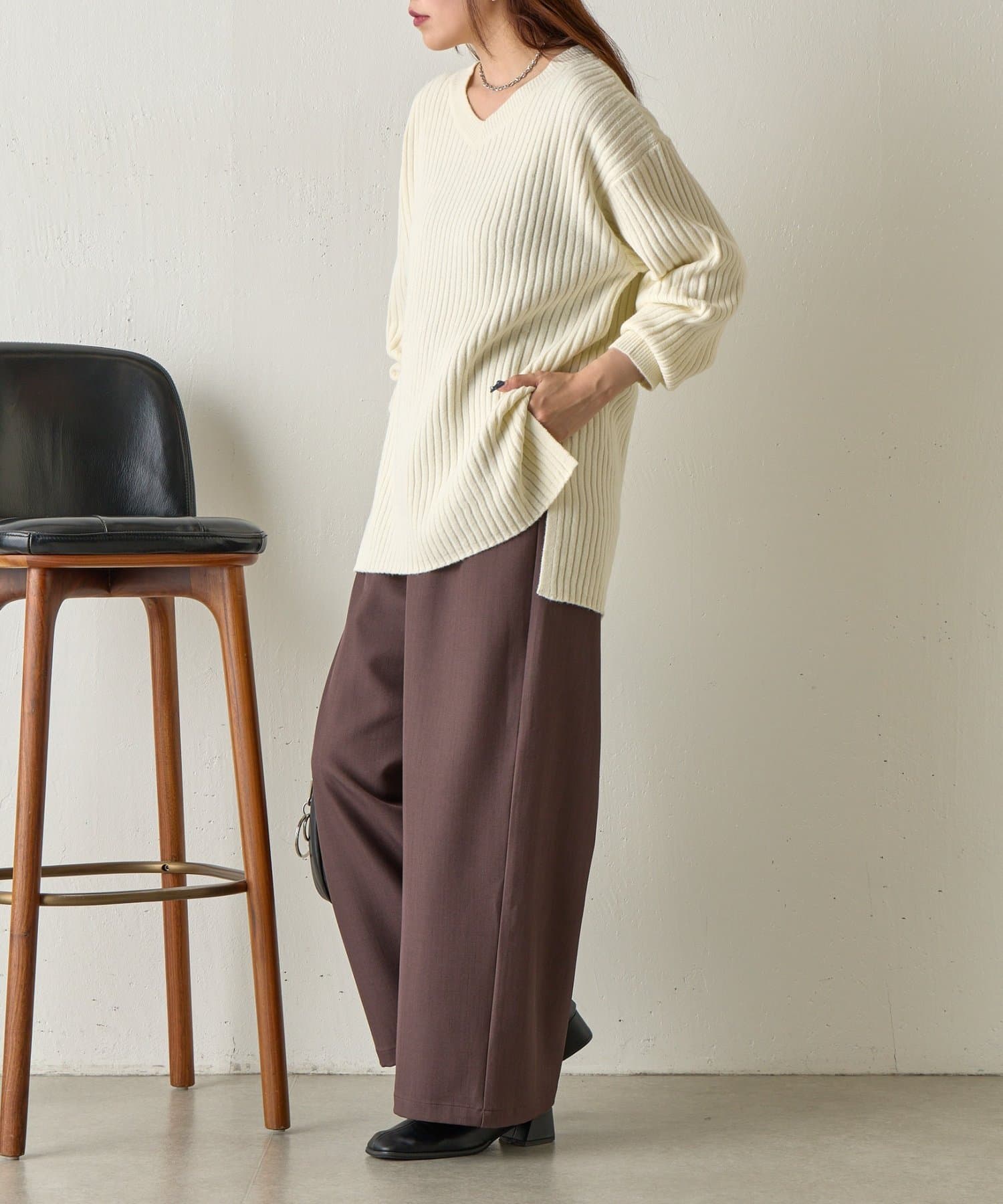 やわらかなリブ編み素材で仕上げたリラックスリブVネックニットです。