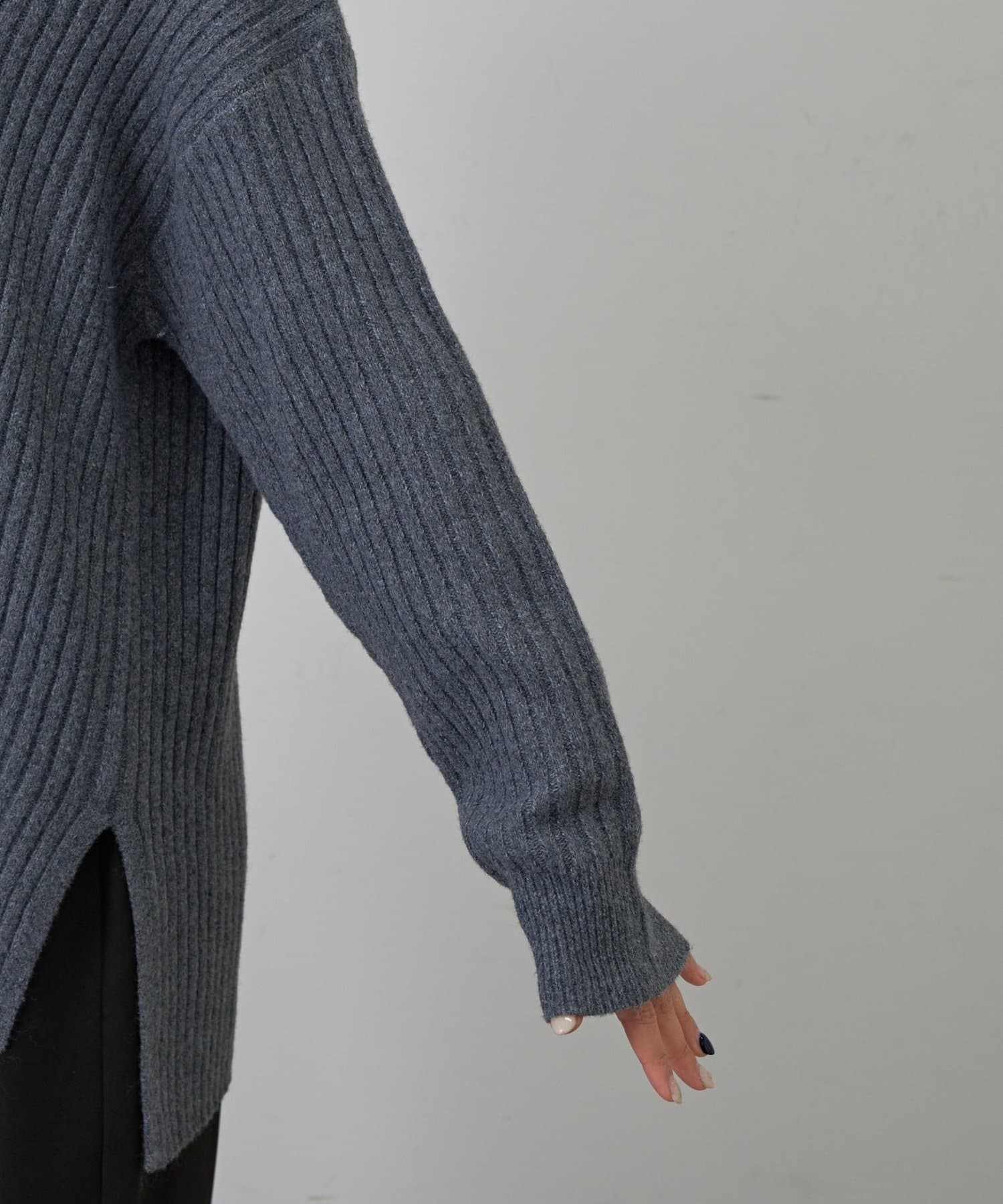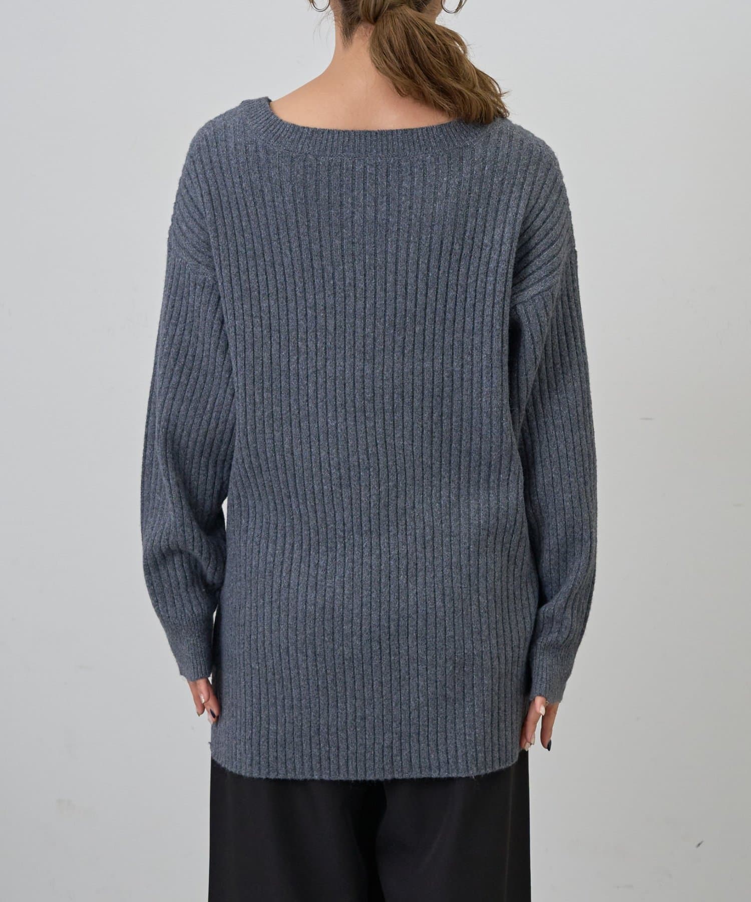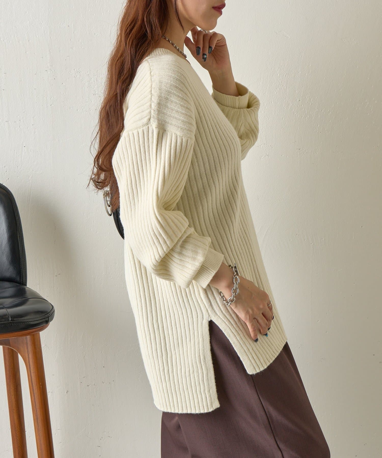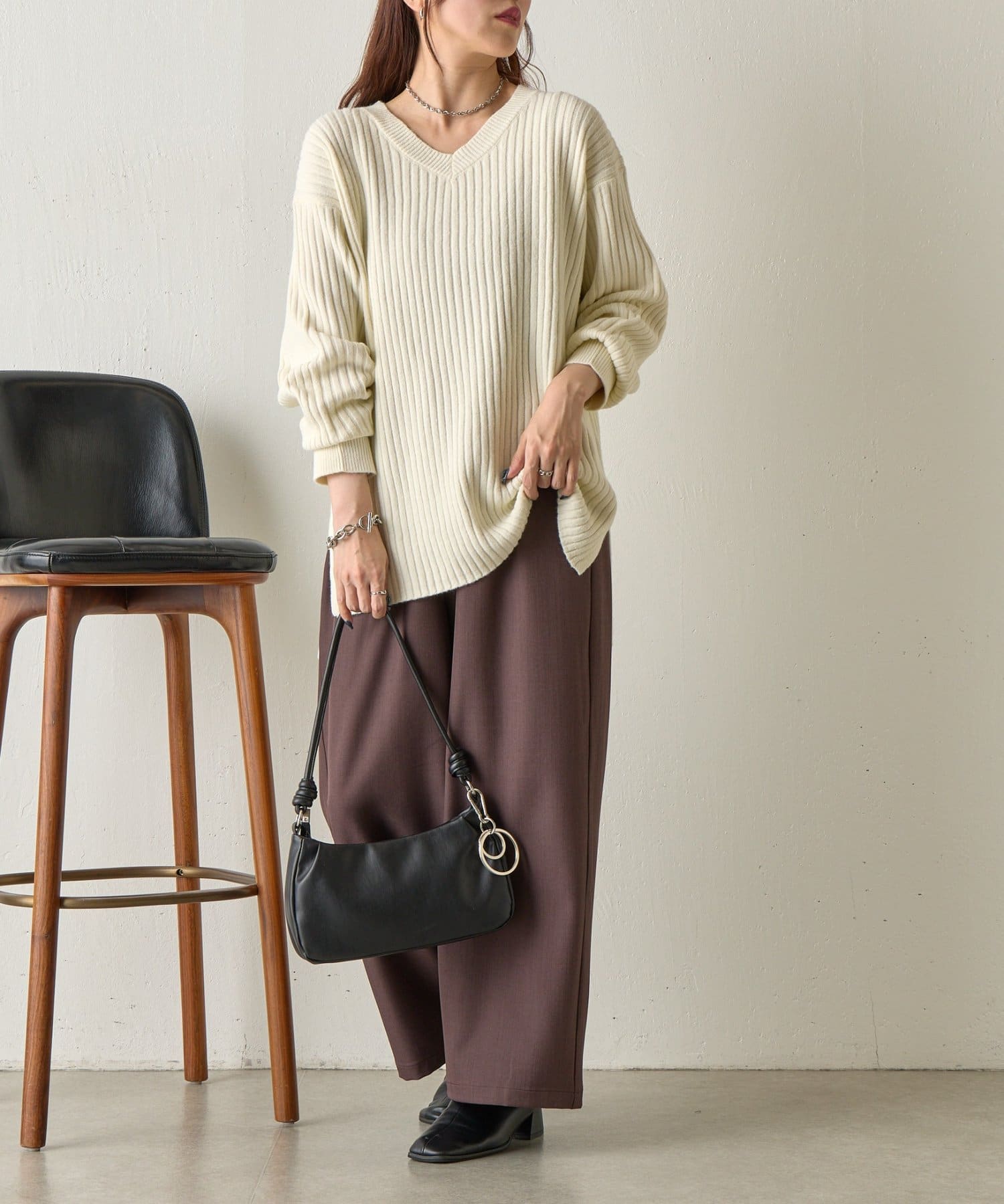 やわらかなリブ編み素材で仕上げたリラックスリブVネックニットです。