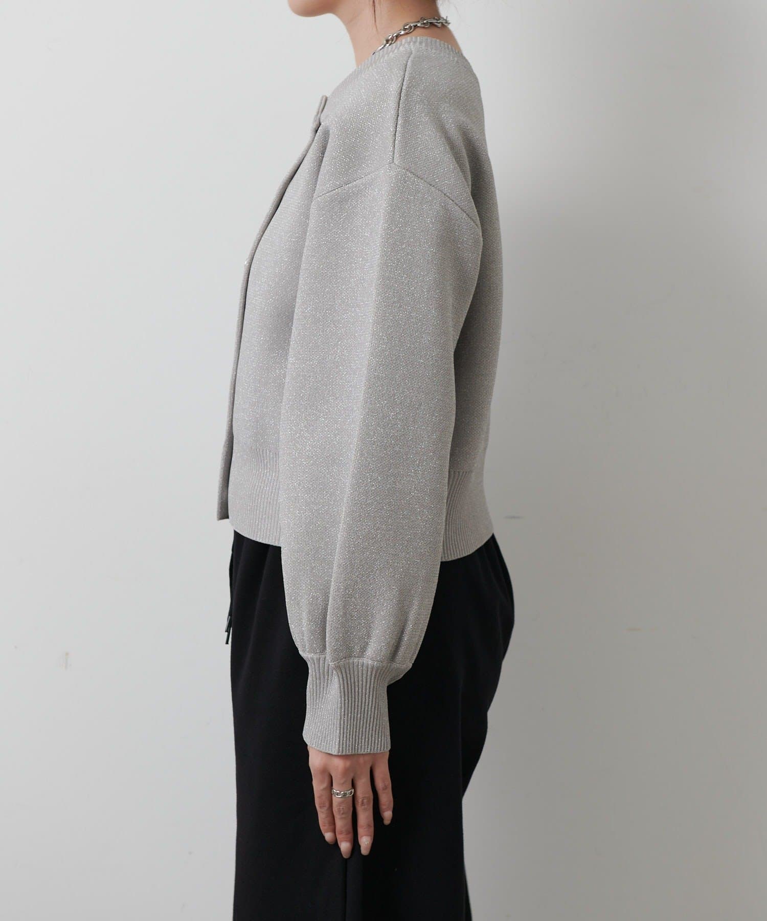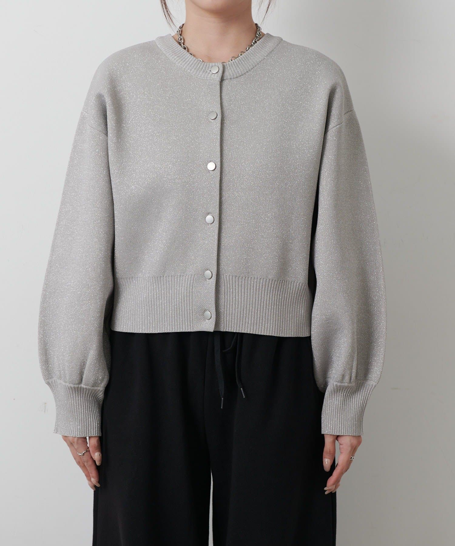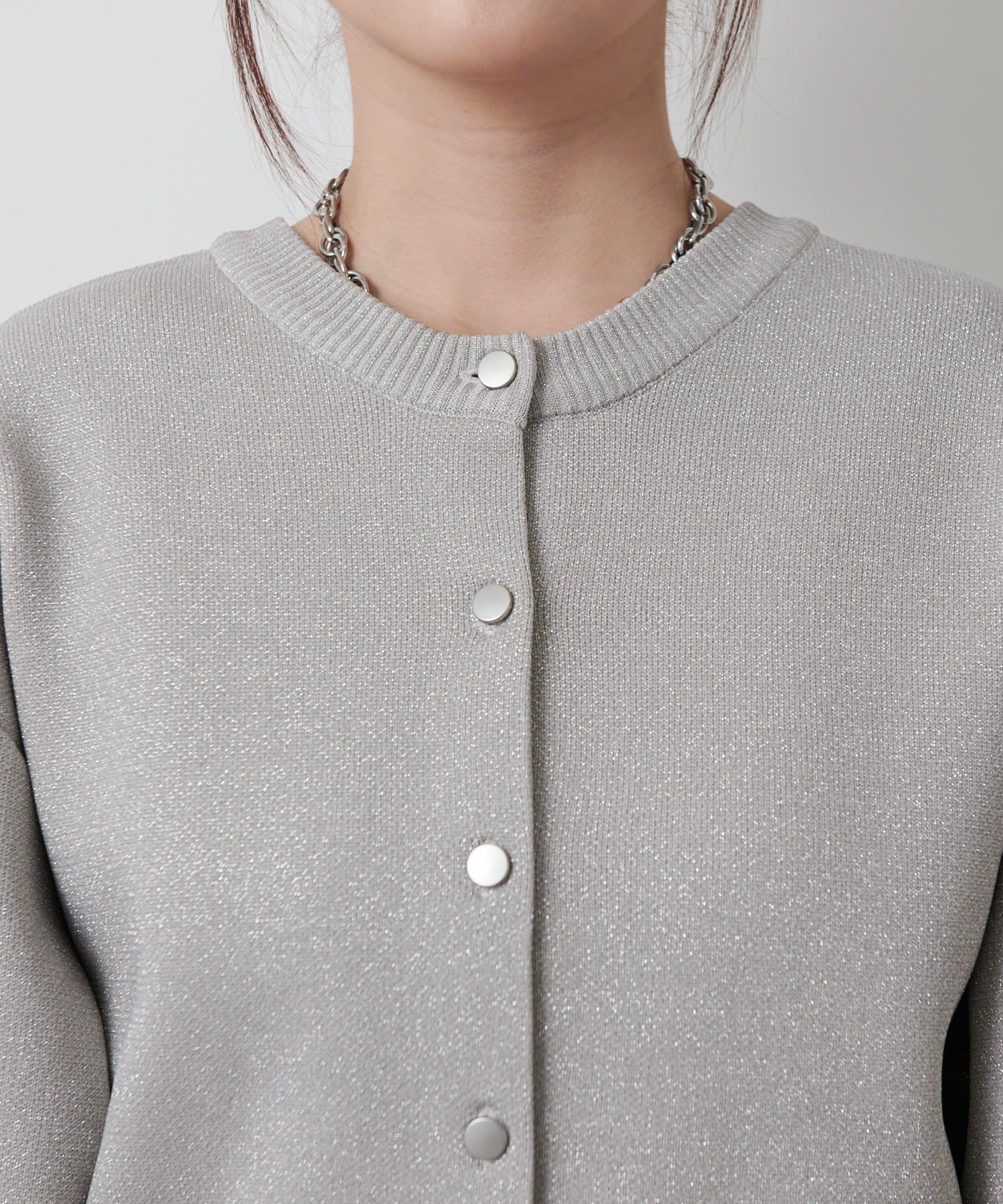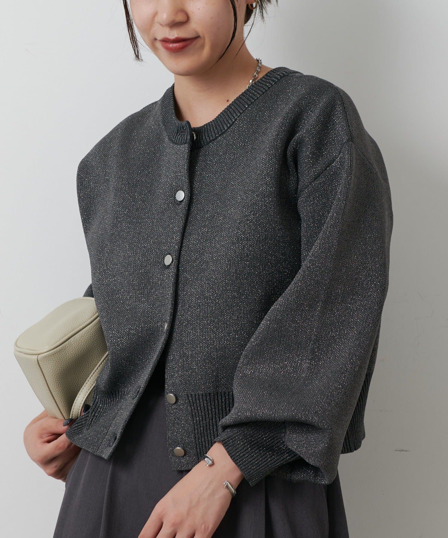【ラメ入りのスポンディッシュ素材が美しいクルーネックカーディガン】