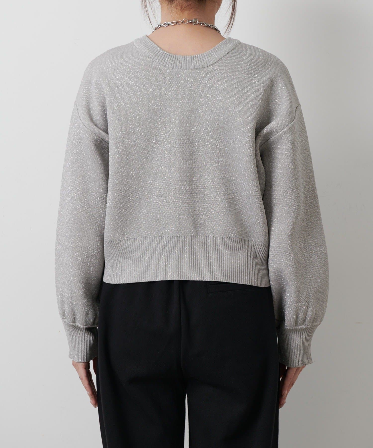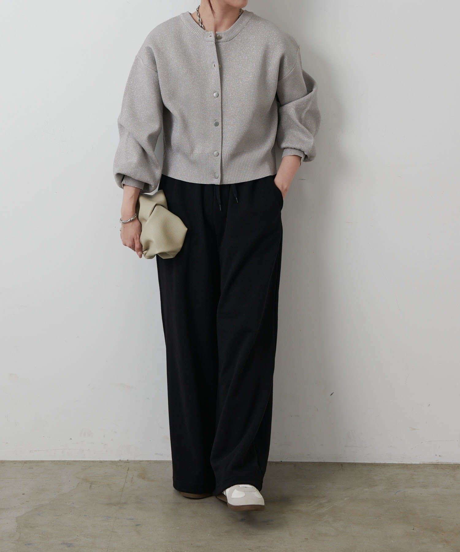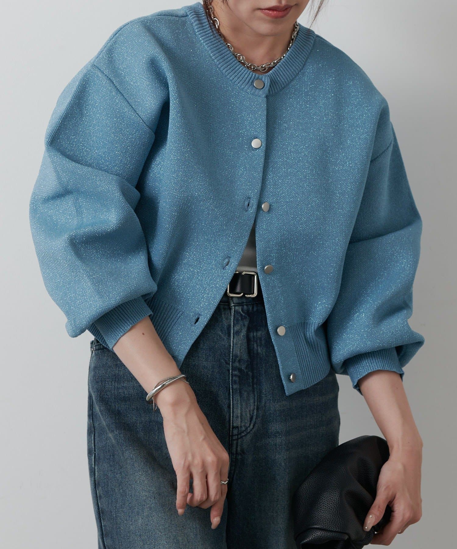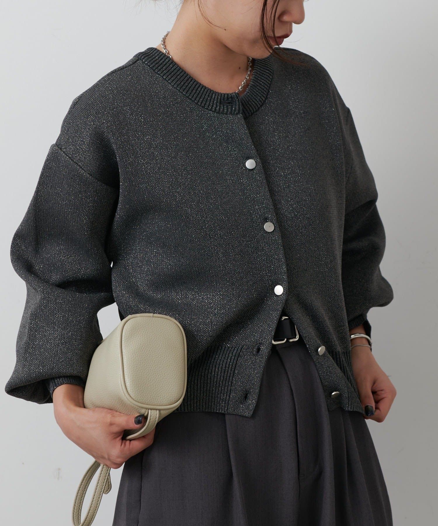 【ラメ入りのスポンディッシュ素材が美しいクルーネックカーディガン】